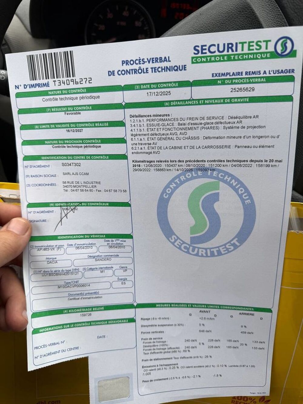 📄 CT passé il y a une semaine, sans remarques majeures