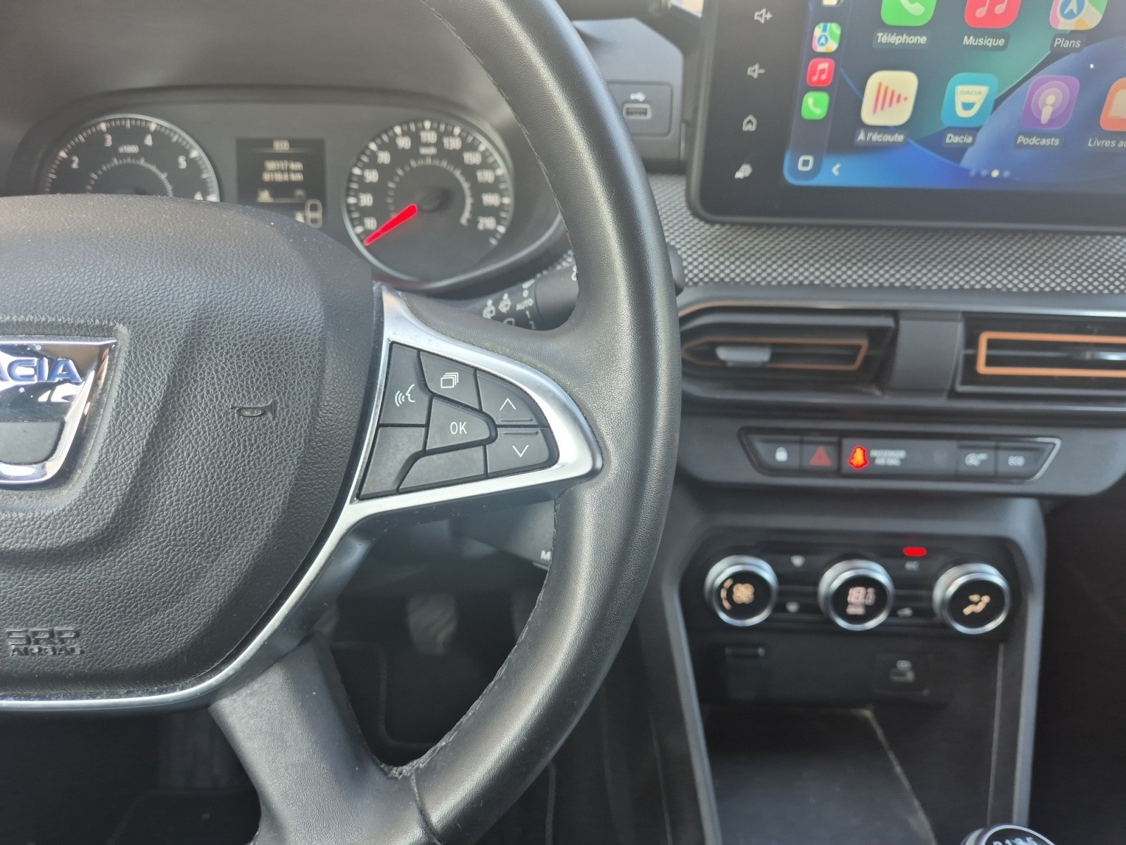 DACIA SANDERO TCe 90 Stepway Confort// 2 roues motrices 4 airbags 4 vitres electriques ABS Accoudoir avant Airbag conducteur Airbag latéral conducteur et passager Airbag passager Allumage automatique des phares Android Carplay Apple CarPlay Appuie-tête arrière Assistance au freinage d'urgence Assistant dynamique au maintien de voie Boîte manuelle 6 vitesses Capteur de pluie Climatisation automatique Contrôle pression pneus (RDC) Direction assistée Détecteur de luminosité Détecteur pluie Feux avant LED Feux de jour Fixation pour siège enfant Kit de réparation pneus (Mobile Tyre) Lève-vitres arrière électriques Lève-vitres avant électriques Ordinateur de bord Phares antibrouillard Radar de stationnement arrière Rampes/barres de toit Roue de secours Rétroviseur intérieur électrochrome Rétroviseurs extérieurs dégivrants Rétroviseurs extérieurs électriques Rétroviseurs rabattables Siège conducteur réglable en hauteur Système anti bloquage (ABS) Système de freinage d'urgence urbain Verrouillage centralisé Verrouillage centralisé télécommandé Vitres teintées Volant en cuir Volant réglable manuellement
