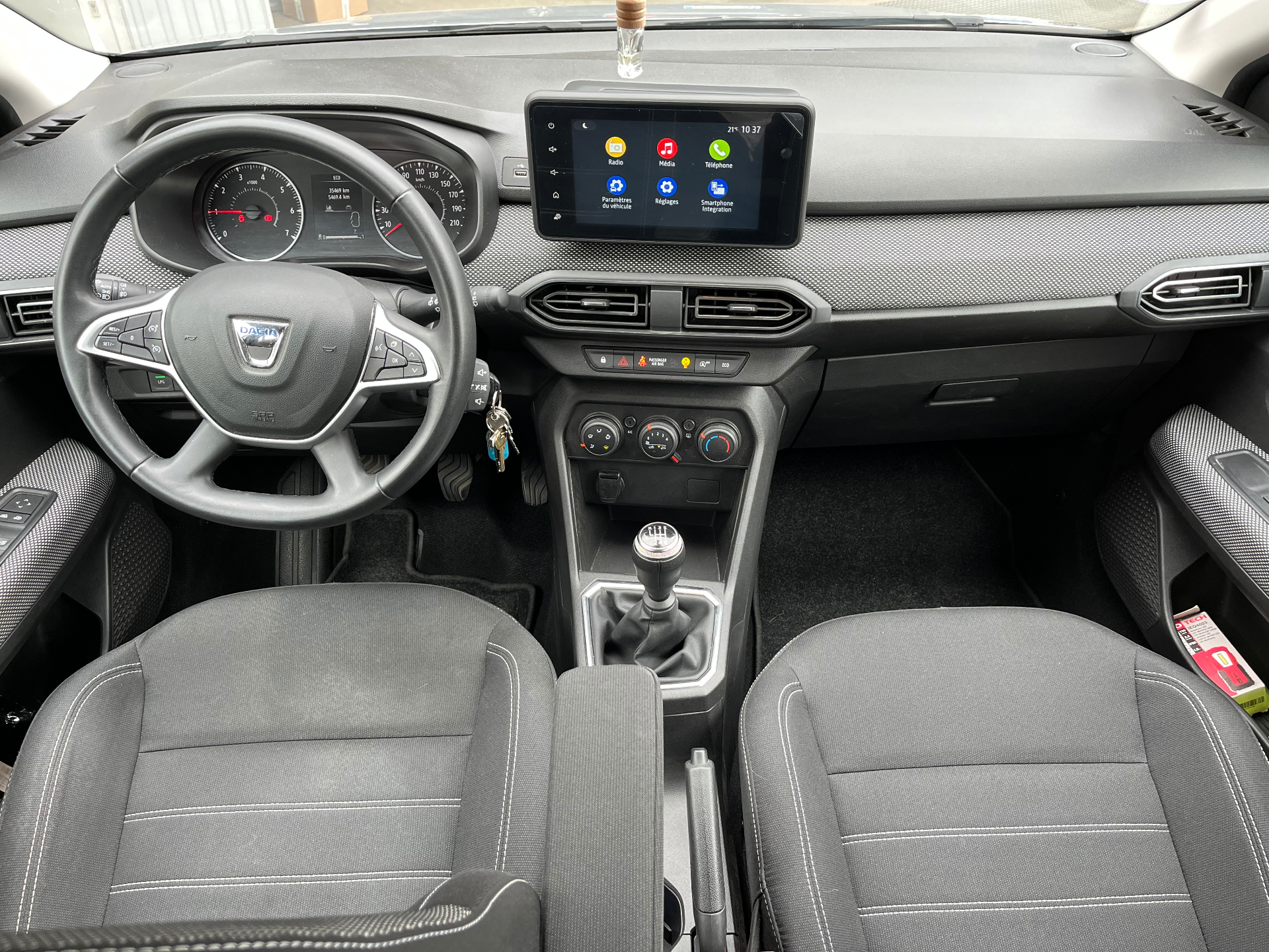 Equipements supplémentaires : 3 appuis-tetes AR, Aide au parking AR, Airbag frontal conducteur et passager, Airbag lateral AV : thorax + rideau, Allumage des feux et essuie-glace automatiques, Alternateur renforce, Assistance au freinage d'urgence + allumage des warnings, Banquette AR rabattable 1/3-2/3, Bouton appel d'urgence, Classes energetiques B, Cle 3 boutons, Climatisation manuelle, Cluster TFT, Condamnation centralisee des portes a distance, Condamnation des ouvrants en roulant, Console basse + rangement ouvert, Detection de pression des pneus, Enjoliveur 15'' Sorane, Feux AR avec signature lumineuse Y, Feux de jour a LED, Fonction eco-mode, Harmonie interieure, Kit de gonflage, Leve-vitres AR electriques, Leve-vitres AV electriques, conducteur impulsionnel, Media display (ecran 8'', replication smartphone, 4 haut-parleurs, 1 port USB), Peinture opaque, Projecteurs antibrouillard, Rappel de bouclage de ceintures, Regulateur et limiteur de vitesse, Retroviseur interieur jour/nuit, Retroviseurs exterieurs electriques et degivrants, Retroviseurs exterieurs ton carrosserie, Sellerie Confort avec surpiqures, Siege conducteur reglable en hauteur + accoudoir AV, Signature lumineuse DACIA en Y a LED, Systeme anti-blocage des roues (ABS), Systeme de fixation Isofix, Systeme de freinage d'urgence autonome a des vitesses interurbaines 7-170km/h, Vitres teintees, Volant reglable en hauteur et en profondeur, Volant Soft Feel TEP, Peinture Gris Highland, ***NOS VEHICULES SONT VISIBLES UNIQUEMENT SUR RDV***
