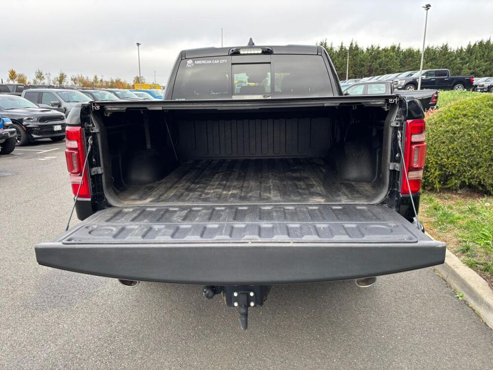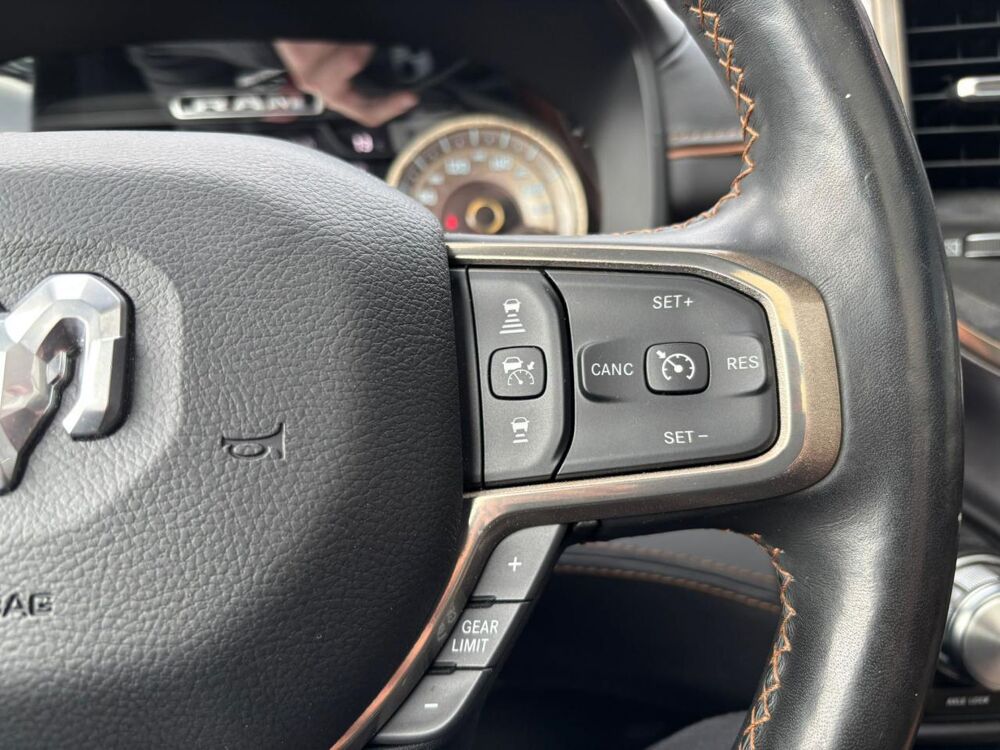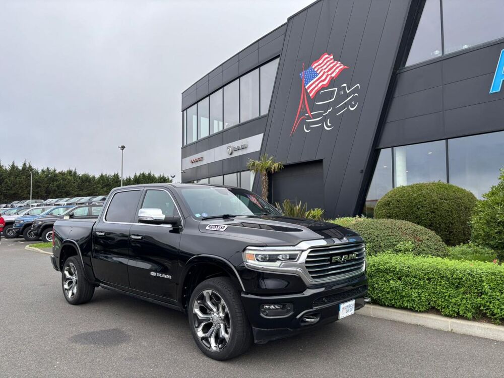 Extérieur & Esthétique : ALN: Boucliers peints ton carrosserie / MBP: Pare-chocs avant ton carrosserie / MBQ: Pare-chocs arrière ton carrosserie avec marchepied / MNE: Poignées de porte chromées ton carrosserie / MZZ: Logo RAM chromé sur la calandre / MWD: Hayon à fermeture amortie / MWH: Protège-passage de roues arrière / MWU: Monogramme R_A_M sur le hayon / MF3: Calandre chromée / M1B: Logo Longhorn / PXJ: Peinture extérieure Diamond Black Crystal / TY4: Pneus 285/45R22XL toutes saisons / WLZ: Jantes en aluminium / WPZ: Jantes 22' aluminium poli/peint avec inserts /