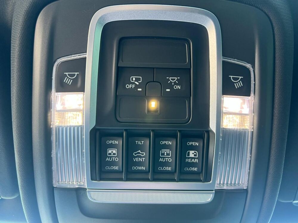 TL: Sellerie cuir haut de gamme avec sièges baquets / CMF: Sièges avant chauffants / JTE: Sièges conducteur et passager réglables électriquement 8 positions / JPH: Support lombaire électrique conducteur / JRP: Support lombaire électrique passager / CUP: Console centrale pleine longueur / CUS: Console de pavillon haut de gamme / CL2: Crochets Mopar réglables dans la benne / GNZ: Pare-soleil avec miroir de courtoisie éclairé / NHJ: Volant chauffant / SCB: Volant sport perforé avec surpiqûres / XAP: Pédales réglables électriquement / JJN: Prise 115V à l'arrière / JKV: Prise 115V à l'avant /