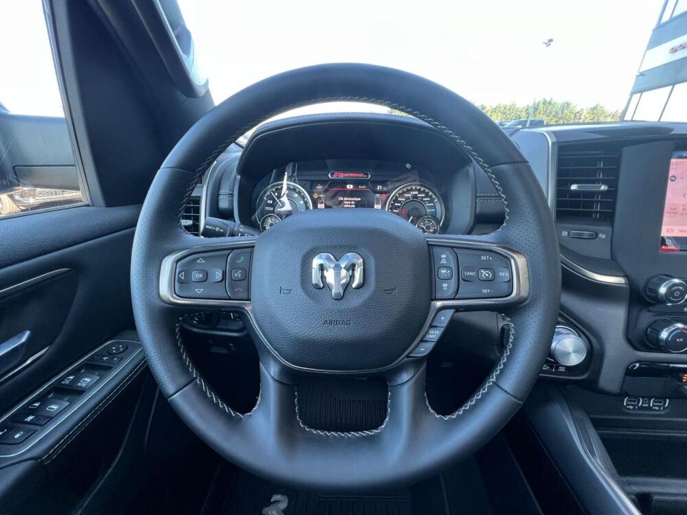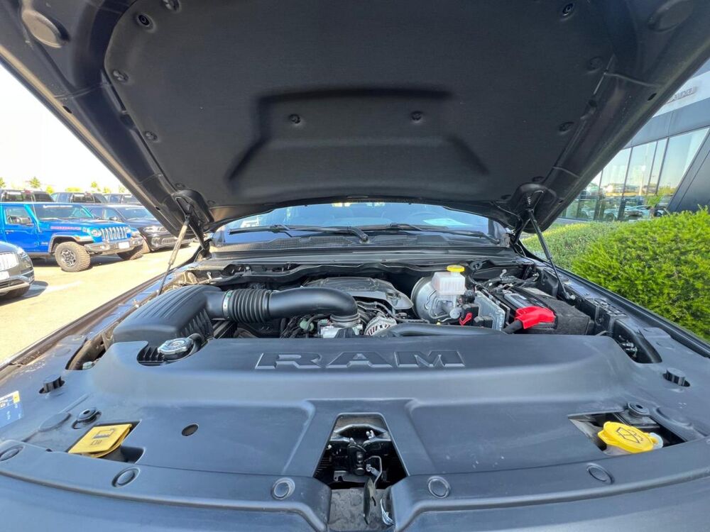 ASH: Pack Night Edition / ANT: Pack utilitaire benne / MRU: Marchepieds tubulaires noirs Mopar / GWJ: Toit panoramique ouvrant à double panneau / ME6: Calandre RAM noire / MFH: Capot sport performance / MWH: Protèges passages de roues arrière / PAU: Couleur extérieure Granite Crystal métallisé / WBS: Jantes 18 pouces noires brillantes / MMD: élargisseurs d'ailes couleur carrosserie / MB5: Pare-chocs arrière noir / MC6: Pare-chocs avant noir /