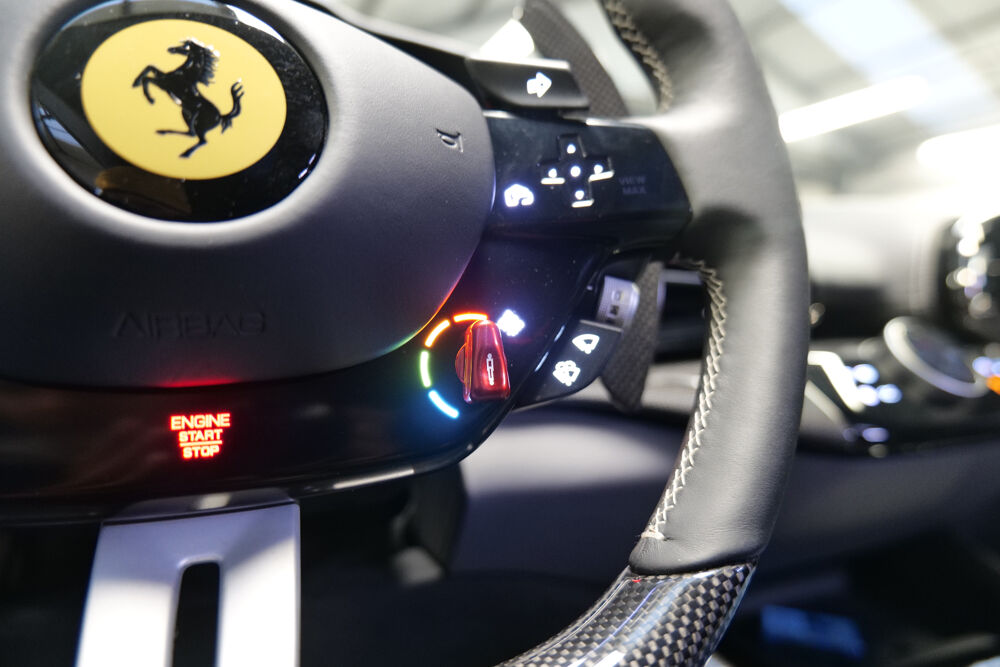Chargeur de smartphone sans fil, Cle de voiture en fibre de carbone, Colonnes roues en titane, Couleur sur demande pour coutures speciales, Couleur sur demande pour coutures standard, Couleur sur demande pour partie superieure du tableau de bord, Couleur sur demande pour volant, Couleurs classiques, Couleurs exterieures additionnelles, Couleurs exterieures historiques Ferrari, Couleurs exterieures speciales, Couverture de voiture, Design EQP, Details habitacle couleur au choix, Echappement de couleur Noire, Echappement Sport, Ecussons Scuderia sur ailes AV, Etriers de freins de couleur Aluminium, Etriers de freins de couleur Bleu, Etriers de freins de couleur Giallo, Etriers de freins de couleur Grigio Silverstone, Etriers de freins de couleur Or, Etriers de freins de couleur Rosso Corsa, Etriers de freins de couleur Rosso Scuderia, Etriers de freins peints Nero, Extincteur habitacle, Extracteur AR en carbone, Film anti projections, Film anti projections sur pare-chocs A...