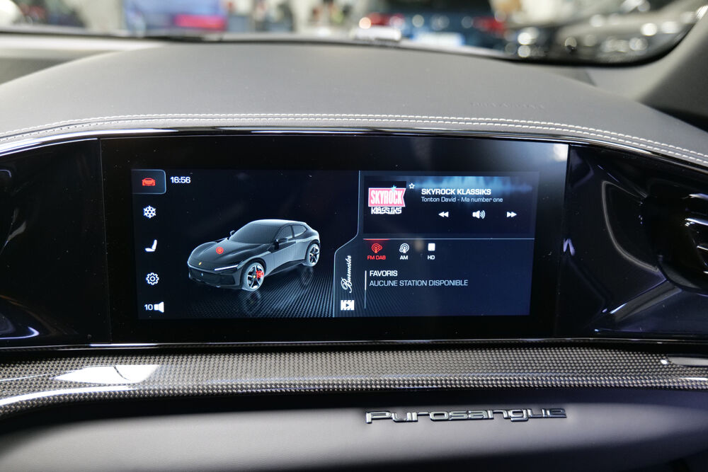 - REPRISE POSSIBLE TOUS VÉHICULES Y COMPRIS PLUS DE 10 ANS ET FORT KILOMÉTRAGE Equipements supplémentaires : 4 portes a fermeture souple, 4 sieges entierement electriques, 4RM - S Evo, ABS EVO, Aide au maintien de la voie, Airbags AV et lateraux a double enclenchement, Avertissement de sortie de voie, Camera de parking AR, Capteurs de luminosite et de pluie, Capteurs de parking AV/AR, Cle avec transpondeur, systeme antivol, telecommande pour portes et coffre, systeme de demarrage, Controle de traction F1 avec integration SSC (Side Slip Control), Controles dynamiques vehicule (Manettino avec 5 reglages : Glace, Mouille, Confort, Sport, ESC OFF), Detection des angles morts, Differentiel a controle electronique avec integration SSC (Side Slip Control), Direction assistee electrique dynamique, Dreamline special, Empettement virtuel (PCV 3.0) avec roues AR directionnelles, Fermeture automatique portes AR, Fibre de carbone externe speciale, Fibre de carbone interne speciale, Frein d'urgence automatique, Garnitures peintes en aluminium, Housse de protection, ISOFIX pour les sieges AR, Kit de reparation pneumatiques, Kit maintien de charge, Livree speciale, Miroirs exterieurs chauffants et repliables electriquement, Pack Personnalisation, Phares entierement LED, PTU (Power Transfer Unit), Regulateur de vitesses adaptatif, Systeme air conditionne 4 zones, Systeme de controle de pression et temperature des pneumatiques, Systeme de freinage carbo-ceramique (CCM4), Systeme Infotelematic avec nouveau HMI, port USB dans le tunnel central, Bluetooth audio streaming, Systeme Side Slip Control (SSC) 8.0, Systeme suspensions actives Ferrari, Toit en fibre de Carbone, Transmission Dual Clutch 8 vitesses, Verrouillage centralise, Vitres electriques, 1 Porte-habit, 1 Sac a main, 1 Sac de voyage, 1 Sac de voyage + 1 Sac week-end, 1 Sac week-end, 1 Trolley, 1 Trolley + 1 Sac de voyage, 1 Trolley + 1 Sac week-end, 1 Valise, 2 Porte-habit, 2 Sacs de voyage, 2 Sacs week-end, 2 Trolley, 4 Trolley, Bas de seuils de portes exterieurs en fibre de carbone, Cache moyeu en fibre de carbone, Cache moyeu en noir, Capteurs Qualite de l'Air, Cavallino brode sur appuis-tete, Ceintures de securite 3 points couleur au choix,