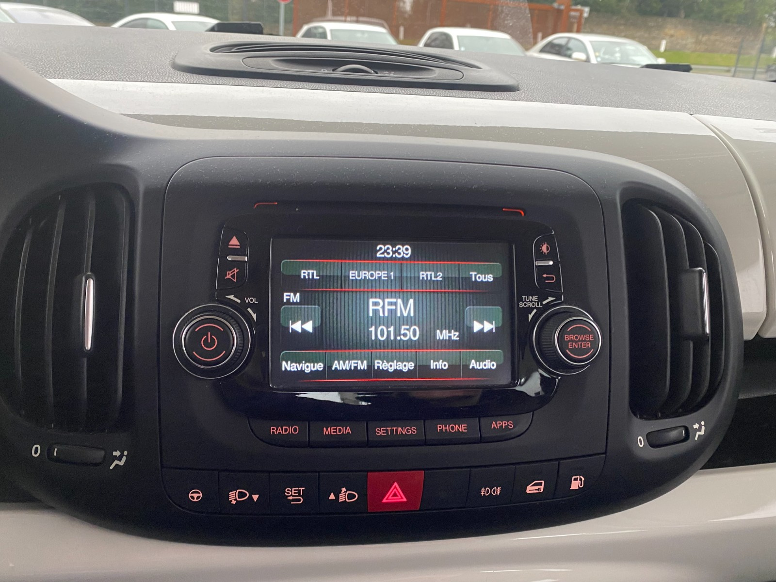 FIAT 500L 0 9 8V 85/80 ch TwinAir GNV Lounge// Appuie-tête arrière Appuie-tête arrière Système anti bloquage (ABS) Accoudoir arrière Accoudoir arrière Assistance de freinage Airbag conducteur Airbag latéral conducteur et passager Rétroviseur intérieur électrochrome Banquette/sièges arrière rabattable Boîte manuelle 6 vitesses Détecteur pluie Détecteur pluie Climatisation automatique Volant avec commande radio Volant avec commande radio Verrouillage centralisé télécommandé Direction assistée ESP (programme de stabilité électronique) ESP (programme de stabilité électronique) Fixation pour siège enfant Sièges en cuir partiel Jantes/roues en alliage léger 16 Jantes/roues en alliage léger 16 Non fumeur Accoudoir avant Cache bagages Phares antibrouillard Radar de stationnement arrière Rétroviseurs extérieurs électriques Siège conducteur réglable en hauteur Siège conducteur réglable éléctriquement Installation téléphone mains libres Installation téléphone mains libres Lève-vitres avant électriques Verrouillage centralisé Volant en cuir Volant en cuir Volant réglable manuellement