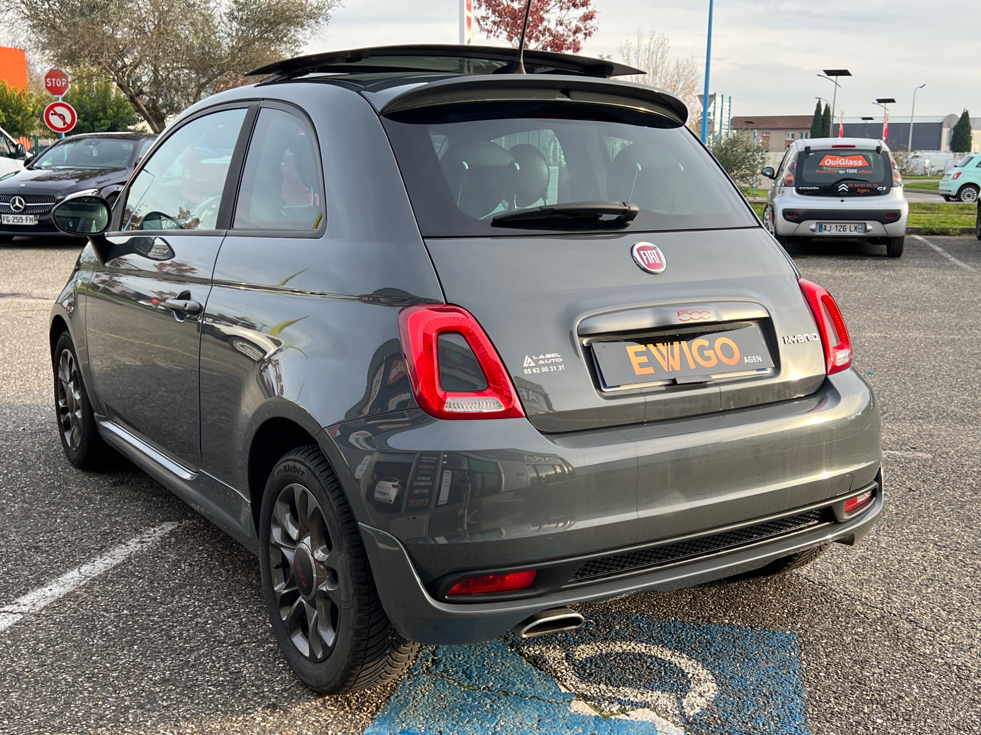 FIAT 500 Gris Métallisé 2020 - 1.0 70 CH MHEV HYBRID SPORT + TOIT OUVRANT