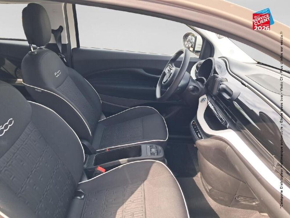 CFG,4 Haut parleurs,ABS,AFIL,Airbag conducteur,Airbag passager,Airbags rideaux,Antidémarrage électronique,Antipatinage,Appel d'Assistance Localisé,Appel d'Urgence Localisé,Appui-tête conducteur réglable hauteur,Assistance de maintien de trajectoire,Bacs de portes avant,Banquette 2 places,Banquette AR rabattable,Becquet arrière,Boite à gants fermée,Boucliers AV et AR couleur caisse,Capteur de luminosité,Clim manuelle,Commande Mode ECO,Démarrage sans clé,EBD,Ecran multifonction couleur,ESP,Essuie-glace arrière,Feux arrière à LED,Feux de jour à LED,Fonction appel d'urgence,Freinage automatique d'urgence,Frein stationnement électrique,Ice White pastel,Kit mains-libres Bluetooth,Lampe de coffre,Limiteur de vitesse,Phares halogènes,Poignées ton carrosserie,Prise USB,Reconnaissance panneaux de signalisation,Rétroviseurs électriques,Système de détection de somnolence,Témoin de perte de pression pneumatique,Tissu Seaqual noir mongramme Fiat,Verrouillage centralisé à distance,Vitres avant électriques,Volant multifonction,Volant réglable en profondeur et hauteur