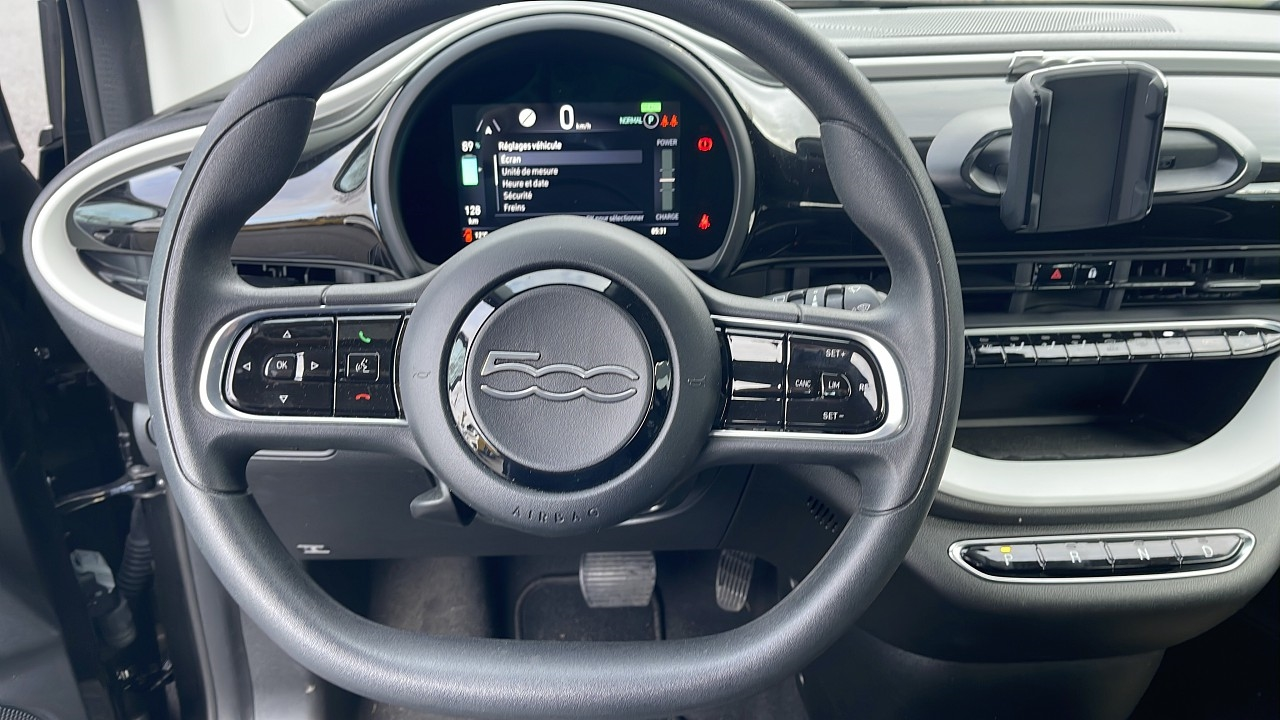 Câble de recharde Mode 2,Onyx Black pastel,ABS,Banquette AR rabattable,Capteur de luminosité,Clim manuelle,Démarrage sans clé,ESP,Feux arrière à LED,Feux de jour à LED,Frein stationnement électrique,Prise USB,Reconnaissance panneaux de signalisation,Tissu Seaqual noir monogramme Fiat,Verrouillage centralisé à distance,Vitres avant électriques,Volant multifonction,Rétroviseurs électriques