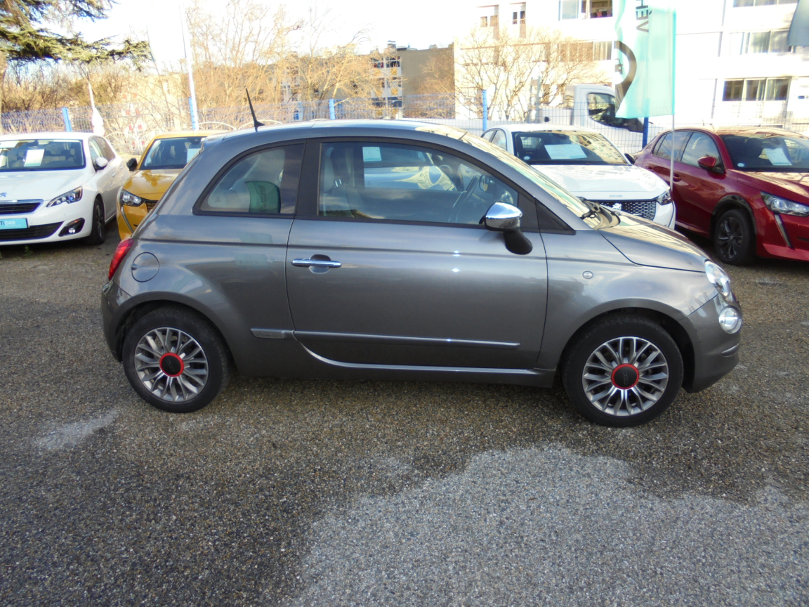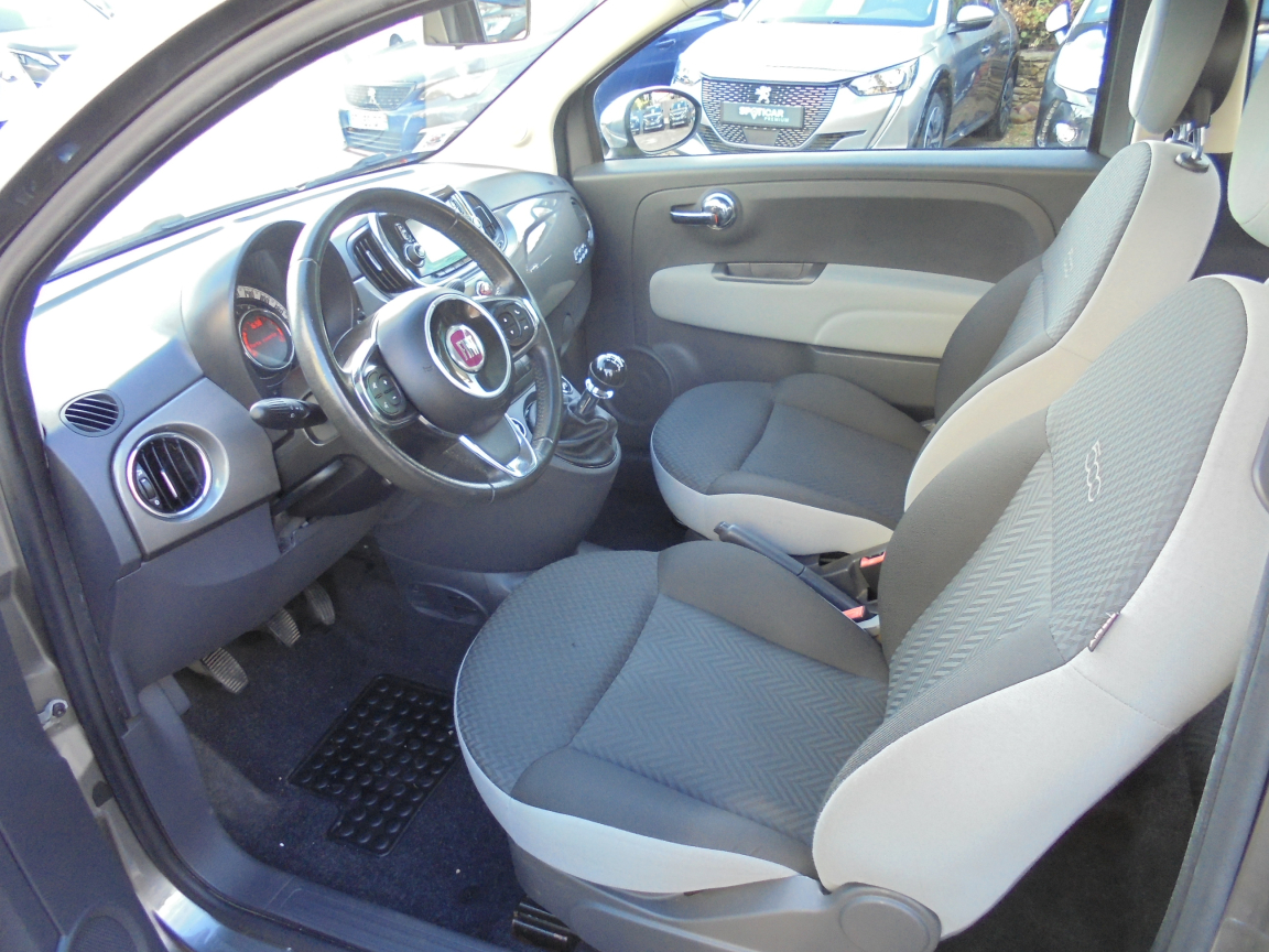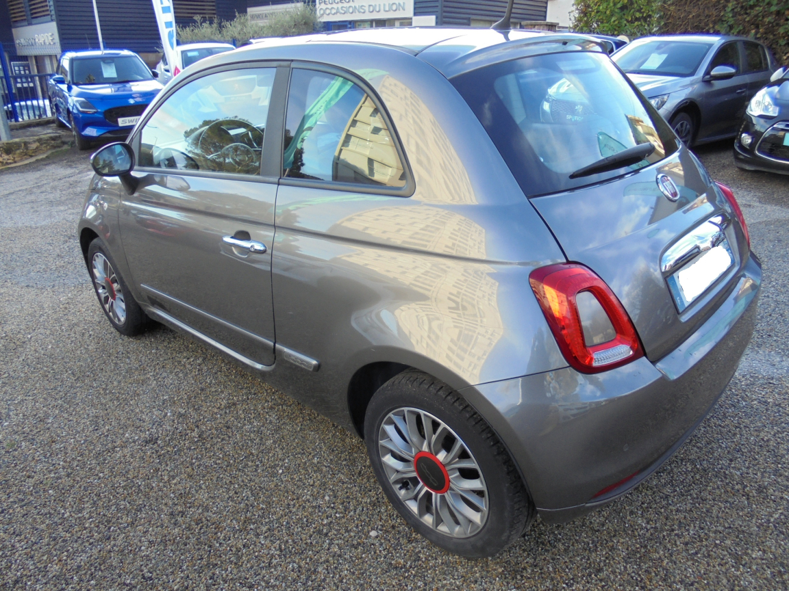 FIAT 500 (1.2 8V 69 ch Lounge) GRIS.7 airbags au total : en plus des airbags latéraux ,ABS et EBD,Aide au freinage d'urgence BAS,Air conditionné avec filtre anti-pollen,Airbag Fiat de genoux,Airbag Fiat latéraux,Airbags Fiat conducteur et passager,Airbags Fiat de toit,Appuis-tête AV réglables en hauteur,Attaches ISOFIX,Autoradio CD MP3,Banquette AR rabattable 50/50 et appuie-tête AR,Bouchon de résevoir avec clé,Boucliers couleur carrosserie,Commande de l'autoradio au volant et volant gainé en cuir,Commande radio au volant et volant gainé en cuir,Condamnation centralisée avec commande à distance,Condamnation des ouvrant en roulant,Contrôle électronique de stabillité ESP avec système ,Direction assistée ,Eclairage du coffre,Fixations ISOFIX pour les sièges enfants,Jantes alliage de 15,Jantes alliage de 15,Kit Chrome,Kit Chrome (baquette de vitres latérales chromés,Kit fumeur,Logo ,Pare-chocs couleur carrosserie,Pare-soleil côté passager avec miroir et éclairage,Pare-soleil doté d'un miroir éclairé,Peinture pastel extra série,Poignée de maintien intérieure,Poignées de portes extérieures chromées,Projecteurs antibrouillard,Rangement sous siège AV passager,Rétroviseurs électriques teinte carrosserie et indicateur de temperature extérieure,Roue de secours galette,Siège conducteur réglable en hauteur,Siège conducteur réglable en hauteur et appuie-tête réglable en hauteur,Système Blue&Me avec fonction eco:Drive - Bluetooth pour téléphone main libre et connextion USB pour MP3,Toit panoramique fixe avec pare-soleil,Vitres AV centralisées,Vitres AV électriques,Volant cuir multifonction,Volant réglable en hauteur, 5 vitesses, 4 places, puissance fiscal : 4, puissance din : 69, émission de CO2 : 117 g/km.