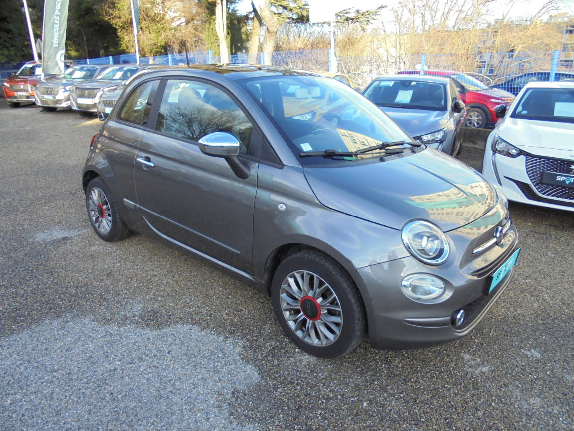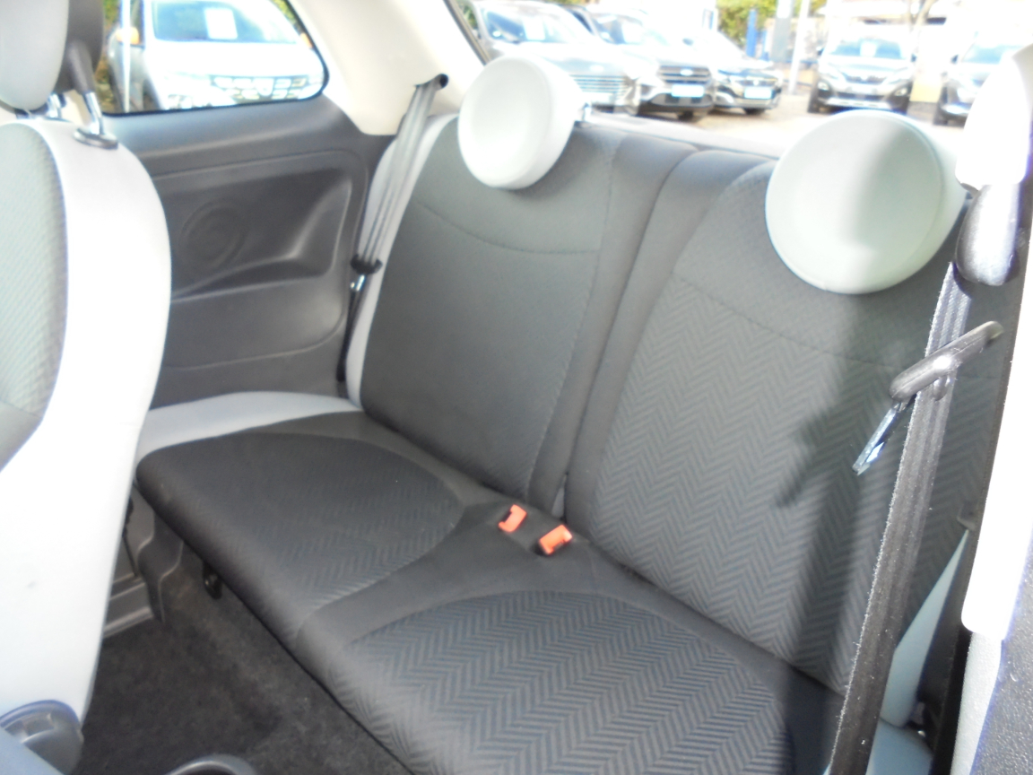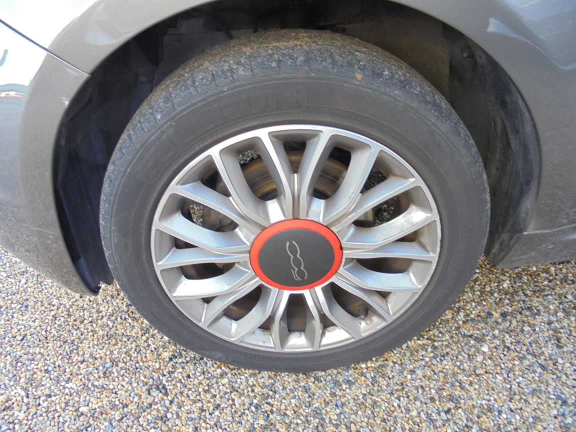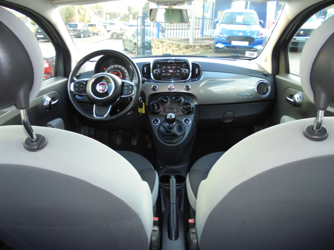 FIAT 500 (1.2 8V 69 ch Lounge) GRIS.7 airbags au total : en plus des airbags latéraux ,ABS et EBD,Aide au freinage d'urgence BAS,Air conditionné avec filtre anti-pollen,Airbag Fiat de genoux,Airbag Fiat latéraux,Airbags Fiat conducteur et passager,Airbags Fiat de toit,Appuis-tête AV réglables en hauteur,Attaches ISOFIX,Autoradio CD MP3,Banquette AR rabattable 50/50 et appuie-tête AR,Bouchon de résevoir avec clé,Boucliers couleur carrosserie,Commande de l'autoradio au volant et volant gainé en cuir,Commande radio au volant et volant gainé en cuir,Condamnation centralisée avec commande à distance,Condamnation des ouvrant en roulant,Contrôle électronique de stabillité ESP avec système ,Direction assistée ,Eclairage du coffre,Fixations ISOFIX pour les sièges enfants,Jantes alliage de 15,Jantes alliage de 15,Kit Chrome,Kit Chrome (baquette de vitres latérales chromés,Kit fumeur,Logo ,Pare-chocs couleur carrosserie,Pare-soleil côté passager avec miroir et éclairage,Pare-soleil doté d'un miroir éclairé,Peinture pastel extra série,Poignée de maintien intérieure,Poignées de portes extérieures chromées,Projecteurs antibrouillard,Rangement sous siège AV passager,Rétroviseurs électriques teinte carrosserie et indicateur de temperature extérieure,Roue de secours galette,Siège conducteur réglable en hauteur,Siège conducteur réglable en hauteur et appuie-tête réglable en hauteur,Système Blue&Me avec fonction eco:Drive - Bluetooth pour téléphone main libre et connextion USB pour MP3,Toit panoramique fixe avec pare-soleil,Vitres AV centralisées,Vitres AV électriques,Volant cuir multifonction,Volant réglable en hauteur, 5 vitesses, 4 places, puissance fiscal : 4, puissance din : 69, émission de CO2 : 117 g/km.