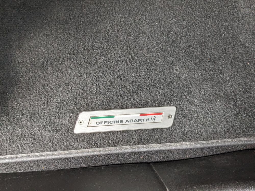 Kit Turismo/Competizione monté en usine - Pommeau de levier de vitesse alu, pédialier métal, seuils de porte avec inscription Abarth, kit de tapis avec insert eco cuir et fixations alu