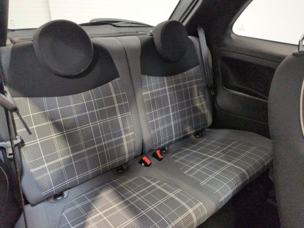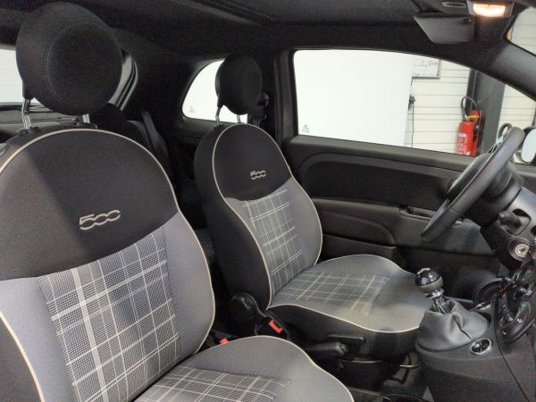 - antiblocage des roues avec répartiteur de freinage EBD, Aide au freinage d'urgence BAS, Air conditionné avec filtre anti-pollen, Attaches Isofix, Baguettes latérales couleur carrosserie (inclus logo 500), Banquette AR fractionnable 50/50, Capteur de pluie et luminosité, Direction assistée électrique DualDrive et fonction city, ESP avec système Hill Holder, Jantes alliage 15 Lounge, Limiteur de vitesse, Projecteurs antibrouillard, Radars de recul, Régulateur de vitesse, Rétroviseurs extérieurs électriques, Roue de secours de dimension réduite, Sellerie Tissu Prince de Galles avec Hauts de dossiers Noir, Siège conducteur réglable en hauteur, Système Link : Intégration Apple CarPlay et compatibilité Android Auto, Toit vitré panoramique fixe, Vitres AV électriques, Volant éco-cuir avec commandes de l'autoradio, Volant réglable en hauteur.