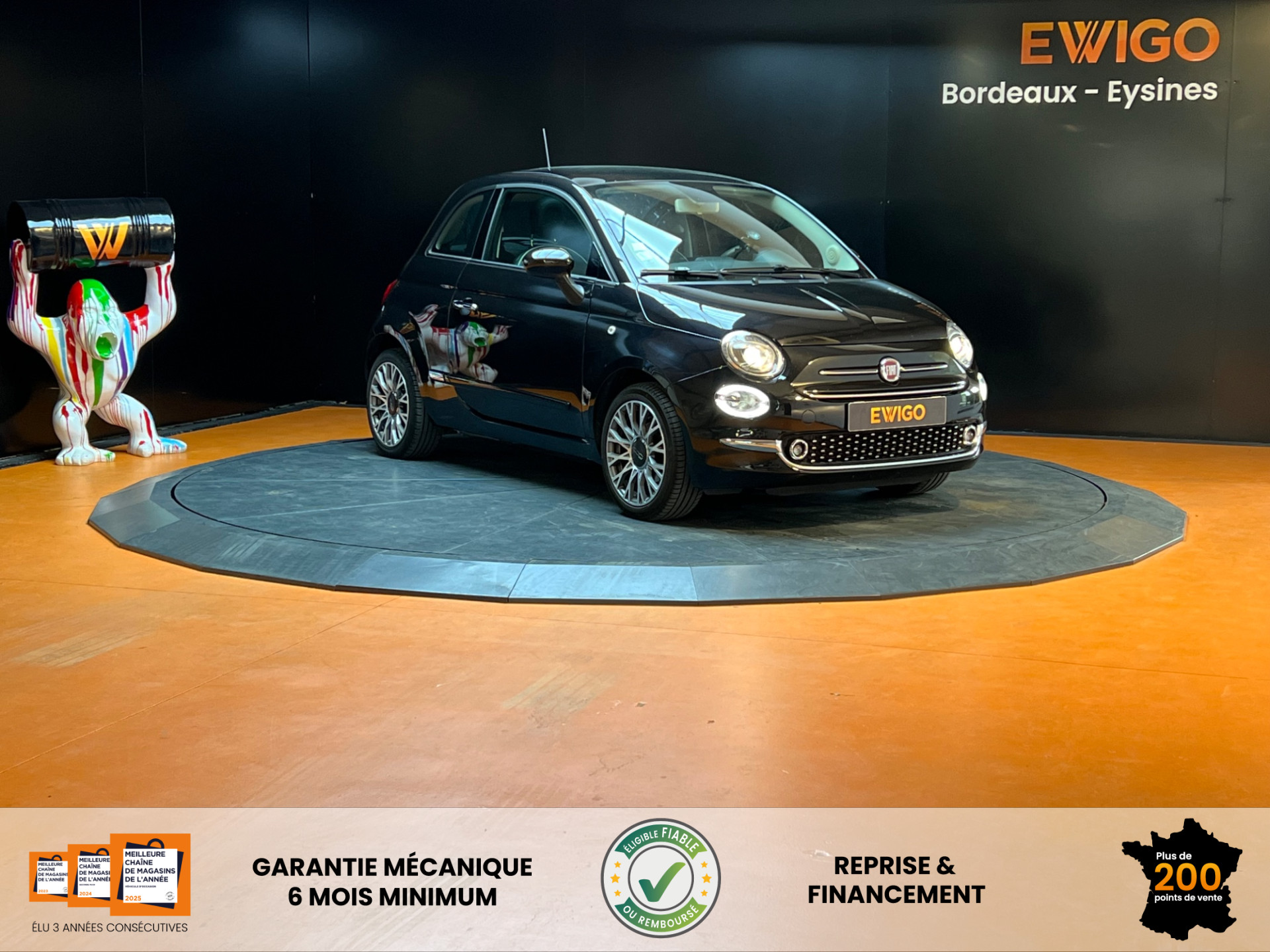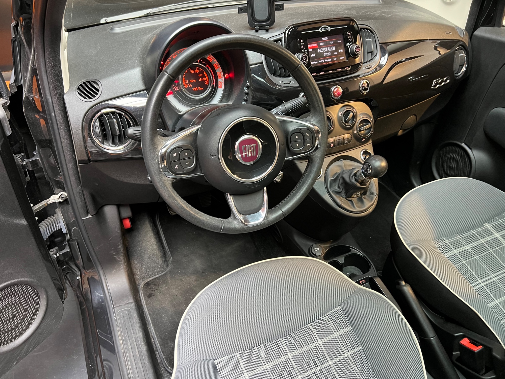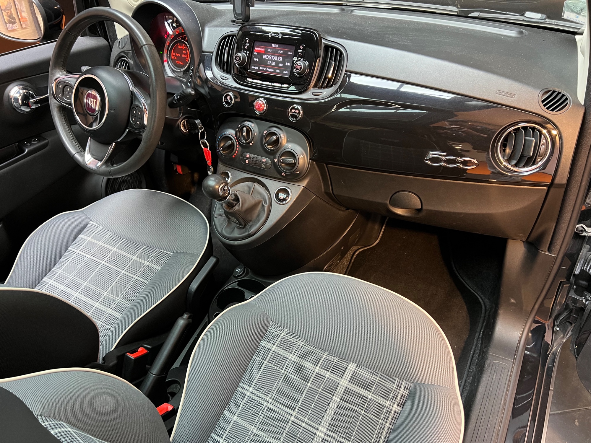 FIAT 500 Noir Métallisé 2019 - 1.2 70 LOUNGE / TOIT PANORAMIQUE / RADAR DE RECUL / REGUMATEUR - LIMITEUR DE VITESSEGarantie : 6 mois (Mutuaide by Groupama)