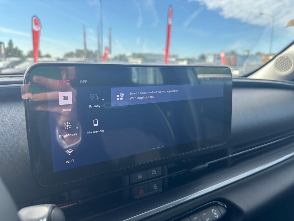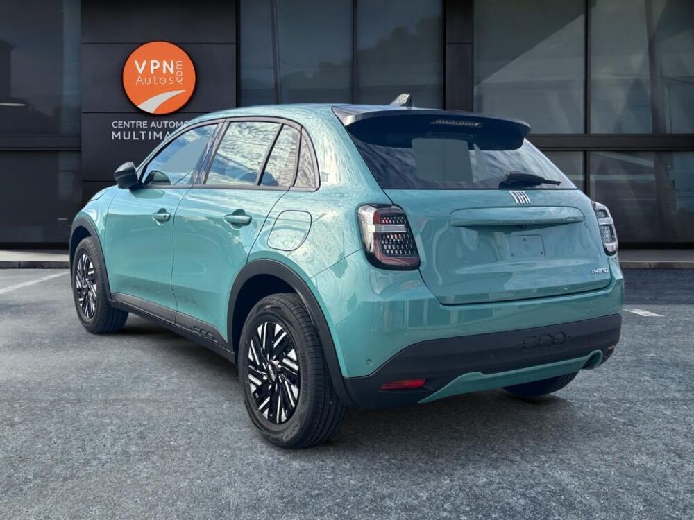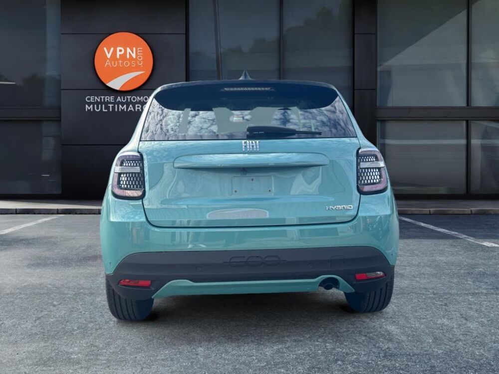 Automatique, Système Uconnect 10,25?, Intégration Apple CarPlay et Android Auto sans fil, Services connectés Uconnect Services, Radars de stationnement arrière, Régulateur et limiteur de vitesse, Alerte de franchissement de ligne, Projecteurs avant full LED "Infinity", Détecteur de pluie et allumage automatique des projecteurs, 2 appuie-tête à larrière, 2 ports USB (type A et type C), Contrôle de la pression des pneus, Contrôle de la traction, Esp, Pare brise chauffant électriquement, 6 Airbags, Antenne de type requin couleur noir brillant, Banquette arrière rabattable 40/60, Bouton dappel durgence, Canule déchappement côté droit simple, Combiné instrumentation numérique 7", Coques de rétroviseurs noires, Feux arrière à LED, Feux de jour à LED, Freinage durgence autonome avec reconnaissance piétons et cyclistes, Jantes acier 16 avec enjoliveurs bicolores, Kit ?Fix&Go?, Logo Hybrid sur hayon de coffre, Palettes de changement de rapports au volant, Pare-soleil avec miroir de courtoisie, Planche de bord noir mat, Prédisposition de crochet dattelage, Prise 12 volts à lavant, Rappel doubli du port de la ceinture (avant et arrière), Rétroviseur intérieur jour/nuit manuel, Rétroviseurs extérieurs à réglage électrique, Sellerie Tissu Seaqual avec Monogramme FIAT, Siège conducteur à réglage manuel dans 6 directions, Siège conducteur réglable en hauteur, Siège passager avant à réglage manuel à 4 directions, Spots de lecture avant et arrière halogènes, Système de fixation ISOFIX aux places latérales arrière et passager