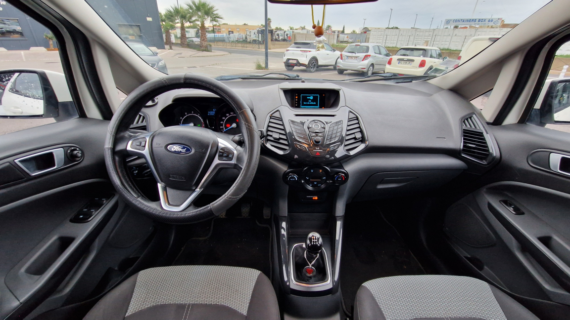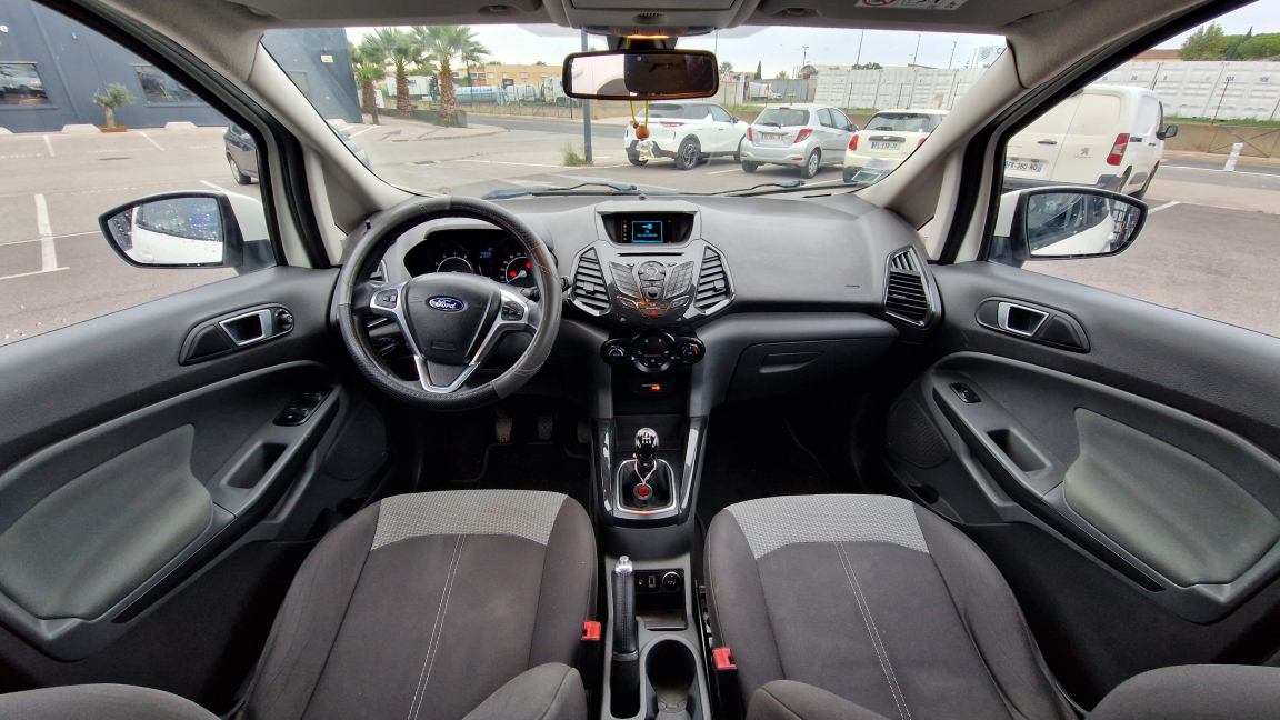 2 Fixations ISOFIX aux places AR, 3 appuis-tête AR, ABS avec aide au freinage d'urgence + ESP + Antipatinage, Accoudoir conducteur, Aide au stationnement AR, Air conditionné automatique, Airbag genoux conducteur, Airbags frontaux conducteur et passager, Airbags latéraux (Thorax), Airbags rideaux, Alarme périmétrique, Alerte de ceinture de sécurité conducteur et passager AV, Alerte de dégonflage des pneumatiques, Allumage automatique des feux, Audio Pack 2: Radio CD/MP3, Audio Pack 3: Radio CD/MP3, Banquette AR rabattable d'une main - 60/40, Banquette AR réglable en inclinaison et rabattable 60/40 d'une main, Barres de toit, Barres de toit finition façon aluminium, Boîte à gants réfrigérée, Cache bagages, Ceintures de sécurité AV réglables en hauteur, Chauffage auxiliaire, Colonne de direction réglable en hauteur et en profondeur, Désactivation de l'airbag passager, Eclairage de courtoisie AV et AR, Eclairage de courtoisie dans le coffre, Eclairage du coffre, Essuie-glace AV automatique à détecteur de pluie, Extinction différée des feux, Feux de jour AV avec signature LED, Feux de jour intégrés au phares antibrouillard, Indicateur de changement de vitesse, Jantes alliage 16, KeyFree (entrée et démarrage mains libres), Kit de réparation pneumatique, Ordinateur de bord, Pare-soleil conducteur et passager AV avec miroirs de courtoisie, Peinture non métallisée Blanc Diamant, Peinture non métallisée Jaune Eclat, Phares antibrouillard AV avec cerclage chromé, Poches aumonières au dos des sièges AV, Poignées de portes extérieures couleur carrosserie, Pommeau de levier de vitesse gainé cuir, Prise 12V, Range-lunettes, Régulateur de vitesse, Rétroviseur intérieur électrochromique, Rétroviseurs extérieurs couleur carrosserie, Rétroviseurs extérieurs réglables électriquement, Roue de secours avec cache roue, Sécurité enfant sur les portes AR, Sellerie Tissu Patna/Vigo teinte Dark Shadow/Noir Charcoal, Siège conducteur avec support lombaire à dossier inclinable et réglage 4 positions, Siège conducteur réglable AV/AR et en hauteur manuellement, Siège passager réglable AV/AR, Signature LED, Tapis de sol AV et AR, Tiroir de rangement sous le siège passager AV, Tiroirs de rangement sous siège passager, Trappe à carburant avec système Ford EasyFuel, Verrouillage centralisé, Vitres AV et AR électriques et vitre conducteur à impulsion, Vitres teintées, Volant multifonctions en cuir, 5 vitesses, 5 places, puissance fiscal : 7, puissance din : 125, émission de CO2 : 125 g/km.