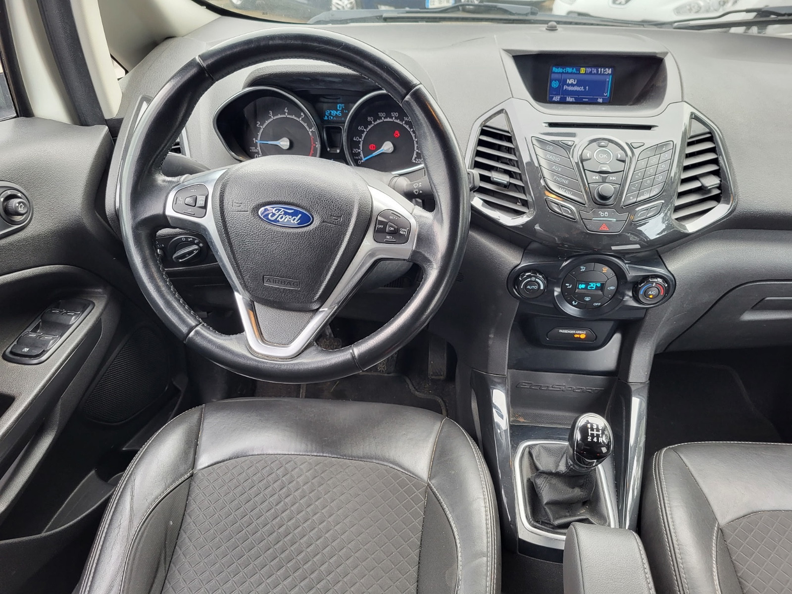 Abs, Accoudoir central, Aide au démarrage en pente, Aide au freinage d'urgence, Airbags frontaux, Airbags latéraux, Airbags rideaux, Alarme, Allumage automatique des feux, Anti-démarrage, Anti-patinage, Auto-radio commandé au volant, Banquette 1/3 - 2/3, Bluetooth, Climatisation automatique, Contrôle pression des pneus, Direction assistée, Détecteur de pluie, ESP, Fermeture centralisée, Fixation ISOFIX, Intérieur cuir, Intérieur tissu, Jantes 17 pouces, Kilométrage garantie, Limiteur de vitesse, Ordinateur de bord, Phares antibrouillard, Radar arrière de détection d'obstacles, Radio CD, Reprise possible, Régulateur de vitesse, Répartiteur électronique de freinage, Rétroviseurs électriques, Sièges réglables en hauteur, Verrouillage automatiques des portes en roulant, Vitre surteintées, Vitres électriques, Volant cuir, Volant multifonctions, Volant réglable, Volant réglable en hauteur, contactez-nous .......................... INFORMATIONS........................ SAINT JEAN AUTOMOBILES vous propose ce FORD ECOSPORT 1.0 ECOBOOST 125CH TITANIUM