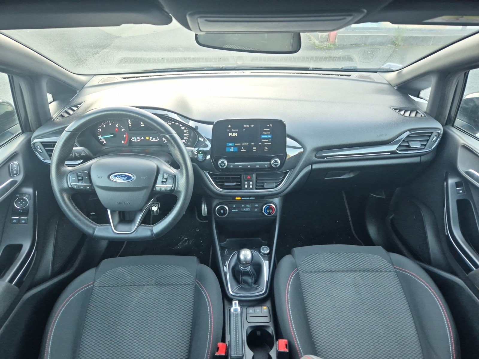 FORD FIESTA 1 0 EcoBoost 100 ch S&S BVM6 ST-Line// Fixation pour siège enfant Appuie-tête arrière Aide au démarrage en pente Assistant dynamique au maintien de voie Climatisation manuelle Airbag conducteur Alerte de franchissement involontaire de lignes Allumage automatique des phares Banquette arrière partagée et rabattable Becquet arrière Direction assistée Phares antibrouillard Système information conducteur Jantes/roues en alliage léger 17 Carte mains-libres Kit de réparation pneus (Mobile Tyre) Levier de vitesses en cuir Verrouillage centralisé Ordinateur de bord Rétroviseurs extérieurs dégivrants Sièges avant Sport Suspension sport Installation téléphone mains libres Contrôle pression pneus (RDC) Verrouillage centralisé télécommandé Lève-vitres avant électriques Volant en cuir Volant en cuir