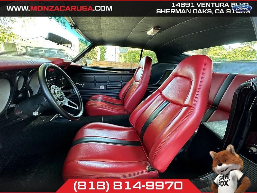 - Marque : Ford- Modèle : Mustang- Année : 1971- Type de carrosserie : Fastback- Couleur extérieure : Noir- Couleur intérieure : Noir- Type de transmission : Automatique- Type d'essence : Gazole- Kilométrage : 46;757 miles (environ 75;300 km)- Équipements notables : - Porte avant personnalisée shavée pour une apparence propre - Moteur 302 reconstruit avec de nombreux composants en billet chrome - Échappement neuf avec un bon son - Transmission reconstruite - Intérieur rouge avec accents noirs - Amortisseurs et ressorts neufs - Alarme - Radiateur et ventilateur de radiateur en chrome grand - Bouton de porte avant sur l'alarme pour ouvrir la porte d'urgence avec un interrupteur d'urgence - Apparence unique - Apprécié par les jeunes et les aînés - Feux de position rouges pour l'esthétique - Pneus et roues personnalisés neufs.