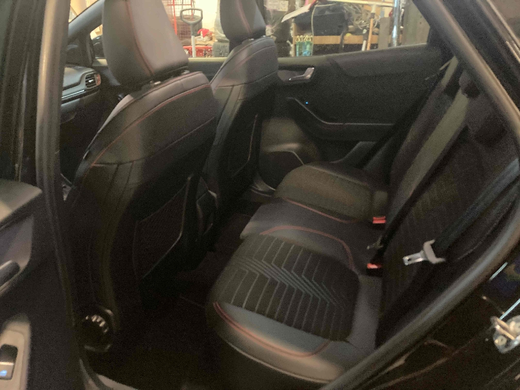 2 Fixations ISOFIX aux places AR, 3 appuis-tête AR, 5 ceintures de sécurité 3 points, 5 Modes de conduite sélectionnables (normal, eco, sport, faible adhérence, trail), Aide au démarrage en côte, Aide au maintien dans la voie avec détection des bas-côtés, Aide au stationnement AR, Air conditionné automatique, Air conditionné manuel, Airbags frontaux, latéraux (thorax) et rideaux, Alerte de ceinture de sécurité AV/AR, Alerte de franchissement involontaire de ligne, Allumage automatique des essuie-glaces, Allumage automatique des feux, Badges extérieurs ST-Line, Banquette AR rabattable 60/40, Becquet AR couleur carrosserie, Becquet couleur carrosserie, Bouton de démarrage "Ford Power", Combiné d'instrumentation numérique 12.3" avec Ecomode, Console centrale avec accoudoir et rangements, Correcteur électronique de trajectoire (ESP), Désactivation de l'airbag passager, Direction assistée électrique, Disques de frein AV, Eclairage d'ambiance intérieur, Environnement noir, Feux antibrouillard AV avec fonction éclairage d'angle, Feux AR à LED, Feux de jour à LED, Feux de route intelligents - Commutation automatique des feux de route aux feux de croisement, FordPass Connect avec modem embarqué et fonction E-Call, Grille de calandre Active, Grille de calandre ST-Line, Jantes alliage 18" 5x2 branches finition Absolute Black (pour pneus 215/50 R18 92H), Jantes alliage 18" 5x2 branches finition Black Matt (pour pneus 215/50 R18 92H), Kit de carrosserie ST-Line, Kit de réparation pneumatique, Levier de frein à main Sensico, Levier de vitesse Sensico, Limiteur de vitesse intelligent (affichage instantané des limitations de vitesse sur le tableau de bord), Pack Confort, Palettes au volant, Peinture non métallisée Bleu Abysse, Phares antibrouillard AV avec fonction éclairage des angles, Recharge de téléphone par induction, Reconnaissance des panneaux de signalisation, Régulateur de vitesse, Rétroviseur intérieur électrochrome, Rétroviseurs extérieurs couleur carrosserie électriques, Sellerie Mixte noire tissu Tire on Casual et Sensico Salerno, Sellerie Mixte tissu noir Eton noir avec renforts latéraux en Sensico Salerno et surpiqures rouges, Siège conducteur a réglage manuelle en hauteur avec soutien lombaire, Siège conducteur réglable en hauteur avec soutien lombaire, Siège passager réglable en hauteur avec soutien lombaire, Sortie d'echappement chromée, Suspension Sport, Système audio B&O avec SYNC3 avec écran tactile 8", Système de navigation Europe et points d'intérêts Michelin, Système de prévention de collision avec freinage post-collision et détection piétons, Système de surveillance de la pression des pneus, Système MyKey (seconde clé programmable), Tapis de sol AV avec surpiqûres, Tapis de sol AV/AR avec surpiqûres, Trappe Easy Fuel, Vitres AR surteintées, Vitres AV/AR électriques à impulsion haut/bas, Volant à méplat 3 branches ST-Line avec surpiqûres, Volant à méplat 3 branches ST-Line avec surpiqûres rouges, 7 vitesses, 5 places, puissance fiscal : 6, puissance din : 125, émission de CO2 : 0 g/km.
