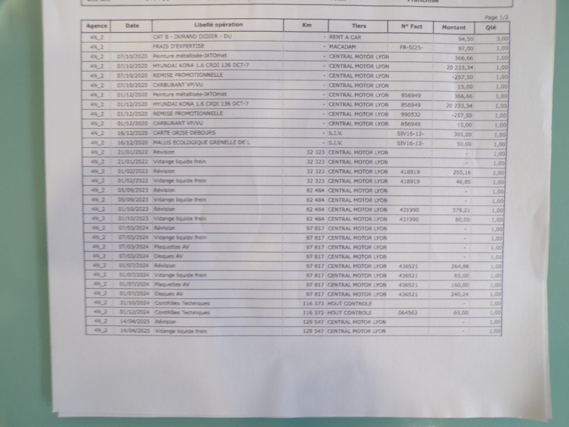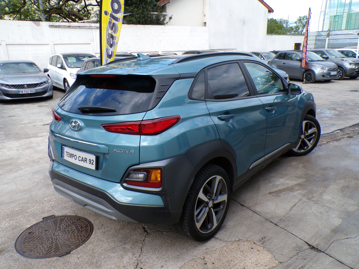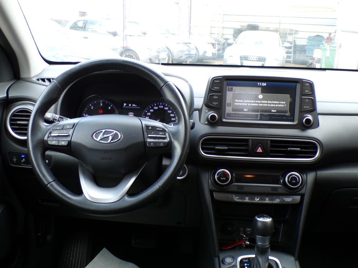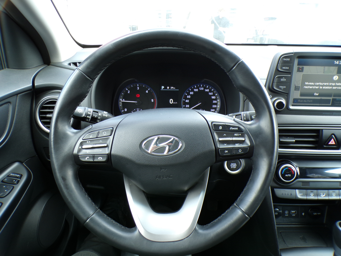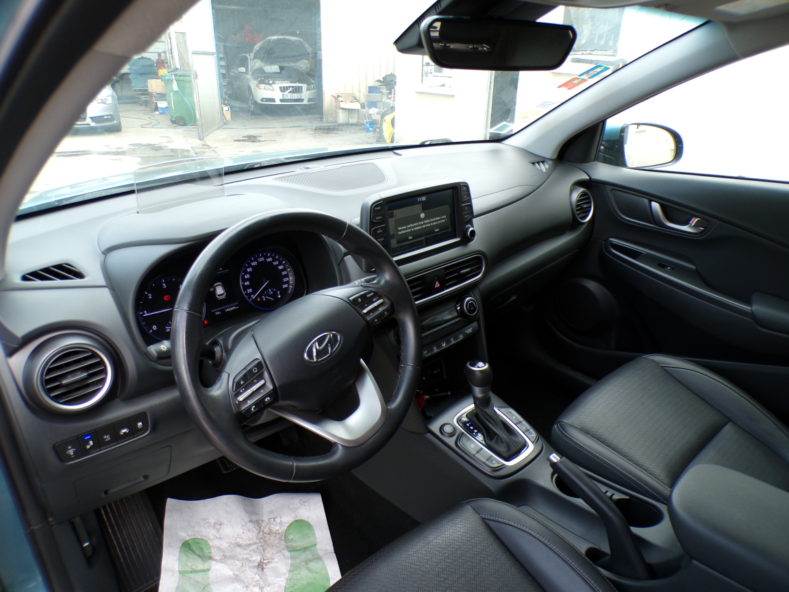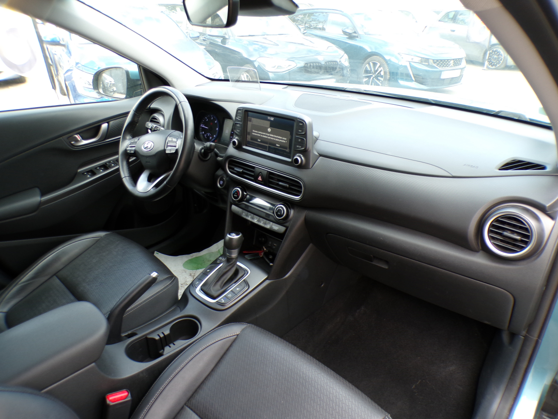 HYUNDAI KONA (Kona 1.6 CRDi 136 DCT-7 Executive) INC. NOIR.Accoudoir AV, Affichage tête haute, Aide au démarrage en côte, Aide au stationnement AR, Aide au stationnement AV, Airbags frontaux conducteur et passager, Airbags latéraux AV, Airbags rideaux AV/AR, Alarme périmétrique, Alerte de circulation transversale à l'AR, Allumage automatique des feux, Allumage automatique des feux et capteur de pluie, Antenne de toit type requin en effet verre, Appui-têtes AV réglables en hauteur et ajustables, Appuie-têtes AR réglables en hauteur, Assistance active au maintien de voie, Caméra de recul, Caméra de recul avec lignes de guidage dynamiques, Capteur de pluie, Chargeur sans fil pour téléphone compatible, Climatisation automatique, Commandes audio au volant, Compatibilité Apple CarPlay et Android Auto, Connexion Bluetooth, Console de rangement sous accoudoir AV, Contour de calandre chromé, Contrôle de la pression des pneumatiques, Contrôle de trajectoire électronique (ESC), Contrôle de vitesse en descente, Détection de fatigue du conducteur, Dossier AR rabattable 60/40, Drive Mode, Eclairage additionnel en virage, Eclairage additionnel en virage à LED, Feux antibrouillard AV, Feux AR à LED, Feux AV bi-LED, Feux de jour à LED, Feux de position AV à LED, Feux de route intelligents, Filtre à particules, Freinage d'urgence autonome, Freinage d'urgence autonome avec détection des piétons, Inserts décoratifs gris (contours des aérateurs et du bloc de levier de vitesses), Jantes alliage 18 bi-ton, Miroirs de courtoisie éclairés conducteur et passager AV, Moulures de protection latérale avec insert grain métal, Ordinateur de bord couleur 4.2 multifonction, Pare-brise et vitres AV athermiques, Peinture métallisée, Peinture métallisée Ceramic Blue, Poches aumonières au dos des sièges AV, Prise 12V à l'AV, Prise auxiliaire et USB, Prise USB de recharge, Protections d'ailes gris anthracite, Rails de toit, Réception radio numérique terrestre (DAB), Régulateur/Limiteur de vitesse, Répétiteurs de clignotants intégrés aux rétroviseurs, Rétroviseurs électriques et dégivrants, Rétroviseurs extérieurs rabattables électriquement, Rétroviseurs intérieur jour/nuit automatique, Rétroviseurs rabattables électriquement, Roue de secours temporaire, Sellerie cuir (assise et dossier), Siège conducteur avec support lombaire électrique, Siège conducteur réglable en hauteur, Siège passager AV réglable en hauteur, Sièges AV chauffants, Sièges AV réglables électriquement, Ski AR grain métal, Surveillance des angles morts, Surveillance des angles morts avec assistance au changement de voie, Système audio premium Krell, 5 haut-parleurs, 2 tweeters, subwoofer et amplificateur externe, Système d'accès mains-libres et démarrage sans clé, Système d'arrêt et redémarrage automatiques, Système de navigation Europe avec programme de mise à jour de la cartographie et services TomTom Live, Système de réduction catalytique sélective, Système ISOFIX pour siège enfant aux places latérales AR, Système multimédia avec écran couleur tactile 8, Verrouillage automatique des portes en roulant, Verrouillage centralisé à distance, Vitre conducteur séquentielle, Vitres AR surteintées, Vitres électriques AV et AR, Volant et pommeau de levier de vitesses gainés de cuir, Volant réglable en hauteur et en profondeur, 7 vitesses, 5 places, puissance fiscal : 7, puissance din : 136, émission de CO2 : 0 g/km.
