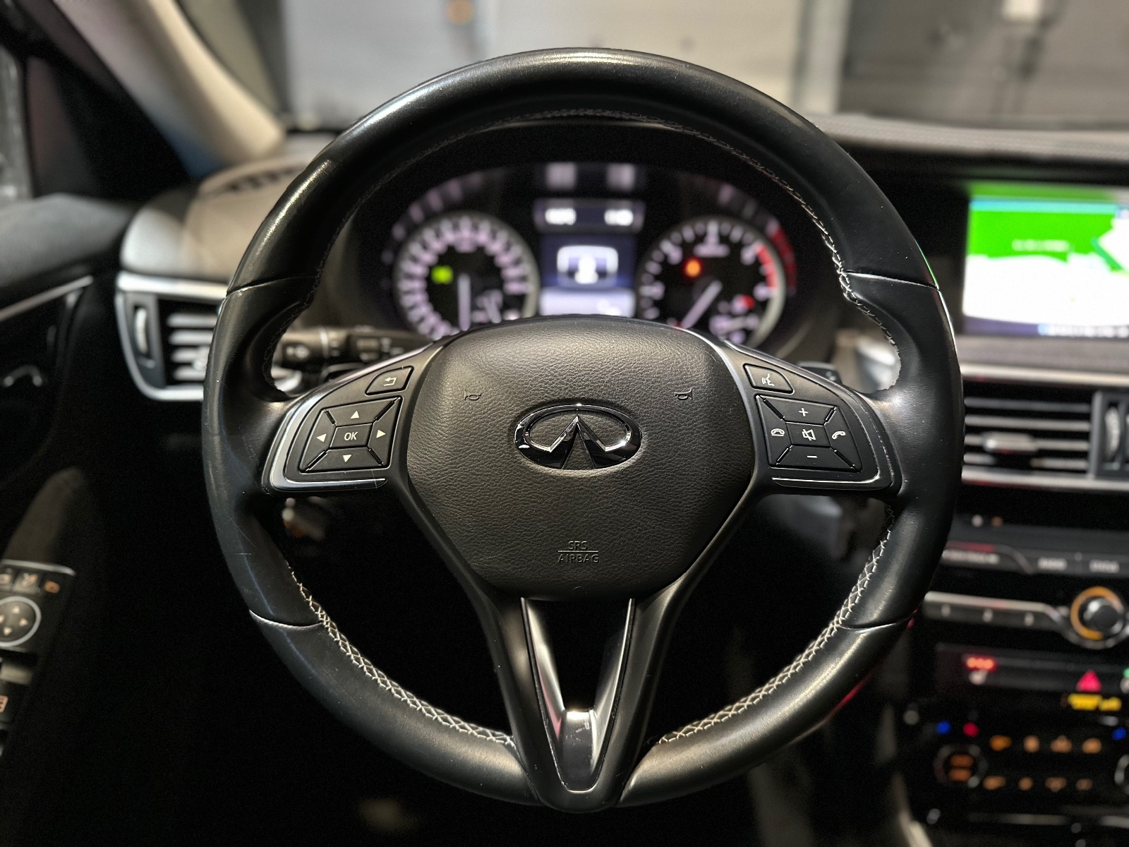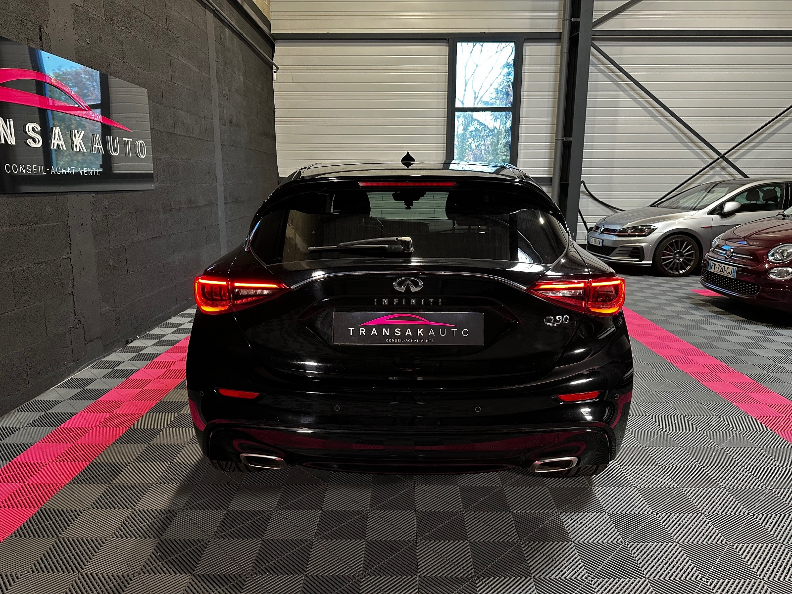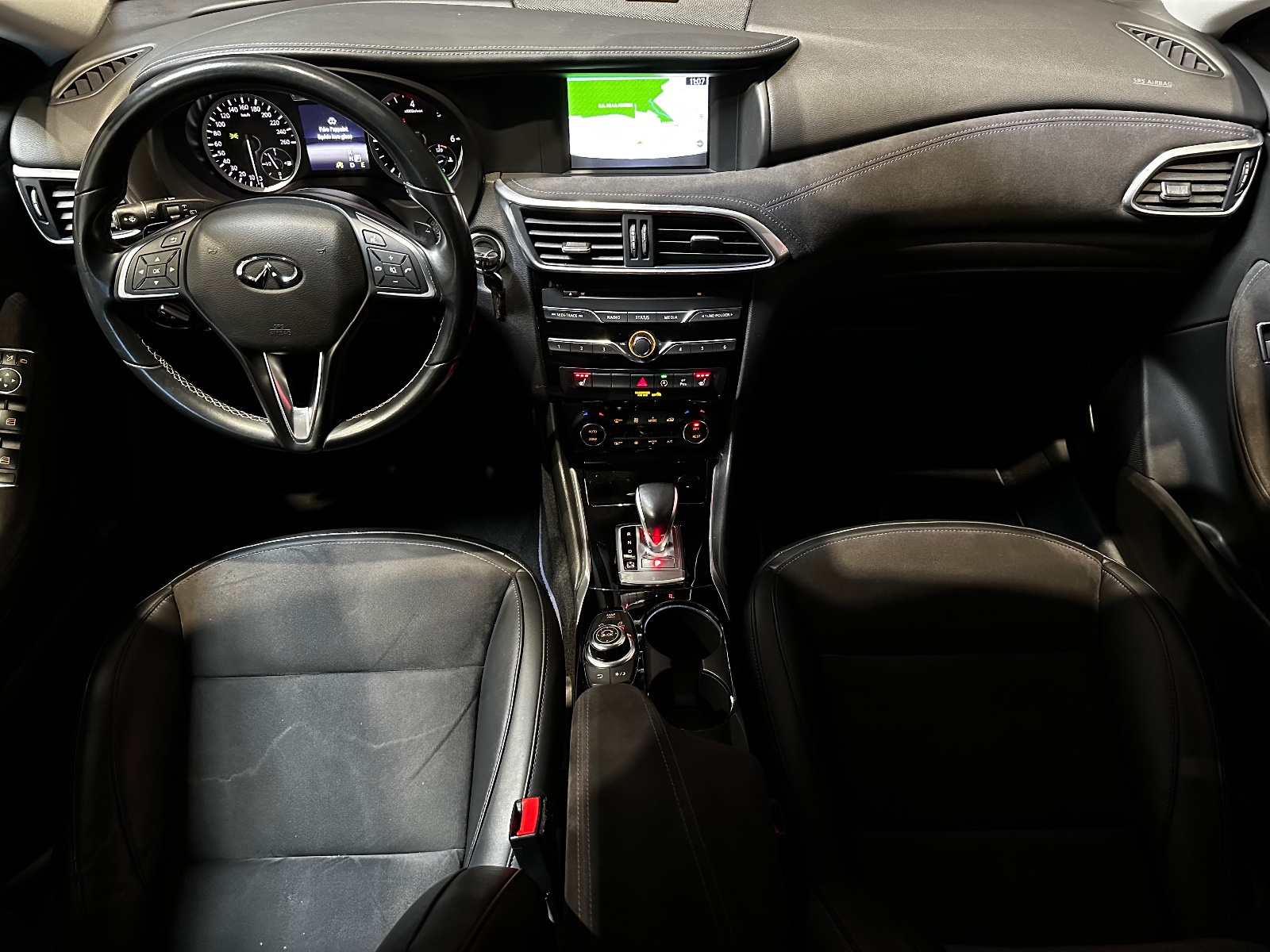 INFINITI Q30 2 2d 170 7DCT AWD Premium Tech// Accoudoir arrière Accoudoir avant Airbag conducteur Airbag latéral conducteur et passager Airbag passager Alerte de franchissement involontaire de lignes Allumage automatique des phares Assistance de freinage Banquette/sièges arrière rabattable Boîte automatique 7 vitesses Buses de lave-glace chauffantes Caméra de recul Climatisation automatique bizone Connexion iPod Contrôle de traction Contrôle pression pneus (RDC) Détecteur pluie Feux arrière LED Feux avant LED Feux de position à LED Feux et essuie-glaces automatiques Filtre à particules GPS tactile Garnitures intérieures bois Installation d'alarme Interface Bluetooth Jantes/roues en alliage léger 18 Kit de réparation pneus (Mobile Tyre) Levier de vitesses en cuir Limiteur de vitesse Lève-vitres arrière électriques Lève-vitres avant électriques Ordinateur de bord Phares antibrouillard Radar de stationnement arrière Radar de stationnement avant Réglage automatique des phares Régulateur de vitesse Répartiteur électronique de freinage Rétroviseur extérieur électrochrome Rétroviseur intérieur électrochrome Rétroviseurs extérieurs dégivrants Rétroviseurs extérieurs rabattable électriquement Siège conducteur chauffant Siège conducteur réglable en hauteur Siège conducteur réglable éléctriquement Siège conducteur à réglage lombaire électrique Siège passager chauffant Siège passager réglable éléctriquement Sièges avant chauffants Sièges en cuir Sièges en cuir / alcantara Système Start/Stop Système anti bloquage (ABS) Système de freinage d'urgence anticipatif Système de freinage d'urgence urbain Système information conducteur USB jack Verrouillage centralisé Verrouillage centralisé télécommandé Volant 3 branches Volant avec palettes de changement de vitesses Volant en cuir Volant multifonctions Volant réglable manuellement