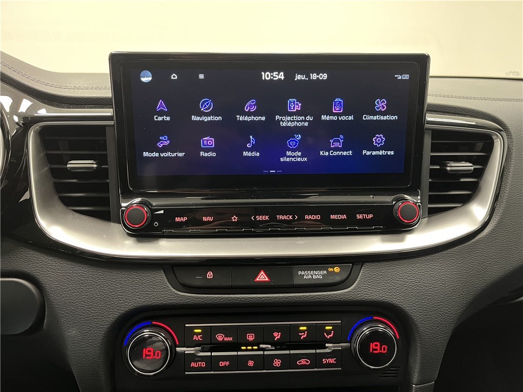 - Ecran tactile couleur 10,25 , système de navigation avec cartographie Europe et services connectés Kia Connect Live offerts pendant 7 ans, compatibilité via câble USB Android Auto et Apple CarPlay
