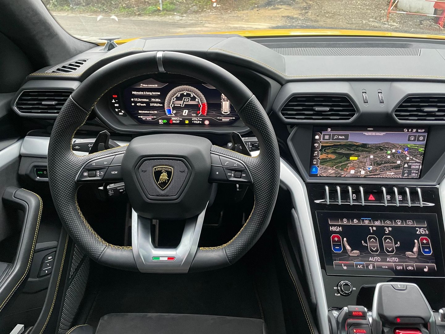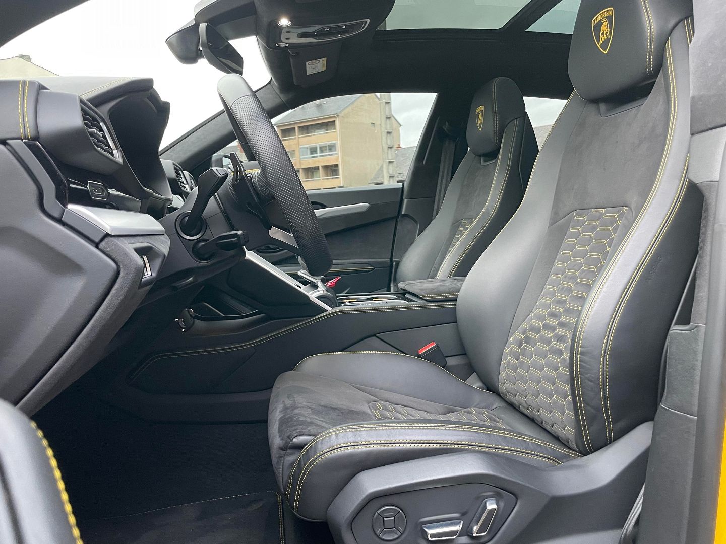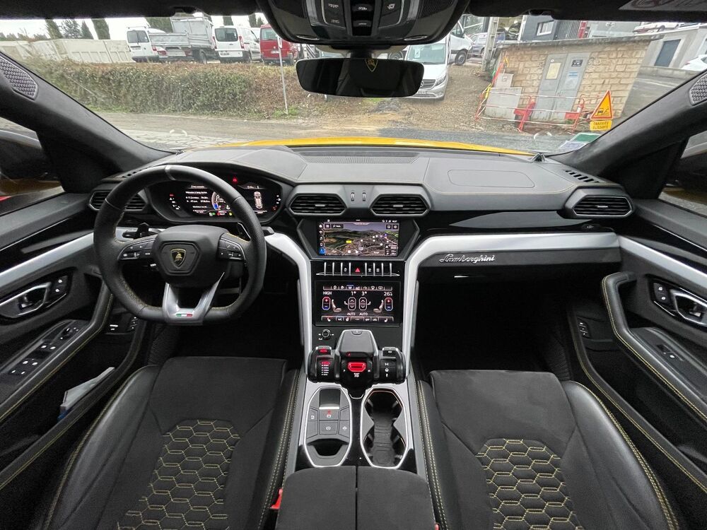 Bang & Olufsen Advanced 3D Audio System,Giallo Auge - Solid color,Rims Nath 22" silver,Caméra 360°,Freinage Carbon Céramique,Head up display ( affichage tête haute ),Keyless-Go ( Ouverture et démarrage main libre ),Lamborghini Anima ( Mode conduite ),Lamborghini Technica LED,Logo Lamborghini sur les appuie tête,Pavillon alcantara,Système de maintien du véhicule en côte,ABS,Accoudoir arrière,Accoudoir central AV avec rangement,Aide au démarrage en côte,Airbag conducteur,Airbag passager déconnectable,Airbags latéraux avant,Alarme,Alarme périmétrique,Alarme volumétrique,Antidémarrage électronique,Arrêt et redémarrage auto. du moteur,Assistance de maintient de trajectoire,Bacs de portes avant,Banquette 40/20/40,Banquette AR rabattable,Banquette arrière 3 places,Becquet arrière,Boucliers AV et AR couleur caisse,Capteur de pluie,Ceintures avant ajustables en hauteur,Clim automatique arriere,Clim automatique bi-zones,Coffre assisté électriquement,Commande du comportement dynamique,Commandes du système audio au volant,Compte tours,Ecran multifonction couleur,Ecran tactile