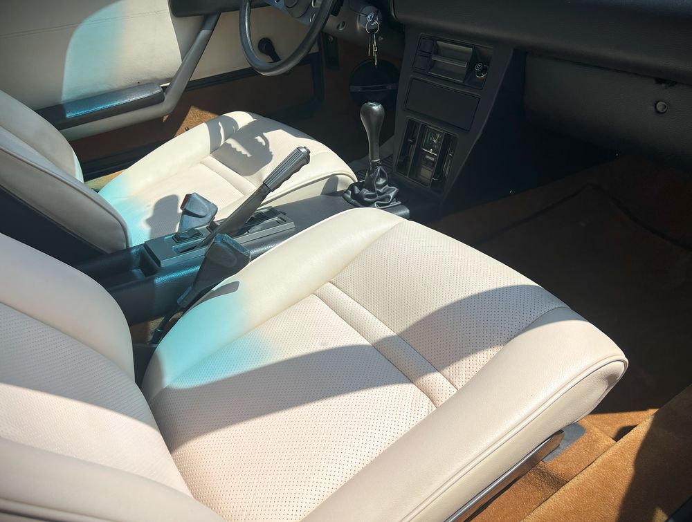 L'habitacle est en excellent état. Tres belle sellerie blanc cassé très bien conservée, une planche de bord en très bon état et de belles moquettes couleur camel. Les équipements de bord sont fonctionnels.