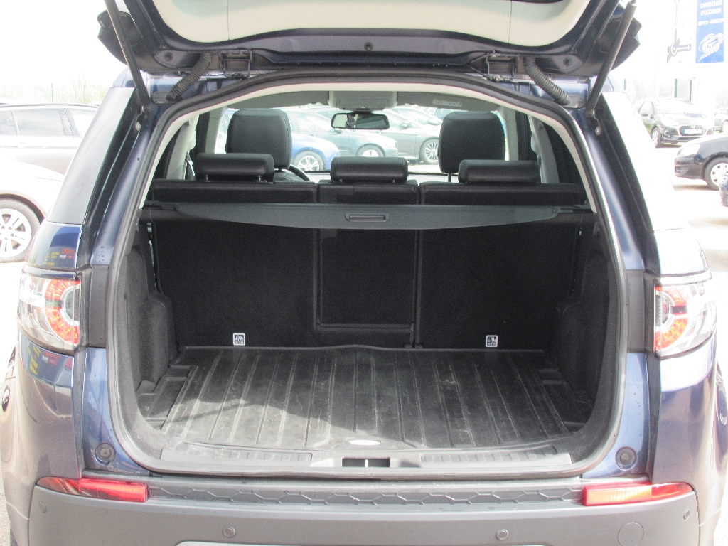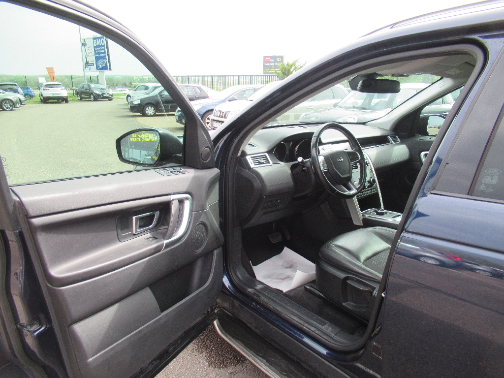 LAND ROVER DISCOVERY SPORT (Tdch BVA8) BLEU Cuir noir.1 Prise 12V au-dessus de la boîte à gants, 2 Prises USB à la 2ème rangée, 6 Airbags en configuration 5 Places, 8 Airbags en configuration 7 Places, Alerte de franchissement de ligne involontaire, Banquette AR coulissante et inclinable manuellement, rabattable 60/40 avec trappe à skis, Boîte à gants secondaire supérieure, Boîte de transfert simple gamme, Caméra de recul avec vue d'intersection AR, Climatisation automatique 2 zones, Configuration 5 sièges, Couvre-bagage, Détecteur d'obstacle AR, Détecteur d'obstacle AV, Double porte-gobelets dans la console centrale avec couvercle, Eclairage d'ambiance intérieur (portières et vide-poche), Ecrous antivol, Extension du plancher de coffre déployable électriquement, Feux AR à signature LED, Finition Natural Shadow Oak, Freinage d'urgence autonome, InControl Protect - Appel automatique d'urgence en cas de panne ou d'accident + Application Smartphone, InControl Protect avec 3 ans de souscription, Jantes alliage 20'' 5 branches doubles - Style 5011, Lampes de lecture AR, Ordinateur de bord avec écran 5", Ouverture et fermeture électrique du hayon, Pare-soleil conducteur et passager avec miroirs de courtoisie éclairés, Phares à LED avec signature LED, Phares et essuie-glaces automatiques, Plaques de seuils de portes en métal, Poignées de portes couleur carrosserie, Projecteurs antibrouillard, Radio numérique DAB, Rangement dans la console centrale, Régulateur de vitesse, Rétroviseur intérieur photosensible, Rétroviseurs extérieurs rabattables électriquement, Roue de secours temporaire, Sièges Style 3 - Sièges en Cuir grené réglables électriquement en 12x12 directions dont supports lombaires 2 directions avec mémoire de position du siège conducteur, Suspension à ressorts, Système audio Meridian 380W - 2 ports USB permettant la recharge, Système Bluetooth avec lecture des SMS (sans reconnaissance vocale), Système d'entrée et de fermeture sans clé, Système de contrôle de la pression des pneumatiques - TPMS, Système de Navigation InControl Touch Pro sur disque dur SSD, Système multimédia InControl Touch Pro avec écran tactile 10,2'', Toit couleur carrosserie, Transmission automatique à 8 rapports avec palettes de changements de rapport au volant, 8 vitesses, 5 places, puissance fiscal : 11, puissance din : 150, émission de CO2 : 163 g/km.