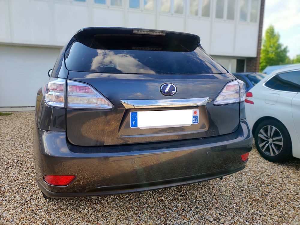 Lexus RX 450h 3.5 V6 299 AWD Pack Président E-CVT * (15 CV), 4x4 - SUV, Hybride, 12/2009, 177 936 km, 4 portes avec hayon, Automatique, 14 980 €. Options: Direction assistée, Banquette AR 1/3 - 2/3, Intérieur cuir, Vitres électriques, Toit ouvrant électrique, Accoudoir central, Climatisation automatique, Fermeture centralisée, Vitres teintées, Allumage automatique des feux, Rétroviseurs électriques, Correcteur d'assiète, ABS, Airbag frontaux, Airbags frontaux + latéraux, Projecteurs Xénon ou bi-Xénon, Contrôle de stabilité (ESP), 1.