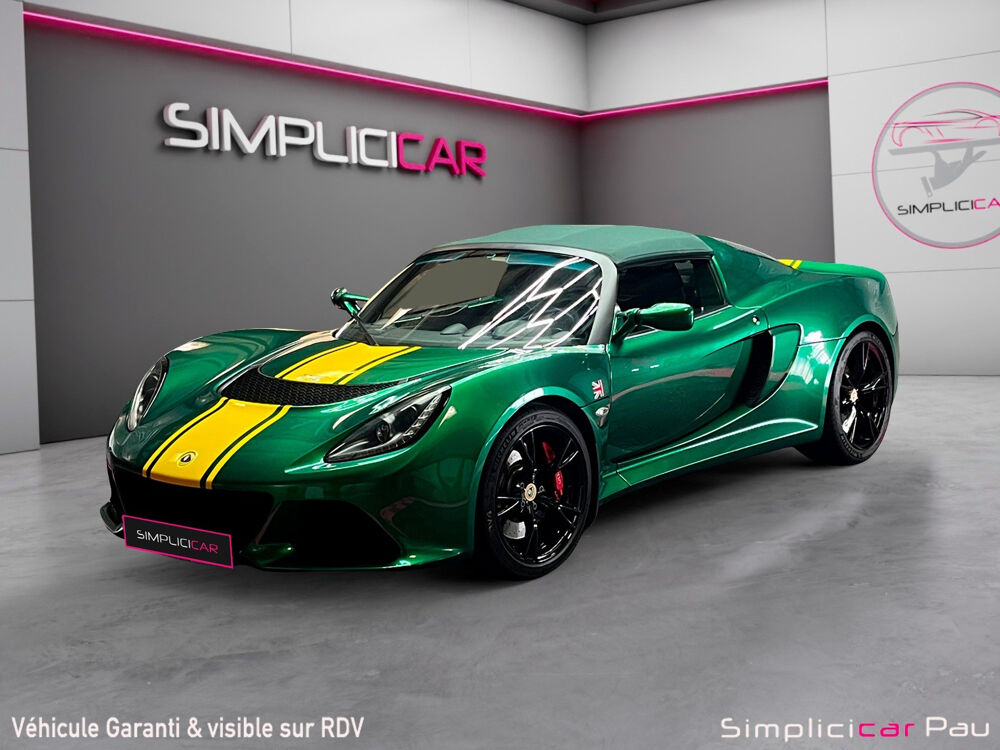 LOTUS EXIGE ROADSTER 3 5i 350 ch S// LOTUS Exige S Roadster style type 25 Edition Limitée RRC Elle possède le numéro 1 sur 10 exemplaires Dans sa couleur Racing Green avec son covering à bandes jaunes elle représente l'élégance à la britannique à l'état pur mêlé à une touche de sportivité Véhicule 2ème main entretien à jour avec factures et carnet Options :