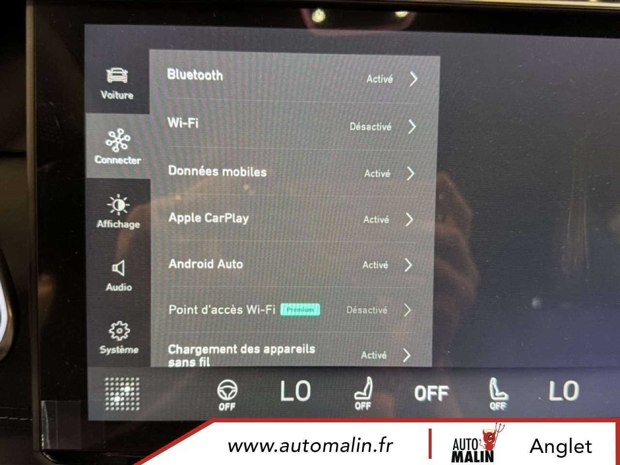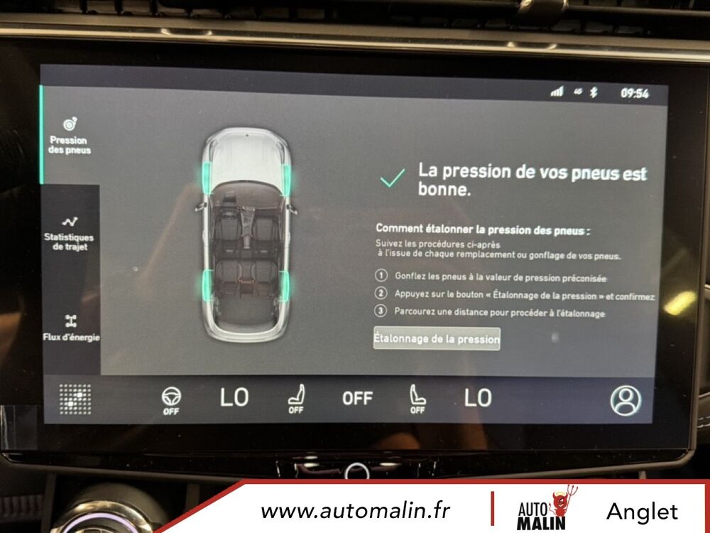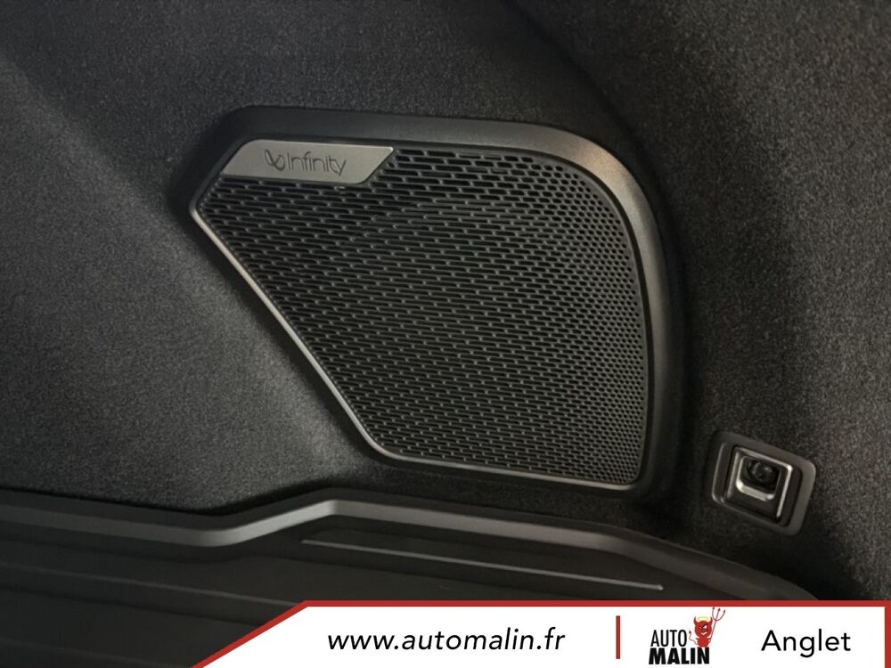 Equipements supplémentaires : 12V outlet front and cargo, 2 hooks for grocery bags and 4 load lashing points (trunk), 64 GB internal hard disk, ABS + EBD, Accoudoir central a l'AR avec deux porte-gobelets integres, Accoudoir de porte et console au sol en materiau recycle, Active upper grill shutter, AHB-C (Active High Beam-Control), AHB-C (Controle des feux de route actifs), Alarm, Ambient light multi color, Android Auto, Antenne requin fine, Apple CarPlay, Applications embarquees, Approach and Home safety lights, Auto hold, Automatic air conditioning 2-Zone, AVSL+ Speed limiter (Automatic Vehicle Speed Limitation), Banquette AR pliable 60/40 et separee, BAS (Aide au freinage d'urgence), BAS (Electronic Brake Assist), BLC (Brake Light Control), BLC (Commande d'eclairage de freinage), Bluetooth media streaming and hands-free, Boite a gants refroidie, Bouton d'autopartage, Branded (Infinity) stereo with 10 speakers, BSD (Blind Spot Detection), BSD (Detection d'angle mort), Capless fuel filling, Capteur de pluie de pare-brise, Car Sharing button, CBC (Commande de freinage en virage), CBC (Corner Brake Control), Cellphone wireless charging, Chargement de telephone portable sans fil, Cle numerique, Climatisation automatique 2 zones ECC Temp., Connectivite (acces a Internet et au Cloud), Connexions USB, 2 a l'AV et 2 a l'AR, Console du tunnel avec espaces de rangement fermes avec accoudoir ajustable, Crochets Iso-Fix sur les sieges exterieurs de la banquette AR, DAB+, DAC (Alerte vigilance conducteur), DAC (Driver Alert Control), Deux crochets pour les sacs de course et quatre points d'ancrage pour le chargement (coffre), Deux porte-gobelets dans la console du tunnel AV, Digital key, Disque dur interne de 64 Go, Door mirrors, power - heated, memory, Double sortie d'echappement visible, Driver seat Power 8 way with memory and power lumbar, Dual visible tail pipes, EBL (Commande d'eclairage de freinage durgence), EBL (Emergency Brake Light control), Eclairage ambiant multicolore, Eclairages d'accompagnement et d'approche, Econyl seat upholstery, Entree et demarrage sans cle (carte intelligente), EPB (Electronic Parking Brake), EPB (Frein de stationnement electronique), Feux AR allumes en mode auto, Filet de rangement vertical, Front acoustic laminated windows on driver passenger side, Full OTA (Over The Air), Garniture de siege et cotes de porte Econyl, Heated front seats, HWA (Assistance routiere), HWA (Highway Assist), IBD (Distance de freinage amelioree), IBD (Improved Braking Distance), In Car Apps, Interactions orales (reconnaissance vocale, avec double microphone), Iso-Fix hooks for rear seats outer positions, Journey Camera (camera interieure reliee aux reseaux sociaux et camera qui enregistre sur le tableau, Journey camera (Interior social camera and recordable dashcam), LCA (Aide au changement de voie), LCA (Lane Change Assist), LDW (Avertissement de sortie involontaire de voie), LDW (Lane Departure Warning), Leather steering wheel with touch controls for cruise and audio, Lecture de contenu en streaming via Bluetooth et dispositif mains-libres, LED headlamps with AFS (adv fr light system), Limiteur de vitesse AVSL+ (Limitation automatique de la vitesse du vehicule), LKA (Aide au maintien de voie), LKA (Lane Keeping Aid), Lumieres d'accueil et de sortie exterieures, Maintien automatique, Metallic paint, two-tone contrasting roof, Navigationsystem, Notification de vol de vehicule via la fonction telematique, PAC 360°, Panoramic sunroof, Passenger seat 6 way manual adjustment, Peinture metallique, toit contraste avec deux teintes differentes, Personal settings cloud based, Phares LED avec AFS (systeme declairage frontal adaptatif), PIB (Freinage apres impact), PIB (Post Impact Braking), Piliers de plafond et de toit en materiau durable, Point d'acces Wi-Fi, POT (Hayon a commande electrique), POT (Power operated tail gate), Prise 12 V AV et au niveau du coffre, RAB (Frein a alerte rouge), RAB (Red Alert Brake), Rails de toit, Satin Natural Chrome, RBC (Controle du freinage regeneratif), RBC (Regenerativ Braking Control), RCTA (Alerte de circulation transversale AR), RCTA (Rear Cross Traffic Alert), Rear lights on in auto mode, Rear seat 60/40 foldable split, Rear seat center armrest with 2 integrated cup holders, Rear view mirror with auto dimming, Reglages personnels stockes dans le Cloud, Regulateur de vitesse adaptatif avec assistant dans les embouteillages (radar+camera), Remote control of ECC, Reservoir sans capuchon, Retroviseur avec attenuation automatique, Retroviseurs exterieurs, chauffage a reglage electrique, memoire, Roof rails, Satin Natural Chrome, Roof spoiler, RSD