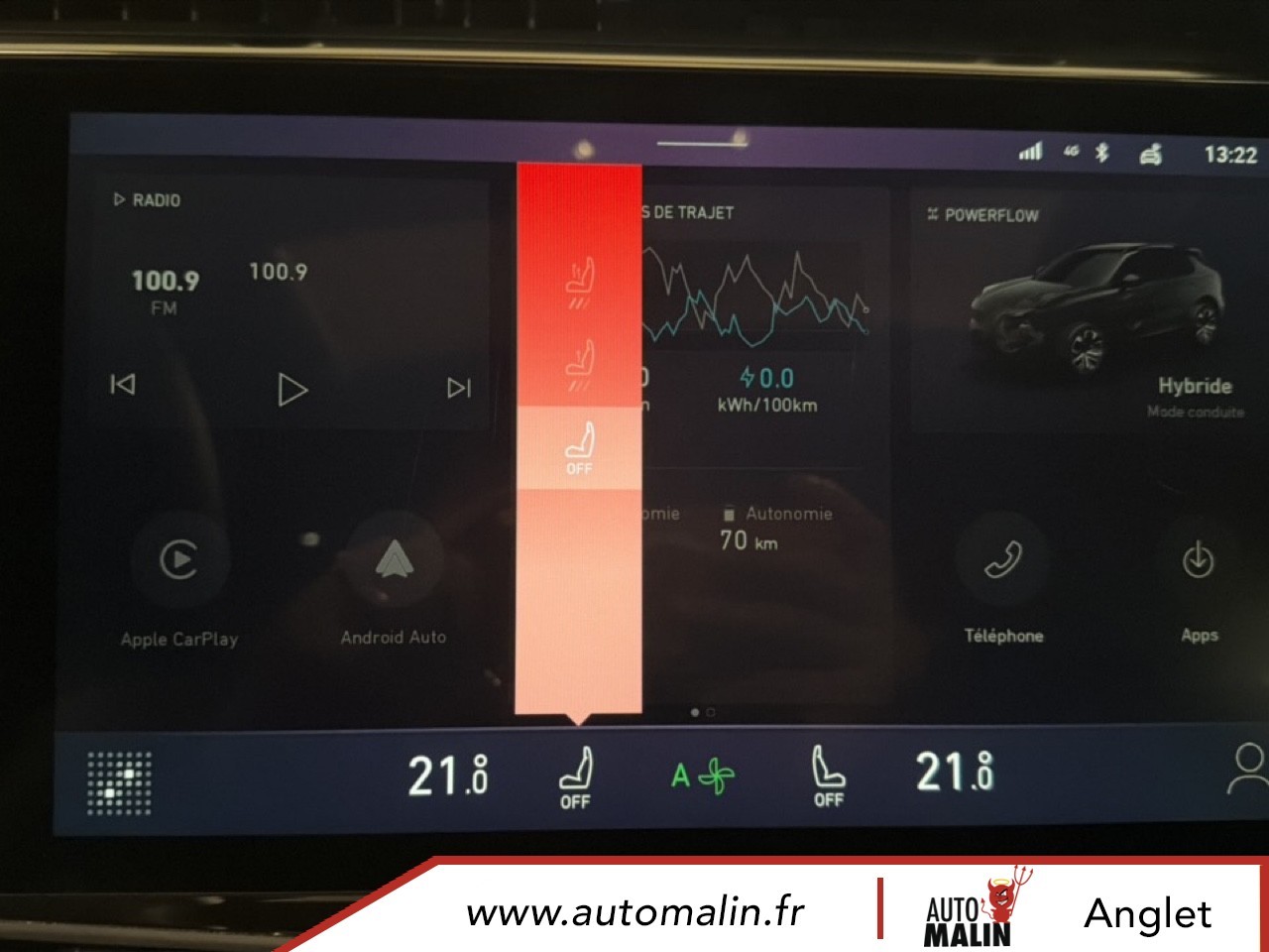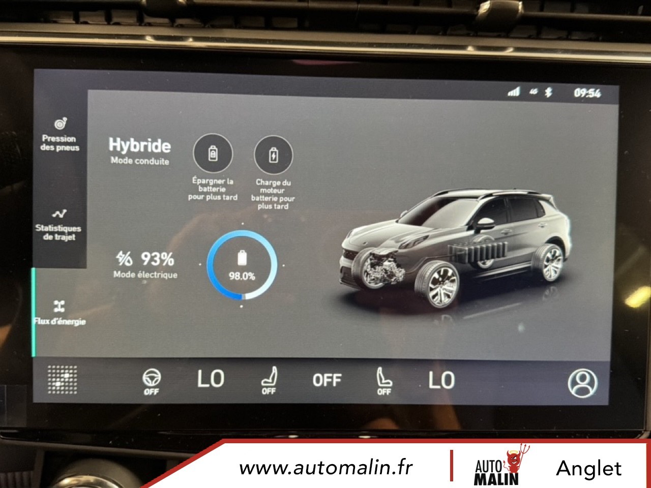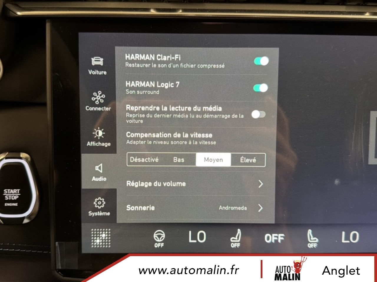Equipements supplémentaires : 12V outlet front and cargo, 2 hooks for grocery bags and 4 load lashing points (trunk), 64 GB internal hard disk, ABS + EBD, Accoudoir central a l'AR avec deux porte-gobelets integres, Accoudoir de porte et console au sol en materiau recycle, Active upper grill shutter, AHB-C (Active High Beam-Control), AHB-C (Controle des feux de route actifs), Alarm, Ambient light multi color, Android Auto, Antenne requin fine, Apple CarPlay, Applications embarquees, Approach and Home safety lights, Auto hold, Automatic air conditioning 2-Zone, AVSL+ Speed limiter (Automatic Vehicle Speed Limitation), Banquette AR pliable 60/40 et separee, BAS (Aide au freinage d'urgence), BAS (Electronic Brake Assist), BLC (Brake Light Control), BLC (Commande d'eclairage de freinage), Bluetooth media streaming and hands-free, Boite a gants refroidie, Bouton d'autopartage, Branded (Infinity) stereo with 10 speakers, BSD (Blind Spot Detection), BSD (Detection d'angle mort), Capless fuel filling, Capteur de pluie de pare-brise, Car Sharing button, CBC (Commande de freinage en virage), CBC (Corner Brake Control), Cellphone wireless charging, Chargement de telephone portable sans fil, Cle numerique, Climatisation automatique 2 zones ECC Temp., Connectivite (acces a Internet et au Cloud), Connexions USB, 2 a l'AV et 2 a l'AR, Console du tunnel avec espaces de rangement fermes avec accoudoir ajustable, Crochets Iso-Fix sur les sieges exterieurs de la banquette AR, DAB+, DAC (Alerte vigilance conducteur), DAC (Driver Alert Control), Deux crochets pour les sacs de course et quatre points d'ancrage pour le chargement (coffre), Deux porte-gobelets dans la console du tunnel AV, Digital key, Disque dur interne de 64 Go, Door mirrors, power - heated, memory, Double sortie d'echappement visible, Driver seat Power 8 way with memory and power lumbar, Dual visible tail pipes, EBL (Commande d'eclairage de freinage durgence), EBL (Emergency Brake Light control), Eclairage ambiant multicolore, Eclairages d'accompagnement et d'approche, Econyl seat upholstery, Entree et demarrage sans cle (carte intelligente), EPB (Electronic Parking Brake), EPB (Frein de stationnement electronique), Feux AR allumes en mode auto, Filet de rangement vertical, Front acoustic laminated windows on driver passenger side, Full OTA (Over The Air), Garniture de siege et cotes de porte Econyl, Heated front seats, HWA (Assistance routiere), HWA (Highway Assist), IBD (Distance de freinage amelioree), IBD (Improved Braking Distance), In Car Apps, Interactions orales (reconnaissance vocale, avec double microphone), Iso-Fix hooks for rear seats outer positions, Journey Camera (camera interieure reliee aux reseaux sociaux et camera qui enregistre sur le tableau, Journey camera (Interior social camera and recordable dashcam), LCA (Aide au changement de voie), LCA (Lane Change Assist), LDW (Avertissement de sortie involontaire de voie), LDW (Lane Departure Warning), Leather steering wheel with touch controls for cruise and audio, Lecture de contenu en streaming via Bluetooth et dispositif mains-libres, LED headlamps with AFS (adv fr light system), Limiteur de vitesse AVSL+ (Limitation automatique de la vitesse du vehicule), LKA (Aide au maintien de voie), LKA (Lane Keeping Aid), Lumieres d'accueil et de sortie exterieures, Maintien automatique, Metallic paint, two-tone contrasting roof, Navigationsystem, Notification de vol de vehicule via la fonction telematique, PAC 360°, Panoramic sunroof, Passenger seat 6 way manual adjustment, Peinture metallique, toit contraste avec deux teintes differentes, Personal settings cloud based, Phares LED avec AFS (systeme declairage frontal adaptatif), PIB (Freinage apres impact), PIB (Post Impact Braking), Piliers de plafond et de toit en materiau durable, Point d'acces Wi-Fi, POT (Hayon a commande electrique), POT (Power operated tail gate), Prise 12 V AV et au niveau du coffre, RAB (Frein a alerte rouge), RAB (Red Alert Brake), Rails de toit, Satin Natural Chrome, RBC (Controle du freinage regeneratif), RBC (Regenerativ Braking Control), RCTA (Alerte de circulation transversale AR), RCTA (Rear Cross Traffic Alert), Rear lights on in auto mode, Rear seat 60/40 foldable split, Rear seat center armrest with 2 integrated cup holders, Rear view mirror with auto dimming, Reglages personnels stockes dans le Cloud, Regulateur de vitesse adaptatif avec assistant dans les embouteillages (radar+camera), Remote control of ECC, Reservoir sans capuchon, Retroviseur avec attenuation automatique, Retroviseurs exterieurs, chauffage a reglage electrique, memoire, Roof rails, Satin Natural Chrome, Roof spoiler, RSD