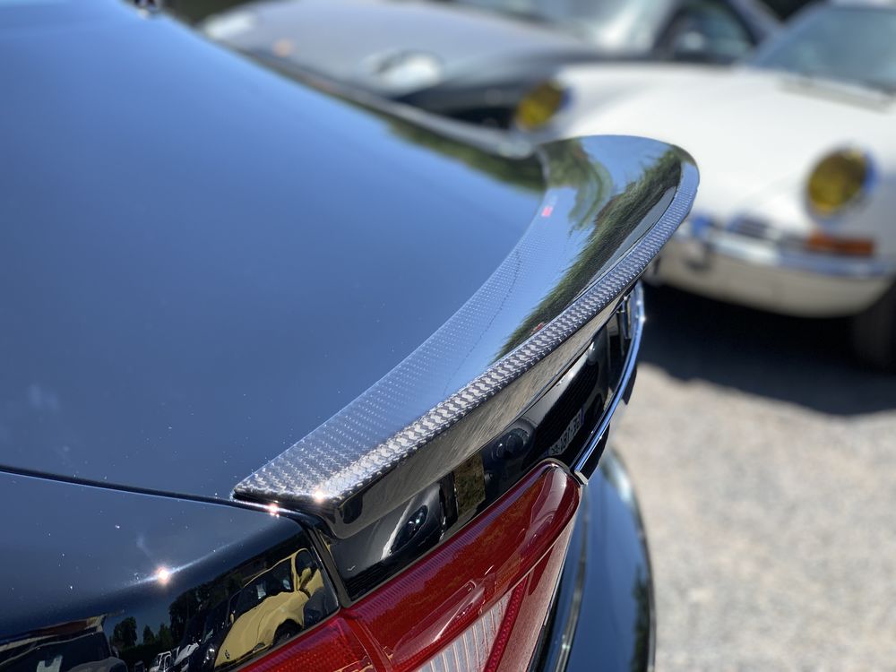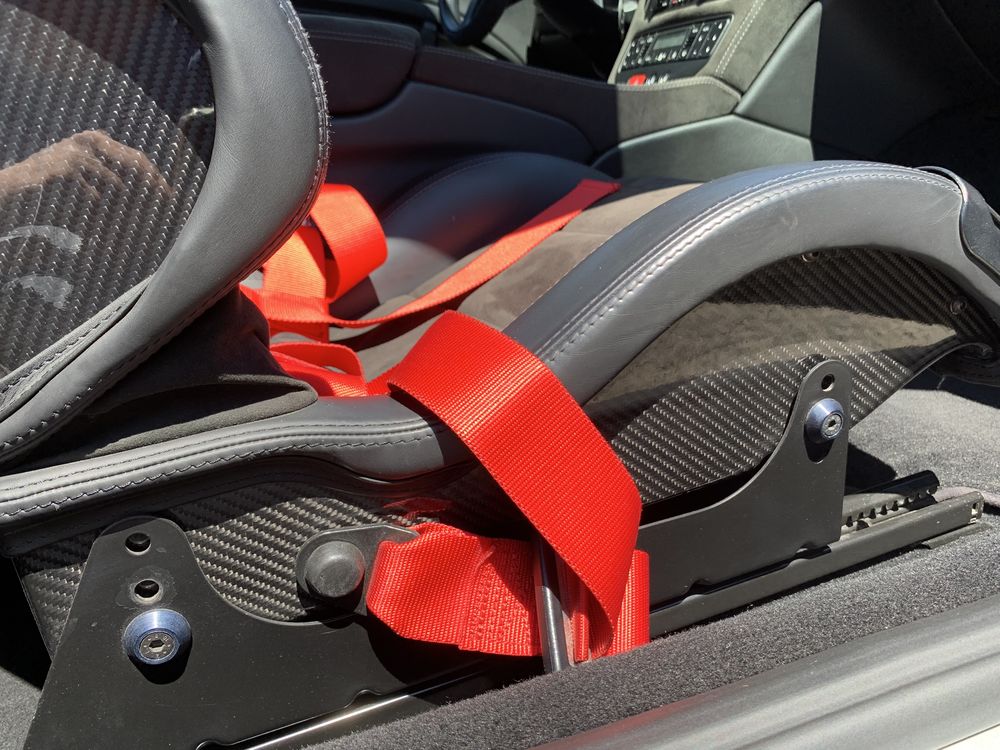 Elle dispose du demi arceau ar, du véritable pack carbone aérodynamique Mc avec poignées, rétroviseurs et lame ar carbone. Cette version proche de la gt3 pour une 911 dispose des freins céramiques (en très bon état) des sièges sport mc carbone, de la sellerie intérieur mc avec alcantara, surpiqures blanches avec logos de la marque estampés sur appuis tête. En mode race, l'échappement vous délivrera un son pur et magique, la sonorité du v8 atmo sur cette version stradale avec échappement sport de série à clapets est digne des plus belles mélodies mécaniques italiennes !!!! Bien que typée piste, cette granturismo garde des équipement de confort de tous les jours, je cite : Climatisation automatique bi-zones, gps 16/9 europe et téléphonie bluetooth.