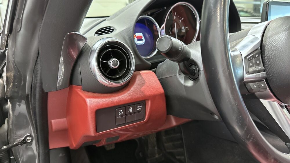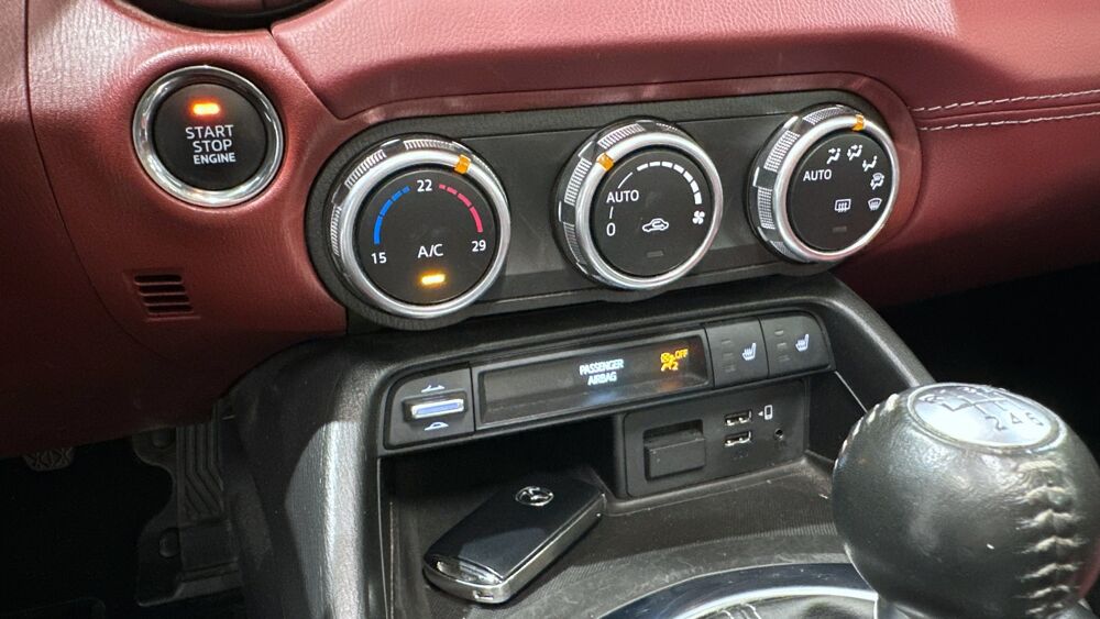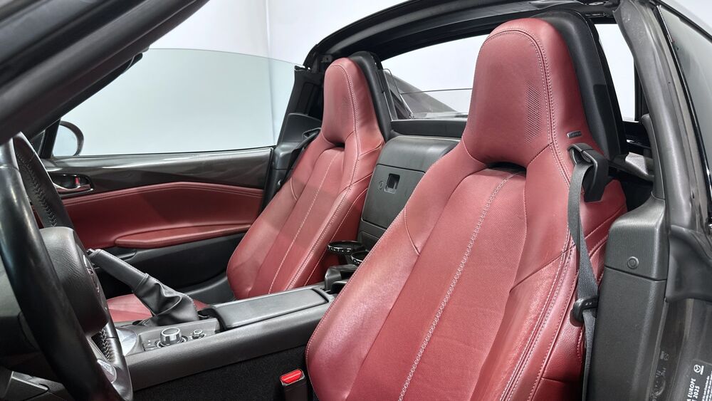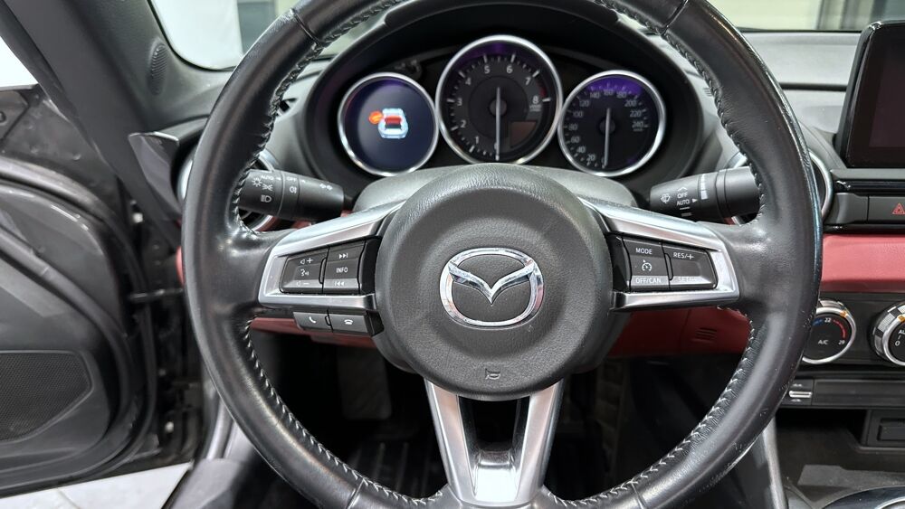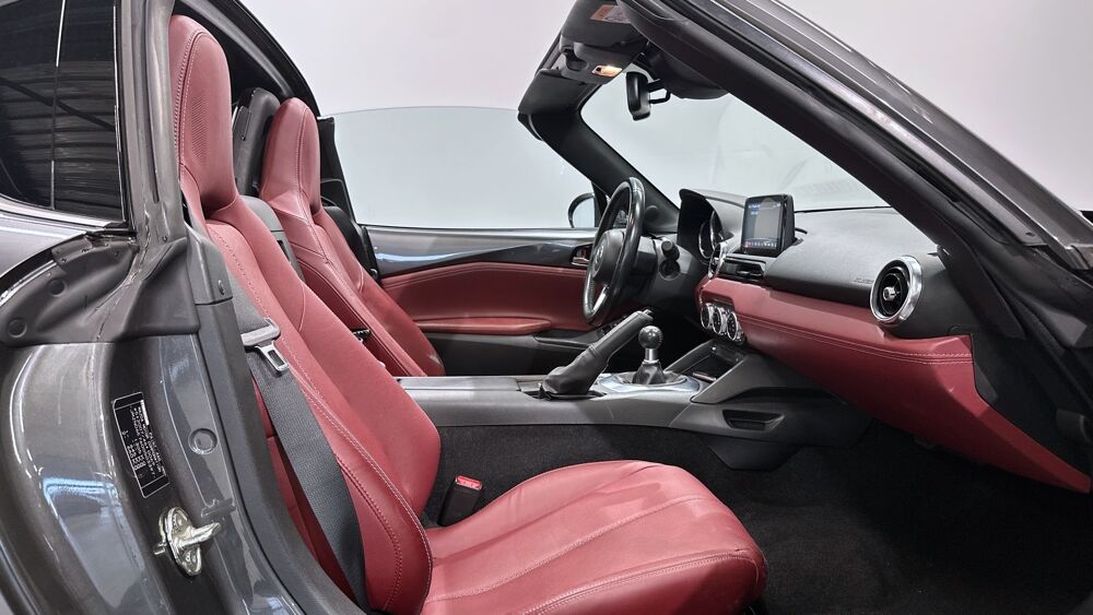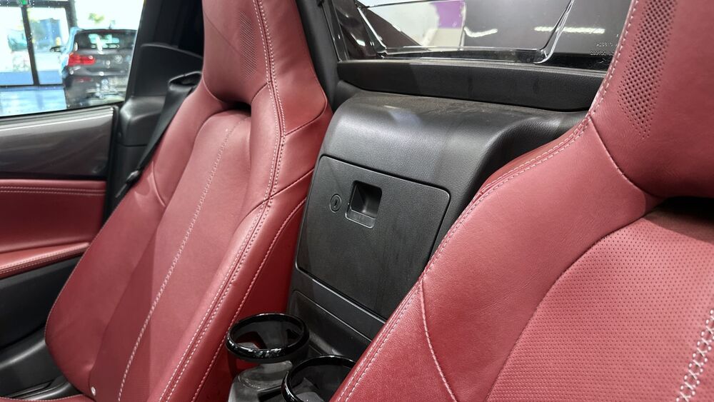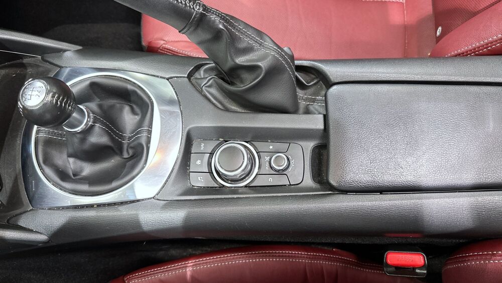 Equipements : Climatisation automatique avec entourages de commandes couleur "argent brillant", Demarrage par bouton " Start/Stop", Fonction "Coming / Leaving home", Ordinateur de bord avec ecran couleur LCD 4,6" et alarme de vitesse, Systeme MZD Connect avec ecran couleur 7" et interface a commandes multiples HMI, Volant gaine de cuir avec branches couleur "argent brillant", Jantes alliage 17" BBS noires, Sellerie cuir rouge "Burgungy"
