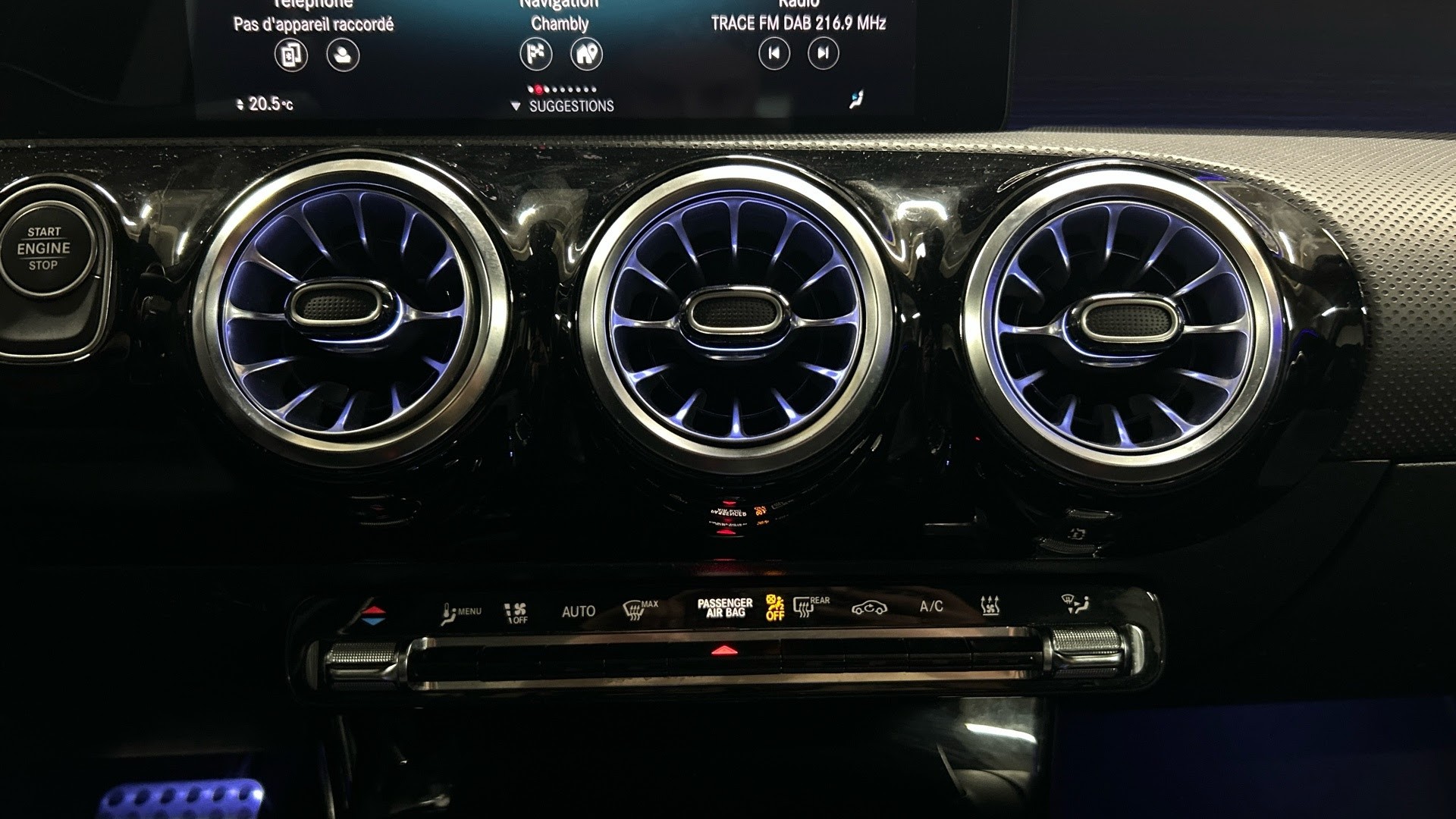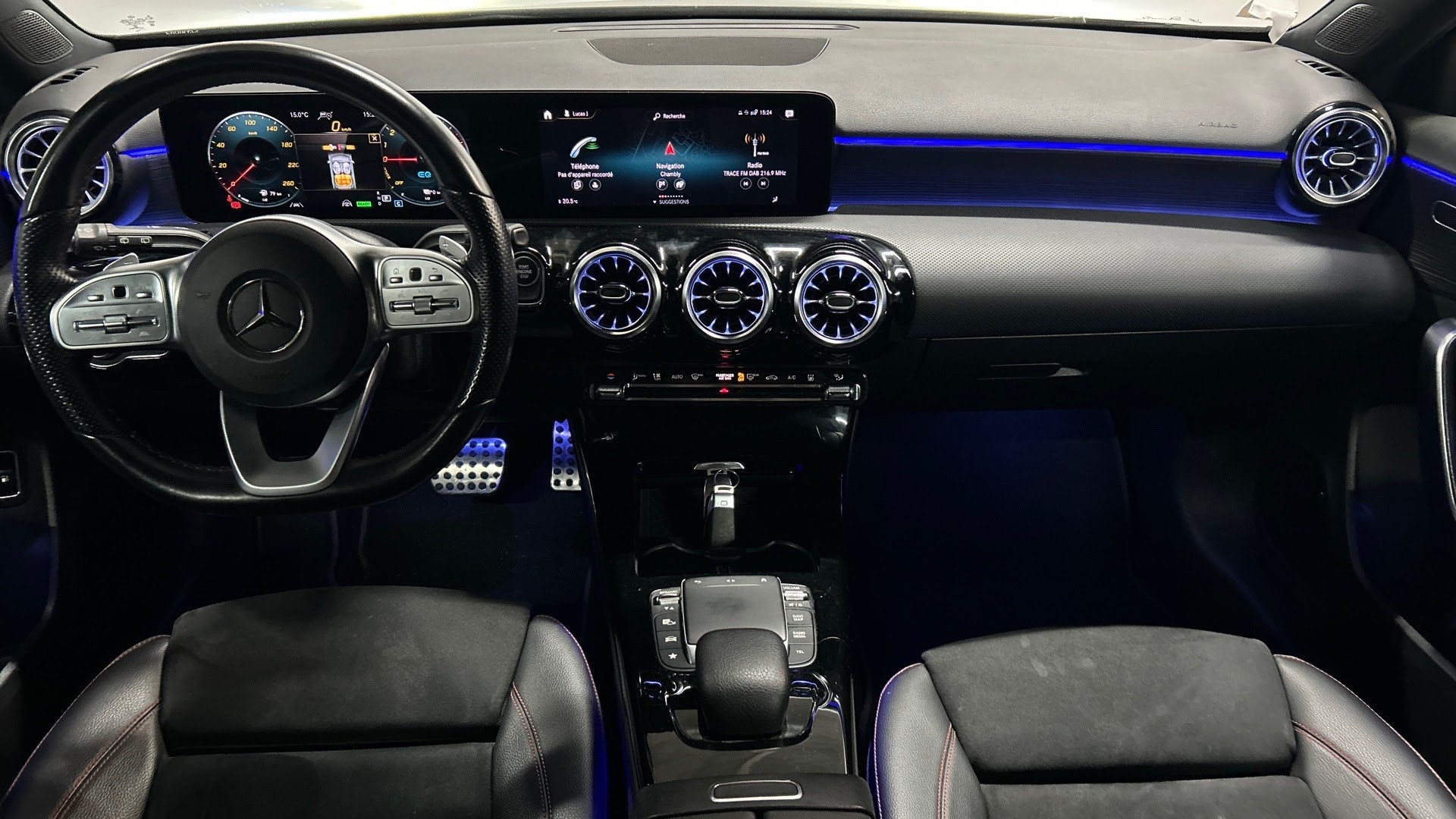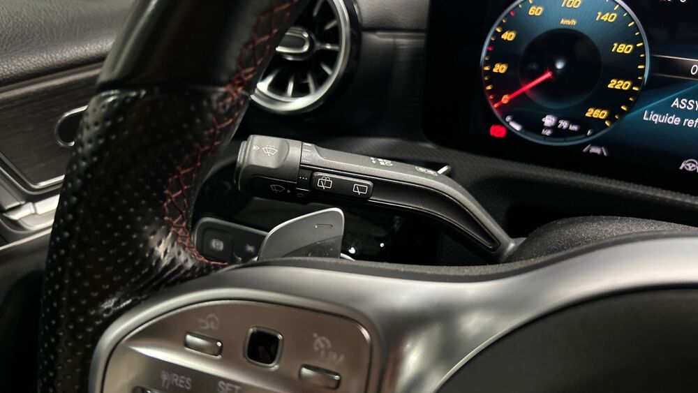 rappel de clignotants, Services a distance et pour la charge Plus, Sieges AV Sport, Sortie d'echappement chromee, Sorties d'echappement chromees (non fonctionnelles), Standard Europe, Standard Europe 1, Systeme d'appel d'urgence Mercedes-Benz, Systeme de controle de la pression des pneus, Systeme de freinage sport, Systeme de navigation Mercedes-Benz, Systeme multimedia MBUX avec 2 ecrans de 18 cm (7''), Tapis de sol AMG, Train de roulement confort, Vide-poche sur la console centrale avec couvercle a enrouleur, Volant sport multifonction a 3 branches en cuir Nappa, avec meplat, perforations au niveau, Volant Sport multifonction en cuir Nappa, Eclairage d'ambiance, Inserts decoratifs en tilleul noir a pores ouverts, Integration pour Smartphone, Pack d'assistance a la conduite, Pack Premium Plus, Projecteurs MULTIBEAM a LED, Sieges AV chauffants, Soutien lombaire a 4 reglages, Systeme de recharge sans fil pour Smartphone, Toit ouvrant panoramique.