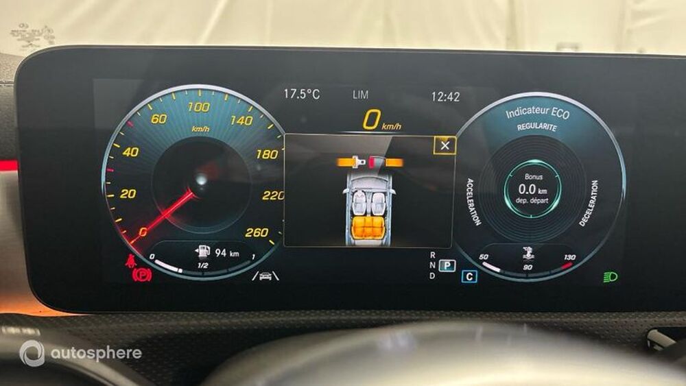 Equipements: ABS, Accoudoir central AV avec rangement, AFIL, Aide au démarrage en côte, Aide au freinage d'urgence, Airbag conducteur, Airbag genoux, Airbag passager, Airbag passager déconnectable, Airbags latéraux avant, Airbags rideaux AV et AR, Antidémarrage électronique, Antipatinage, Appel d'Assistance Localisé, Appel d'Urgence Localisé, Arrêt et redémarrage auto. du moteur, Assistance de maintien de trajectoire, Bacs de portes arrière, Bacs de portes avant, Banquette 40/20/40, Banquette AR rabattable, Banquette arrière 3 places, BAS, Boite à gants fermée, Boucliers AV et AR couleur caisse, Caméra de recul, Capteur de luminosité, Capteur de pluie, Ceinture de vitrage chromée, Clim automatique, Commande du comportement dynamique, Commande Mode ECO, Commandes du système audio au volant, Commandes vocales, Compte tours, Contrôle élect. de la pression des pneus, Démarrage sans clé, Détecteur de sous-gonflage, Direction assistée asservie à la vitesse, EBD, Echappement à double sortie, Ecran LCD, Ecran multifonction couleur, Ecran tactile, ESP, Essuie-glace arrière, Feux arrière à LED, Feux de freinage d'urgence, Feux de jour à LED, Feux de position à LED, Filtre à particules, Filtre à Pollen, Freinage automatique d'urgence, Frein stationnement électrique, GPS Cartographique, Indicateur de limitation de vitesse, Jantes Alu, Kit mains-libres Bluetooth, Lampe de coffre, Lampes de lecture à l'arrière, Lampes de lecture à l'avant, Limiteur de vitesse, Miroir de courtoisie conducteur éclairé, Miroir de courtoisie passager éclairé, Navigateur Internet, Noir, Ordinateur de bord, Ouverture des vitres séquentielle, Palettes changement vitesses au volant, Pédalier sport, Phares avant LED, Poches d'aumonières, Poignées ton carrosserie, Porte-gobelets arrière, Porte-gobelets avant, Préparation Isofix, Prise 12V, Prise auxiliaire de connexion audio, Prise Jack, Prise USB, Radar de stationnement AR, Radar de stationnement AV, Radio numérique DAB, Reconnaissance panneaux de signalisation, Régulateur de vitesse, Répétiteurs de clignotant dans rétro ext, Rétroviseur intérieur électrochrome, Rétroviseurs dégivrants, Rétroviseurs électriques, Rétroviseurs extérieurs électrochromes, Rétroviseurs rabattables électriquement, Siège conducteur réglable en hauteur, Siège passager réglable en hauteur, Sièges avant sport, Sièges sport, Sortie d'échappement chromée, Syst. intelligent gestion des cylindres, Système de détection de somnolence, Système de prévention des collisions, Tablette cache bagages, Témoin de bouclage des ceintures AV, Température extérieure, TMC, Troisième ceinture de sécurité, Verrouillage auto. des portes en roulant, Verrouillage centralisé à distance, Vitres arrière électriques, Vitres avant électriques, Vitres teintées, Volant cuir, Volant multifonction, Volant réglable en profondeur et hauteur, Volant sport, Avertisseur d'angle mort, Bleu denim métallisé, Eclairage d'ambiance, Instrumentation digitale avec écran 10", Intégration pour smartphone, Pack Cuir, Pack Premium Plus, Pack Sport Black, Pack stationnement avec caméra 360°, Pilote auto régul distance DISTRONIC, Projecteurs MULTIBEAM LED, Sièges avant chauffants, Soutien lombaire à 4 réglages, Toit ouvrant panoramique, Vitrage athermique foncé