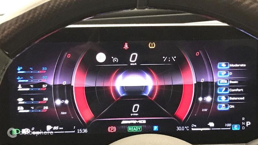 Equipements: ABS, Accoudoir arrière, Accoudoir central AV avec rangement, Affichage tête haute, AFIL, Aide au démarrage en côte, Aide au freinage d'urgence, Airbag conducteur, Airbag genoux, Airbag passager déconnectable, Airbags latéraux avant, Airbags rideaux, Antidémarrage électronique, Antipatinage, Appel d'Assistance Localisé, Appel d'Urgence Localisé, Appui-tête conducteur réglable hauteur, Appui-tête passager réglable en hauteur, Arrêt et redémarrage auto. du moteur, ARTICO/MICROCUT AMG Noir spq Gris, Assistance de maintien de trajectoire, Bacs de portes arrière, Bacs de portes avant, Banquette 40/20/40, Banquette AR rabattable, Banquette arrière 3 places, Boite à gants fermée, Borne Wi-Fi, Caméra de recul, Caméra vue panoramique 360°, Capteur de luminosité, Capteur de pluie, Ceinture de vitrage chromée, Chassis Sport, Clim automatique bi-zones, Coffre assisté électriquement, Colonne de direction électr. à mémoire, Commande Climatisation AR, Commande du comportement dynamique, Commandes vocales, Compte tours, Contrôle élect. de la pression des pneus, Démarrage sans clé, Diffuseur AR noir, EBD, Echappement à double sortie, Eclairage au sol, Ecran multifonction couleur, Ecran tactile, ESP, Filets de coffre, Filtre à Pollen, Fixations Isofix aux places arrières, Fonction MP3, Freinage automatique d'urgence, GPS Cartographique, Indicateur de limitation de vitesse, Inserts de tableau de bord métal, Interface Media, Jantes Alu, Kit mains-libres Bluetooth, Lampe de coffre, Lampes de lecture à l'arrière, Lampes de lecture à l'avant, Limiteur de vitesse, Lunette arrière, Lunette arrière surteintée, Miroir de courtoisie conducteur éclairé, Miroir de courtoisie passager éclairé, Mode de conduite, Noir, Ordinateur de bord, Ouverture des vitres séquentielle, Ouverture du coffre mains-libres, Palettes changement vitesses au volant, Pédalier sport, Phares avant LED, Poches d'aumonières, Poignées ton carrosserie, Porte-gobelets arrière, Porte-gobelets avant, Prise 12V, Quatre roues directionnelles, Radar de stationnement AR, Radar de stationnement AV, Radio, Radio numérique DAB, Reconnaissance panneaux de signalisation, Régulateur de vitesse, Rétroviseur intérieur électrochrome, Rétroviseurs dégivrants, Rétroviseurs électriques, Rétroviseurs extérieurs à mémoire, Rétroviseurs extérieurs électrochromes, Rétroviseurs rabattables électriquement, Sangles de coffre, Services connectés, Siège conducteur à mémoire, Siège conducteur avec réglage lombaire, Siège conducteur électrique, Siège conducteur réglable en hauteur, Siège passager à mémoire, Siège passager à réglages électriques, Siège passager avec réglage lombaire, Siège passager réglable en hauteur, Sièges avant sport, Suspension adaptative, Système d'accès sans clé, Système d'assistance au stationnement, Système d'éclairage intelligent, Système de contrôle des angles morts, Système de détection de somnolence, Système de mesure de place disponible, Système de prévention des collisions, Système Hi-Fi Surround, Tablette cache bagages, Témoin de bouclage des ceintures AV, Température extérieure, TMC, Toit ouvrant électrique, Toit ouvrant rang 1 coulissant, Toit ouvrant rang 1 entrebaillant, Toit panoramique en verre, Troisième ceinture de sécurité, Velum rang 1, Verrouillage centralisé à distance, Verrouillage centralisé des portes, Vitres arrière électriques, Vitres arrière surteintées, Vitres avant électriques, Volant cuir, Volant multifonction, Volant réglable en profondeur et hauteur, Volant sport