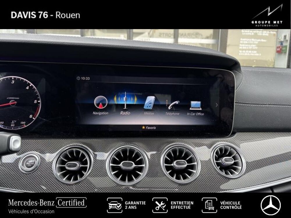 JA 20" AMG multibranches gris,Noir obsidienne,Vitres+lunettes AR teintés foncé,12 Haut parleurs,ABS,Accoudoir central AV,AFIL,Airbag conducteur,Airbag genoux,Airbag passager,Airbag passager déconnectable,Airbags latéraux arrière,Airbags latéraux avant,Airbags rideaux AV et AR,Antidémarrage électronique,Antipatinage,Appel d'Assistance Localisé,Appel d'Urgence Localisé,Assistance de maintien de trajectoire,Bacs de portes avant,Banquette 40/20/40,Banquette AR rabattable,BAS,Becquet arrière,Boite à gants fermée,Borne Wi-Fi,Boucliers AV et AR couleur caisse,Calandre chromée,Caméra de recul,Caméra vue panoramique 360°,Capteur de luminosité,Capteur de pluie,Ceinture de vitrage chromée,Clim automatique tri-zones,Coffre assisté électriquement,Coffre avec fermeture à distance,Colonne de direction électr. à mémoire,Commande du comportement dynamique,Commandes du système audio au volant,Commandes vocales,Compte tours,Cuir Noir AMG Line,Démarrage sans clé,Détecteur de sous-gonflage,Diffuseur AR noir,Echappement à double sortie,Eclairage d'ambiance,Ecran multifonction couleur