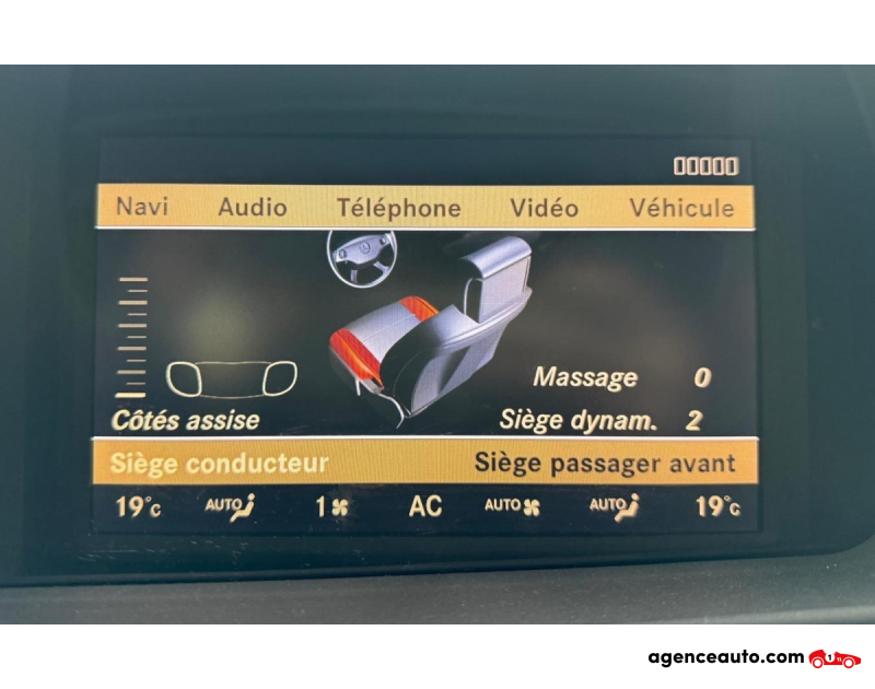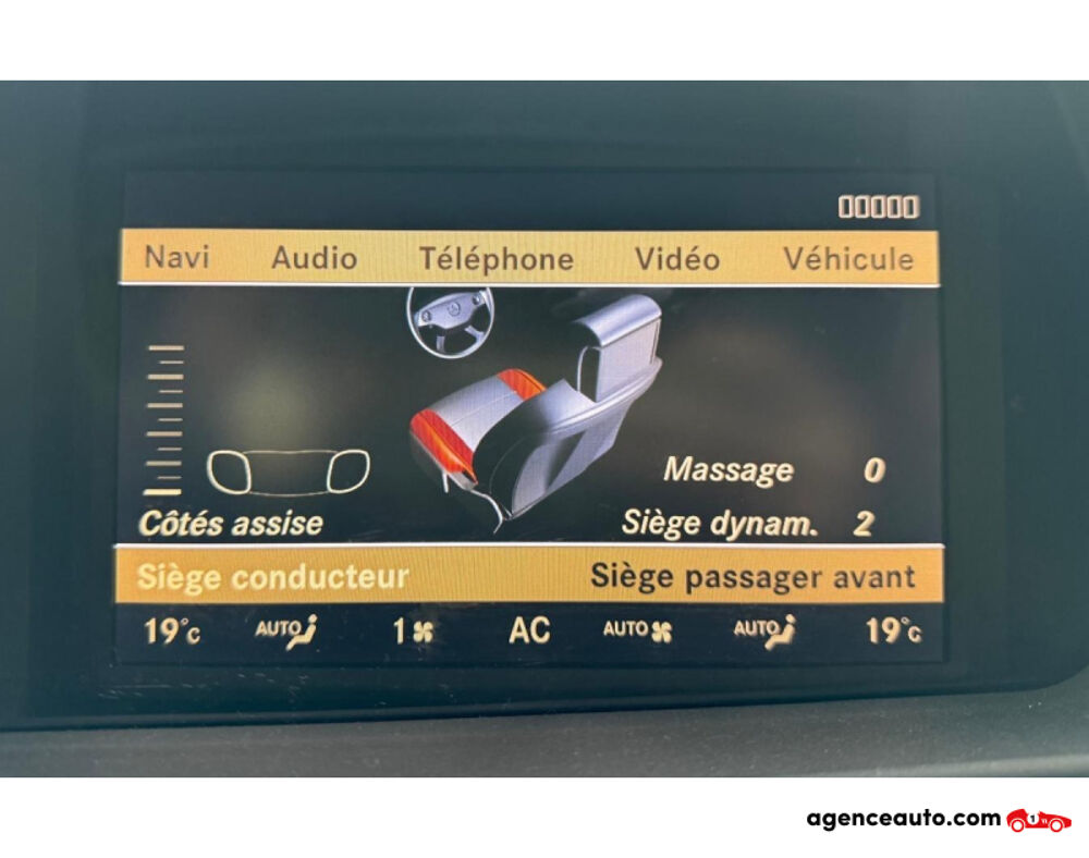 Confort & Luxe : • Keyless-Go (accès et démarrage sans clé) • Sièges avant : chauffants + ventilés + massants • Soutien latéral actif des sièges (couplé à l'ABC - réagissent à la dynamique de conduite) • Mémoire de siège conducteur et passager • Appui lombaire avec massage dans l'espace arrière • Appuie-têtes arrière rabattables • Boîte à gant réfrigérée • Suspension pneumatique Active Body Control (ABC) - contrôlée, parfait état • Boîte 7G-Tronic trois modes : Confort / Sport / Manuel - transmission nouvelle génération • Toit ouvrant panoramique • Couleur ambiance intérieur (éclairage multicolore) • Garniture intérieure en bois de frêne noir
