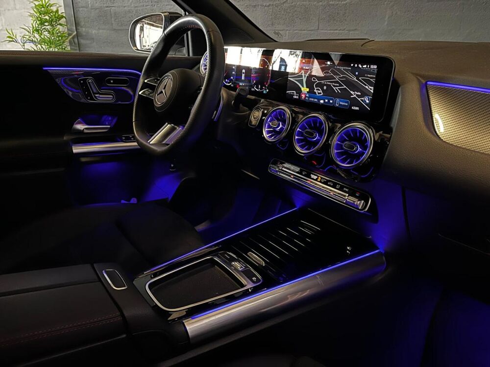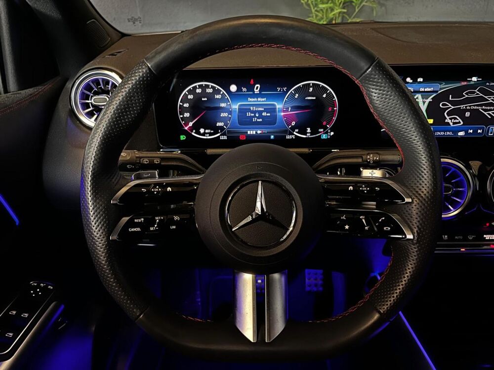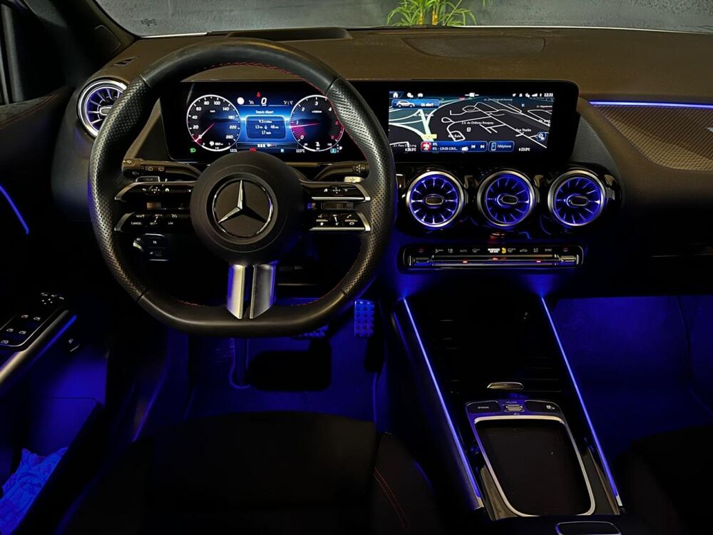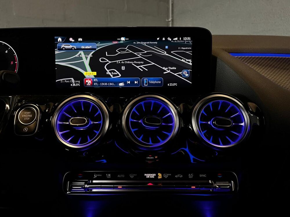 Système multimedia MBUX avec écran média tactile haute résolution (1 920 x 760 pixels) de 26 cm (10,25'') et instrumentation digitale avec écran de 18 cm (7") incluant les fonctionnalités élargies MBUX (profils personnalisés, fon