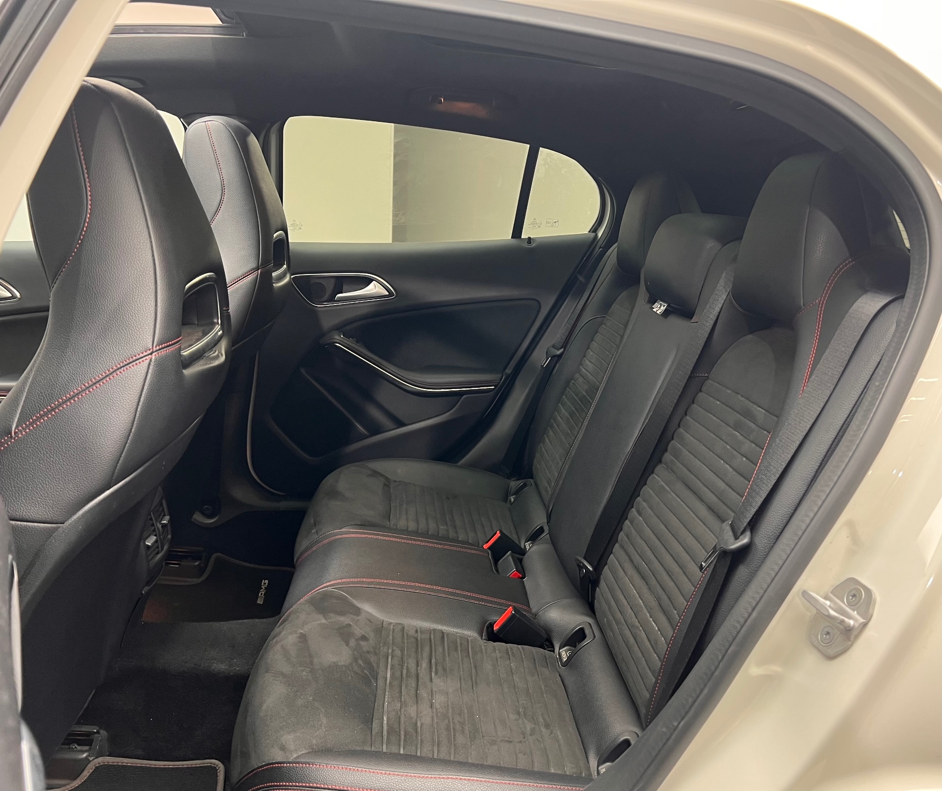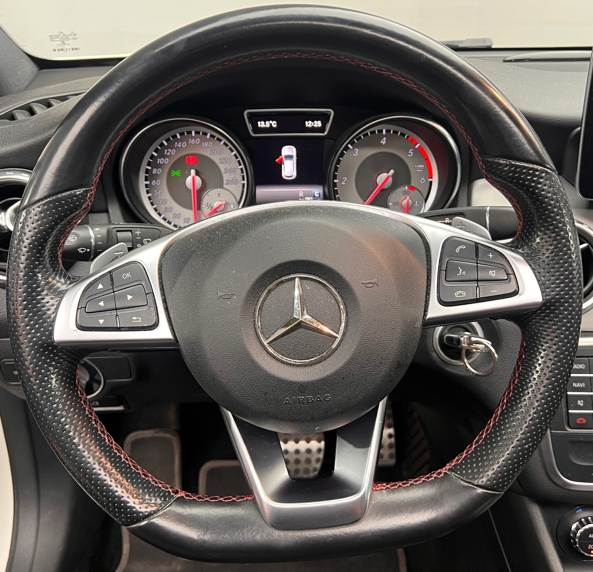 Equipements supplémentaires : ABS (antiblocage de roues), ASR (antipatinage), Accoudoir AV avec vide-poches, Adaptative Brake avec fonction Hold et aide au demarrage en cote, Airbag genoux cote conducteur, Airbags bassin integres aux sieges conducteur et passager AV, Airbags frontaux a plusieurs seuils de declenchement pour le conducteur et le passager AV, Airbags lateraux, Airbags rideaux, Allumage automatique des projecteurs, APA (Aide au Parking Active) : systeme d'aide au stationement avec radars de proximite AV/AR, ATTENTION ASSIST : systeme de detection de somnolence, Avertisseur de perte de pression des pneus (temoin uniquement), Avertisseur de perte de pression des pneus dans le combine d'instruments, Banquette AR rabattable 2/3-1/3, BAS (freinage d'urgence assiste), Boite a gants eclairee, Boite de vitesses automatique 7 rapports 7G-DCT avec palettes de commande au volant, Boite de vitesses automatique a double embrayage 7 rapports 7G-DCT avec palettes de commande, Camera de recul, Camera de recul avec lignes de guidage et vue 180°, Capot moteur actif, Ceintures de securite a 3 points a toutes les places, Ciel de pavillon en tissu gris, Cle design chromee, Clignotants a commande confort par impulsions, Climatisation automatique confort Thermotronic, Climatisation automatique confort THERMOTRONIC a 2 zones avec affichage digital et reglages separes, COLLISION PREVENTION ASSIST : systeme d'avertissement de risque de collision, Colonne de direction reglable mecaniquement en hauteur et en profondeur, Combine d'instruments couleur, Connexion Bluetooth pour telephone portable et clavier numerique integre, Controle de la pression des pneus, Desactivation automatique de l'airbag passager, Detecteur de pluie, Direction parametrique asservie a la vitesse, DYNAMIC SELECT : Choix entre 4 modes de conduite (Confort, Sport, Eco ou Personnalise), Eclairage de secours en cas d'accident, ESP (regulation du comportement dynamique), Feux AR anti-brouillard, Feux stop adaptatifs, Filtre a particules, Fonction d'arret/redemarrage Stop/Start ECO avec commutateur de desactivation manuelle, Frein de stationnement electrique, Freinage d'urgence assiste actif, Garnitures interieures en similicuir ARTICO/Microfibre Dinamica, Garnitures interieures en similicuir ARTICO/Microfibre Dinamica Noir, Habillage de passage de roues en plastique noir, Habillage des passages de roues en plastique noir graine, Hayon EASY-PACK a ouverture/fermeture automatique, Indicateur de temperature exterieure, Indicateur dynamique de maintenance ASSYST PLUS, Inserts decoratifs finition aluminium a stries longitudinales, Interface USB dans l'accoudoir central AV, ISOFIX : fixations des sieges-enfants aux places exterieures AR, Kit anti-crevaison Tirefit, Kit carrosserie AMG avec jupes AV et AR et habillage de bas de caisse specifique, Leve-vitres electriques (x4) a commande sequentielle et dispositif anti-pincement, Mercedes connect me: Systeme d'appel d'urgence Mercedes-Benz, gestion de la maintenance, assistance, Navigation Garmin MAP PILOT, Pack AMG Line, Pack AMG Line Exterieur, Pack AMG Line Interieur, Pack Confort, Pack d'eclairage interieur, Pack de Conduite Dynamique, Pack Eclairage interieur, Pack Fumeur, Pack Garmin, Pack Sport Black, Pare-chocs peints couleur carrosserie, Pedalier Sport en acier inoxydable brosse avec picots en caoutchouc, Peinture non metallisee, Pilote automatique de stationnement, Pneus avec possibilite de roulage a plat, Projecteurs Bi-Xenon avec lave-phares, feux de jour, feux de position, clignotants, feux AR et feux, Protection anti-encastrement en noir brillant et habillage des jupes laterales, Rails de toit en noir brillant, Retroviseur exterieur gauche et interieur jour/nuit automatique, Retroviseurs et poignees de porte peints dans le ton carrosserie, Retroviseurs exterieurs electriques, chauffants et aspheriques avec rappels de clignotant integre, Retroviseurs exterieurs peints en noir brillant, Retroviseurs exterieurs rabattables elect. et jour/nuit automatique, Retroviseurs exterieurs rabattables electriquement et retroviseurs exterieur gauche et interieur, Securite enfant avec verrouillage manuel des portes AR et electrique des vitres AR, Siege conducteur reglable en hauteur, Siege conducteur reglable manuellement en hauteur, Sieges AV Confort avec reglages manuels de l'inclinaison des assises et de la profondeur des assises, Stickers lateraux, Suspension et train de roulement Sport rabaisses de 15 mm, TEMPOMAT (regulateur de vitesse) avec limiteur de vitesse, TEMPOMAT (regulateur de vitesse) et SPEEDTRONIC (limiteur de vitesse), Toit ouvrant panoramique electrique, Toit ouvrant panoramique