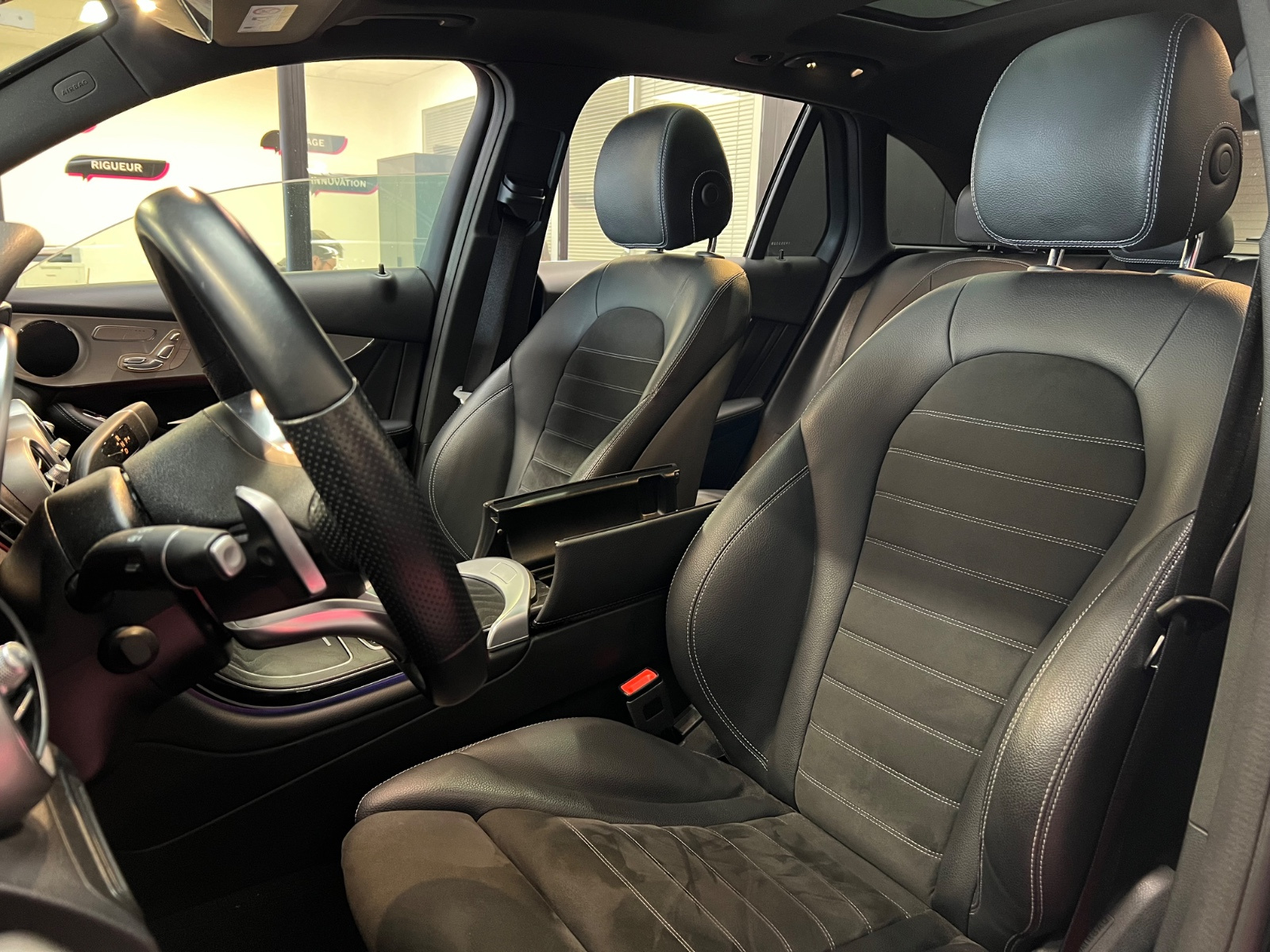 // Accoudoir arrière Accoudoir avant Airbag conducteur Airbag latéral conducteur et passager Airbag passager Airbags rideaux arrière Airbags rideaux avant Android Carplay Apple CarPlay Apple Carplay Assistance au freinage d'urgence Assistance de freinage Assistant dynamique au maintien de voie Attelage Banquette arrière partagée et rabattable Caméra 360° Caméra de recul Ceinture centrale arrière 3 points Climatisation automatique 3 zones Climatisation automatique bizone Contrôle de traction Contrôle pression pneus (RDC) Démarrage sans clé Détecteur pluie ESP (programme de stabilité électronique) Feux adaptatifs Feux antibrouillards à LED Feux arrière LED Feux avant LED Feux de position à LED Filtre à particules Fixation pour siège enfant Frein de stationnement électrique GPS Hayon électrique Indicateur de température extérieur Jantes/roues en alliage léger 20 Limiteur de vitesse Lumière d'ambiance intérieur à LED Lève-vitres avant électriques Oeïllets de fixation Pack AMG Radar de stationnement arrière Radar de stationnement avant Régulateur de vitesse adaptatif Rétroviseurs extérieurs dégivrants Rétroviseurs extérieurs électriques Sièges avant chauffants Sièges en alcantara Sièges électriques à mémoire Système Start/Stop Système anti bloquage (ABS) Système de freinage d'urgence anticipatif Système de stabilisation en cas de vent latéral Système information conducteur Sélection du mode de conduite Toit ouvrant panoramique Téléassistance Verrouillage centralisé télécommandé Verrouillage indépendant du coffre/hayon Virtual cockpit