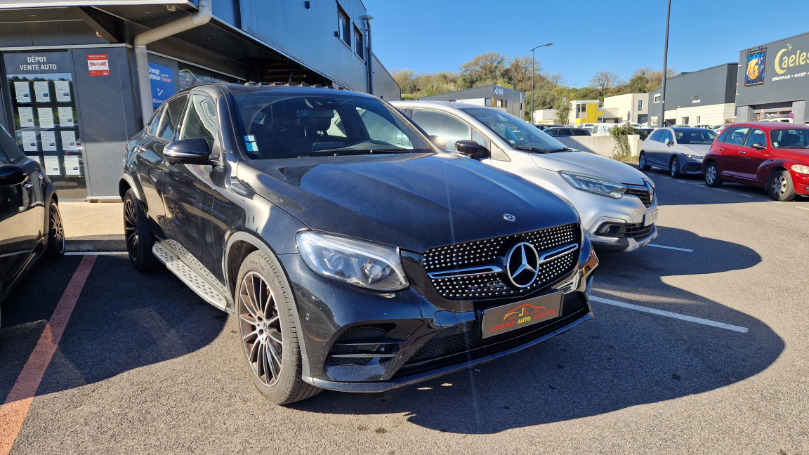 MERCEDES CLASSE GLC (COUPE 250 d 9G-Tronic 4Matic Fascination) NOIR.ABS (antiblocage de roues) et ASR (antipatinage) on et of-road,Accoudoir central AV avec vide-poches et prise 12V,Adaptative Brake avec fonction Hold et aide au démarrage en côte,Air Body Control,Airbag genoux côté conducteur,Airbags frontaux à 2 seuils de déclenchement,Airbags latéraux AV,Allumage automatique des projecteurs,Antenne GPS,APA (Aide au Parking Active),Assistant de signalisation routière,ATTENTION ASSIST : système de détection de somnolence,Boîte à gants éclairée,Boîte de vitesses automatique à 9 rapports 9G-TRONIC avec fonction "Stop/Start ECO" (DYNAMIC SELECT et TEMPOMAT (régulateur de vitesse) et SPEEDTRONIC (limiteur de vitesse) inclus),Câble de charge pour prise domestique Type E/F,4 mètres,Cache-bagages à enrouleur EASY-PACK,Capot actif avec protection piéton,Ceintures de sécurité à 3 points à toutes les places avec rétracteur et limiteur d'effort,Ciel de pavillon en tissu noir,Clé design avec insert chromé,Clignotants à commande confort par impulsions,Climatisation automatique THERMATIC à 2 zones,Colonne de direction réglable mécaniquement en hauteur et en profondeur,Combiné d'instruments avec Display multifonctions,COMMAND Online: système multimédia avec écran haute résolution couleur 21,Compartiment à lunette à l'AV,Connexion Bluetooth pour téléphone portable,Contrôle de la pression des pneumatiques,Désactivation automatique de l'airbag passager,Détecteur automatique de siège-enfant MB sur le siège passager AV,Détecteur d'angle mort,Détecteur d'occupation du siège passager AV,Détecteur de pluie,Déverrouillage du coffre à distance,Diesel Emission control BLUETEC,Direction assistée et asservie à la vitesse,DYNAMIC SELECT : 5 modes de conduite,ESP (régulation du comportement dynamique) avec ASR (antipatinage),Essuie-glaces avec détecteur de pluie,Feux AR à LED,Feux clignotants à LED,Feux stop adaptatifs à LED,Filet dans le coffre à bagages,Filtre à particules,Fonction d'arrêt/redémarrage Stop/Start ECO avec commutateur de désactivation manuelle,Fonction de démarrage sans clé KEYLESS-GO,Frein de stationnement électrique,Freinage d'urgence assisté actif,Garnitures intérieures en Cuir Noir,Hayon EASY-PACK avec ouverture et fermeture par commande électrique,Indicateur de température extérieure,Indicateur dynamique de maintenance ASSYST,Inserts décoratifs en tilleul foncé,Interface média USB dans la console centrale,ISOFIX : fixations des sièges-enfants aux places extérieures AR,Jantes alliage 48 cm (19") design 10 branches avec pneus 235/55 R19,Kit anti-crevaison TIREFIT,Lecteur DVD,Lève-vitres électriques (x4) à commande séquentielle et dispositif anti-pincement,Live Traffic Information,Module de communication (LTE) pour l'utilisation des services Mercedes Me Connect,Navigateur internet sur l'écran central,Ordinateur de bord,Pack Chrome Extérieur,Pack d'éclairage intérieur,Pack Exclusif Extérieur,Pack Exclusif Intérieur,Pare-soleil avec miroirs de courtoisie éclairés (x2),Peinture Noir non métallisée,Pilote automatique de stationnement avec Parktronic,Porte-gobelet,Projecteurs haute performance à technologie LED,Rails de toit en aluminium,Réglages lombaires,Remote Online,Réservoir d'AdBlue,Rétroviseur extérieur gauche jour/nuit automatique,Rétroviseurs extérieur rabattables électriquement,Rétroviseurs extérieurs électriques,Rétroviseurs intérieur jour/nuit automatiques,Sécurité enfant avec verrouillage manuel des portes AR et électrique des vitres AR,Sièges AV à réglages partiellement électriques (hauteur du coussin d'assise et inclinaison du dossier) avec réglages lombaires électropneumatiques,Système d'appel d'urgence Mercedes-Benz,TEMPOMAT (régulateur de vitesse) et SPEEDTRONIC (limiteur de vitesse),Toit ouvrant panoramique électrique en verre,VIDANGE // 4 PNEUS NEUFS // SUIVI, 9 vitesses, 5 places, puissance fiscal : 12, puissance din : 204, émission de CO2 : 155 g/km.