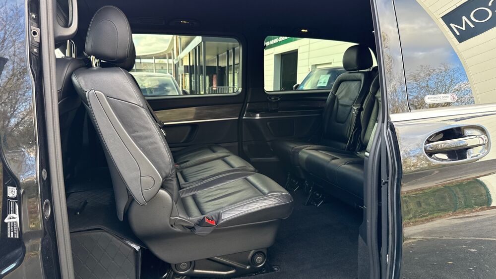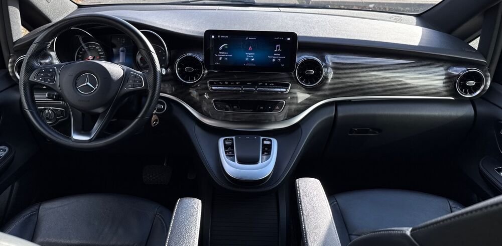 Equipements supplémentaires : 174 kW (237 ch), 3 ans de mise a jour gratuite des cartes, 9G-TRONIC Boite de vitesses automatique, Accoudoirs pour les sieges du compartiment passager, Affichage de la pression des pneumatiques, Aide au demarrage en cote, Airbag lateral bassin thorax conducteur, Airbag lateral bassin thorax passager, Airbag passager AV, Airbags rideaux pour conducteur et passager AV, Allumage automatique des phares, Alternateur 14 V / 250 A, Assistance en cas de panne, Attention Assist: Systeme de detection de somnolence, Autoradio numerique (DAB), Avantgarde, Avertisseur d'angle mort, Avertisseur d'oubli de ceinture passager, Avertisseur de franchissement de ligne, Batterie de puissance accrue, Batterie tampon pour demarrage, Blocage actif pour porte coulissante, Boite a gants verrouillable, Boite de vitesses automatique 9G-TRONIC, Camera de recul, Chauffage auxiliaire electrique, Ciel de pavillon, Ciel de pavillon Gris Cristal, Cle electronique facon chrome, Climatiseur TEMPMATIC a regulation semi-automatique, Combine d'instrumentation avec visuel couleur, Conduit d'air chaud vers le compartiment passagers, Console centrale avec casier de rangement, Cuir Lugano noir, Detecteur de pluie, Donnees vehicule codees VIN avec chiffre de controle, Echangeur thermique additionnel AR, Eclairage d'ambiance, Eclairage de plancher AV, Eclairage de proximite dans les retroviseurs exterieurs, Eclairage de proximite hayon AR, Eclairage des seuils de porte, Eclairage sur poignees de maintien AR avec spot de lecture, Fenetre fixe AR, Feux AR, feux de stop et clignotants a LED, Feux stop adaptatif, Filet de rangement dossier du siege conducteur, Filet de rangement dossier du siege passager AV, Fonction Stop/Start ECO, Gestion de l'alternateur, HP a 2 voies AV/AR, Insert decoratif bois rayures fines, restylage, Intelligent Light System a LED, Intervalle de maintenance 40.000 km, Lunette AR a ouverture separee, Lunette AR ouvrant separement, Module de communication LTE pour services numeriques, Module de pavillon confort, Monogramme de seuil Mercedes-Benz eclaire, Moquette AR, Moquette AV, Moteur OM 654 DE 20 LA niveau puissance 5 Top Type, Norme antipollution Euro 6d M/N1 cl. II, Ouverture et fermeture confort par telecommande infrarouge, Pack Aerodynamique, Pack Assistance de Trajectoire, Pack Assistant de Trajectoire, Pack BlueEFFICIENCY, Pack Confort sieges, Pack Retroviseurs, Pare-chocs et pieces rapportees dans le ton carrosserie, Pare-soleil avec miroirs de courtoisie eclaires, Pave tactile, Pneumatiques 235/55 R17, Pneumatiques confort, Pneumatiques ete, Pneumatiques sans prescription de marque, Poignee AR, Poignee de maintien au niveau des acces, Poignees de maintien AR, Porte coulissante a gauche, Porte laterale gauche coulissante, Predisposition faisceau d'attelage, Preequipement pour Live Traffic Information, Preequipement Remote Services Plus, Preequipement systeme de navigation, Prise 12 V dans le coffre/compartiment de chargement, Protection contre les erreurs de ravitaillement, Radio numerique DAB, Rail plus long pour les sieges AR, Rails de sieges a verrouillage rapide, Reglage de profondeur coussin d'assise conducteur, Reglage de profondeur coussin d'assise passager, Reservoir principal 70 l, Retroviseur exterieur rabattable automatiquement, Retroviseurs exterieurs chauffants a reglage electrique, Retroviseurs exterieurs et interieur a commutation jour/nuit automatique, Retroviseurs exterieurs rabattables automatiquement, Retroviseurs exterieurs reglables electriquement et chauffants, Retroviseurs interieur et exterieurs a commutation, Securite enfant sur les portes du compartiment passagers, Siege conducteur confort, Siege individuel 1ere rangee a droite, Siege individuel 1ere rangee a gauche, Siege individuel 2eme rangee droite, Siege individuel 2eme rangee gauche, Siege passager confort, Siege supplementaire 1ere rangee a droite, Soutien lombaire pour siege conducteur, Soutien lombaire pour siege passager, Subdivision du compartiment de chargement, Systeme d'appel d'urgence Mercedes-Benz, Systeme de depollution des gaz SCR generation 4, Systeme de freinage optimise CO2, Systeme de navigation, Systeme multimedia MBUX Mid, Tempomat, Train de roulement Agility Control, Triangle de presignalisation dans porte conducteur, Triangle de signalisation dans porte conducteur, Variante de poids 3.100 kg, Vitre AV droite fixe dans le panneau lateral/la porte coulissante, Vitre AV gauche fixe dans le panneau lateral/la porte coulissante, Vitre laterale AV droite fixe, Vitre laterale AV gauche fixe, Vitres teintees, Vitres teintees AR et