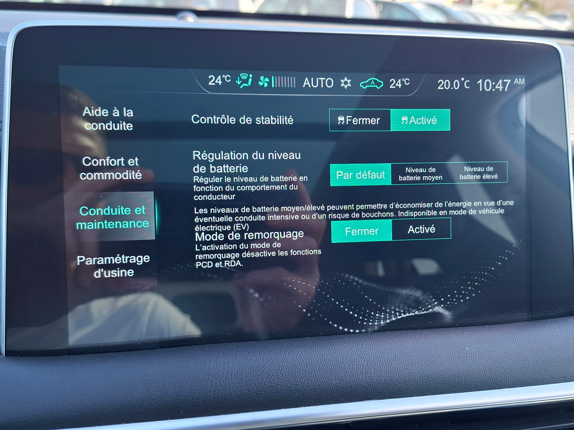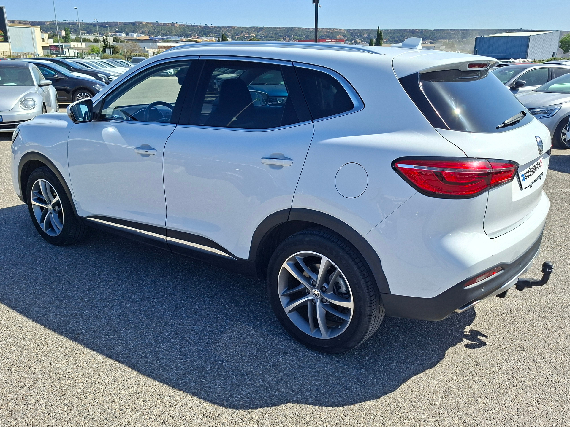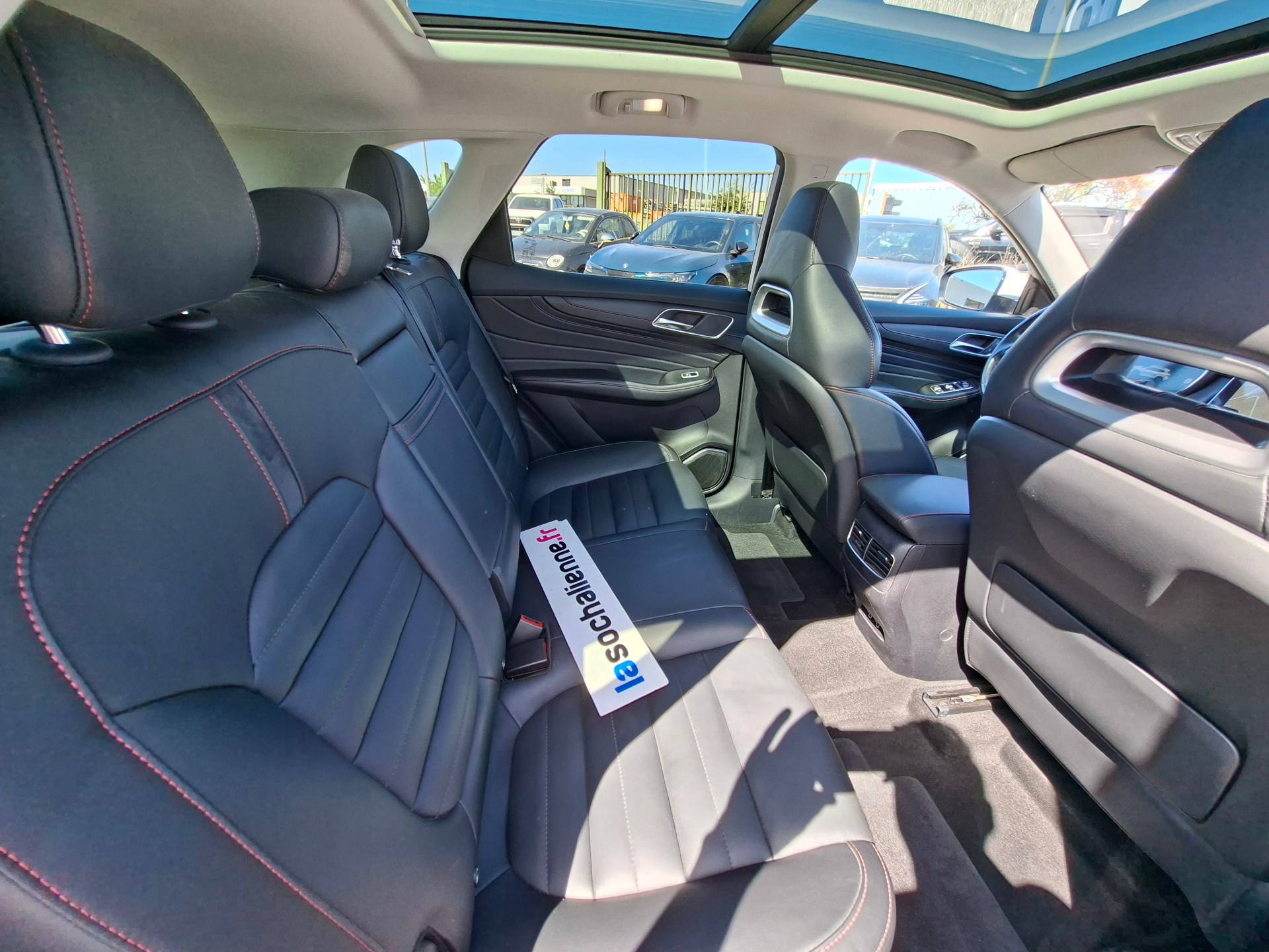 Equipements supplémentaires : 4 ports USB, 6 HP, ABS, EBD, ESP, EBA, Acces et demarrage sans cle, Accoudoir central AR, Aide au demarrage en cote, Aide au maintien dans la voie (LKA), Airbags frontaux, rideaux et lateraux, Apple CarPlay / Android Auto, Assistant a la conduite dans les embouteillages (TJA), Avertissement de collision frontale (FCW), Avertissement de trafic a l'AR du vehicule (RTA), Avertisseur d'ouverture de portiere (DOW), Avertisseur de franchissement de ligne (LDW), Banquette AR rabattable 60/40, Cable de recharge domestique Type 2 Mode 2, Cable de recharge Type 2 Mode 3, Camera a 360°, Capteur de luminosite, Capteur de pluie, Capteurs de stationnement AV/AR, Climatisation bi-zone avec bouches de ventilation AR, Connectivite Bluetooth, Eclairage d'ambiance, Eclairage de bienvenue, Feu de jour a LED, Feux antibrouillard AR, Feux antibrouillard AV, Frein de stationnement electronique, Freinage automatique d'urgence (AEB), Gestion intelligente des feux de route (IHC), Hayon electrique, Indicateurs sequentiels LED AV et AR, Montants de portes chromes, Panneau de la console Premium, Pedalier aluminium, Phares a LED, Projecteurs halogenes avec reglage de niveau, Radio AM/FM/DAB, Rail de toit, Reconnaissance des panneaux de signalisation (TSR), Regulateur de vitesse adaptatif (ACC), Retroviseur interieur photochromatique, Retroviseurs exterieurs electriques chauffants a rabattement automatique, Sellerie cuir noir Bader et Alcantara, Siege conducteur reglable electriquement dans 6 directions, Siege du conducteur avec support lombaire manuel, Siege passager AV reglable electriquement dans 4 directions, Sieges AV chauffants, Sieges AV sport, Surveillance des angles morts (BSD), Systeme d'aide au respect de la vitesse (SAS), Systeme d'appel d'urgence automatique (eCall), Systeme de recuperation de l'energie cinetique (KERS), Teinte de carosserie Dover White, Toit ouvrant panoramique, Vitres AR surteintees, Volant gaine de cuir reglable en hauteur et profondeur avec commandes au volant.