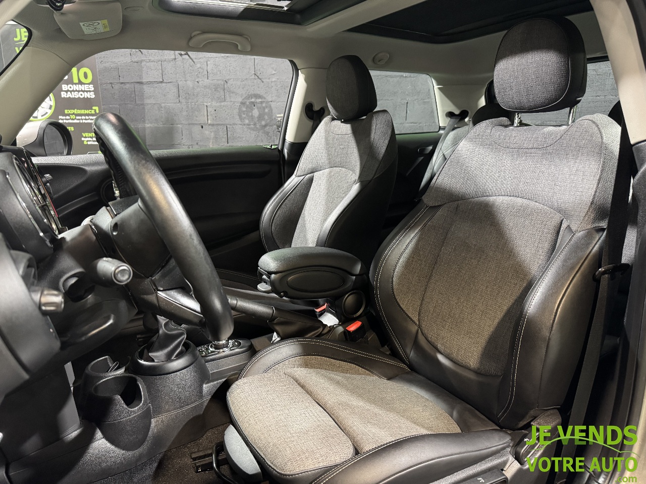 4 Haut parleurs,Appel d Urgence Localisé,Commandes du système audio au volant,Fonction MP3,GPS Cartographique,Kit mains-libres Bluetooth,Prise USB,Prise auxiliaire de connexion audio,Prise iPod,Radio,TMC,Arrêt et redémarrage auto. du moteur,Blocage électronique du différentiel,Capteur de pluie,Capteur de luminosité,Démarrage sans clé,Follow me home,Limiteur de vitesse,Régulateur de vitesse,Becquet arrière,Boucliers AV et AR couleur caisse,Buses de lave-glace chauffantes,Essuie-glace arrière,Feux arrière à LED,Feux de freinage d urgence,Feux de jour à LED,Jantes Alu,Phares avant LED,Radar de stationnement AR,Rétroviseurs dégivrants,Rétroviseurs ext. indexés à la marche AR,Rétroviseurs rabattables électriquement,Rétroviseurs électriques,Toit ouvrant rang 1 coulissant,Toit ouvrant rang 1 entrebaillant,Toit ouvrant électrique,Toit panoramique en verre,Accoudoir central AV,Appui-tête conducteur réglable hauteur,Appui-tête passager réglable en hauteur,Bacs de portes avant,Banquette 2 places,Banquette 60/40,Banquette AR rabattable,Clim manuelle,Compte tours,Ecran multifonction couleur,Filtre à Pollen,Fixations Isofix aux places arrières,Lunette AR dégivrante,Ordinateur de bord,Ouverture des vitres séquentielle,Porte-gobelets avant,Prise 12V,Siège conducteur réglable en hauteur,Sièges avant sport,Système facilitant l accès aux places AR,Température extérieure,Verrouillage auto. des portes en roulant,Verrouillage centralisé des portes,Verrouillage centralisé à distance,Vitres avant électriques,Vitres teintées,Volant cuir,Volant multifonction,Volant réglable en profondeur et hauteur,Volant sport,ABS,Aide au freinage d urgence,Airbag conducteur,Airbag passager,Airbags latéraux avant,Airbags rideaux AV et AR,Antidémarrage électronique,Antipatinage,Contrôle de freinage en courbe,Contrôle élect. de la pression des pneus,EBD,ESP,Préparation Isofix,Système mains libre Bluetooth avec Snap-in niv2,Réglage en hauteur du siège passager Avt,Système de navigation MINI avec écran 6.5 pouces,Peinture métallisé,Toit ouvrant panoramique,Projecteurs anti brouillard,Auto radio MINI Visual Boost,Accoudoir central avant inclinable en 4 positions