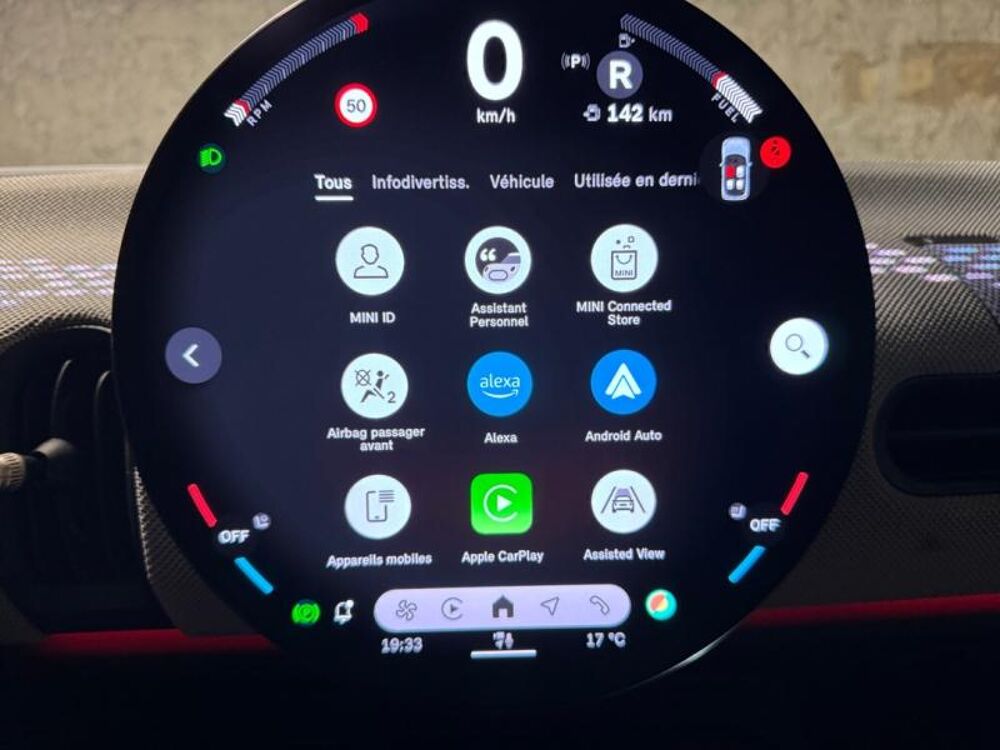 Accès Confort,Affichage Tête Haute couleur,Alarme antivol,Appel d'Urgence Intelligent,Avertisseur de risque de collision et système anti collision à basse vitesse,Boîte de vitesses automatique à double embrayage,Caméra d'habitacle,Ciel de pavillon anthracite,Dalle de recharge par induction pour smartphone,Driving Assistant,Driving Assistant Plus,Ecrous antivol de roues,Feux de route anti-éblouissement,Finition Favoured,Fixation i-Size ou Isofix à l'avant avec désactivation de l'airbag passager,Kit de mobilité,Mesure individuelle de pression de pneumatiques,Midnight Black II métallisé,MINI EXPERIENCE MODES,MINI Navigation AR,Pack XL,Parking Assistant Plus,Personal eSim,Projecteurs Full LED,Rétroviseur intérieur anti-éblouissement,Rétroviseurs rabattables et intérieur et extérieur gauche antiéblouissement,Sellerie Similicuir Beige,Services Apres-Vente connectes et ConnectedDrive,Siège actif pour conducteur,Sièges avant chauffants,Sièges avant électriques à mémoires conducteur,Sièges avant John Cooper Works baquet,Système Hi-Fi Harman Kardon