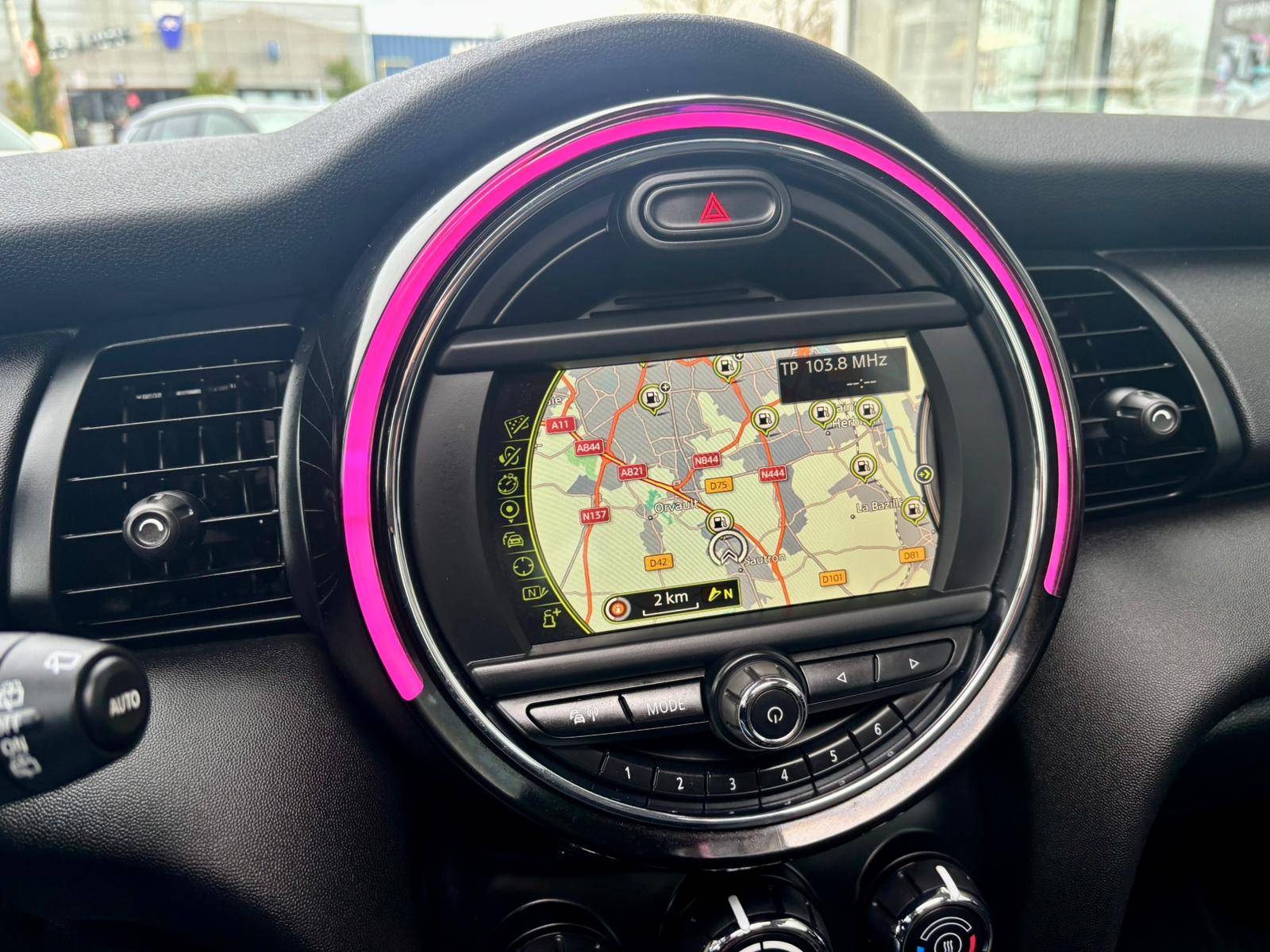 Equipements supplémentaires : 2 HP et 2 woofers, 2eme cle radiocommandee, 3eme feu de stop, 4 Appuis-tetes reglables en hauteur, ABS, y compris assistance au freinage d'urgence et controle de freinage en courbe, Airbags de tete, Airbags frontaux pour conducteur et passager AV, Airbags lateraux AV, integres au dossier de siege AV, Anti-demarrage electronique, Autoradio MINI AM/FM: avec prises AUX-IN et port USB, ecran 4 lignes, Baguettes de seuil de porte avec inscription de la motorisation facon metallique, Banquette AR 3 places rabattable, Becquet AR de toit, Boite manuelle 6 rapports, Buses d'aeration cerclees de chrome, Buses de lave-glace et retroviseurs exterieurs degivrants, Calandre au contour chrome avec lamelles noires, Ciel de pavillon Satellite Grey, Colour Line Carbon Black, Controle Dynamique de stabilite DSC avec DTC et EDLC, Coques de retroviseurs exterieures noires, Crash Sensor activation automatique en cas d'accident: deverrouillage des portes, eclairage, Feux de stop dynamiques, Filtre a particules, Fonction profile: import/export des donnees et reglages vehicule, Fonction securite pieton avec capot actif, Freins a disques AV et AR ventiles a l'AV, Indicateur de pressions des 4 pneus et avertisseur automatique en cas de perte de pression d'au, Isofix sur les 2 sieges AR, Kit de reparation de pneus, Leve-vitres electriques AV avec commande a impulsion et protection anti-pincement, Leve-vitres electriques AV et AR avec commande a impulsion a l'AV et protection anti-pincement, MINI Mobility System, Ordinateur de bord multifonctions, Ouies laterales noires avec repetiteurs de clignotants orange integres, Ouverture et fermeture a distance des vitres et du TOE si equipe, Pare-chocs AV/AR dans la couleur de la carrosserie, Poignee d'ouverture de coffre teinte noir, Poignees de portes chromees, Poignees interieures de portes chromees, Porte-boissons AV (x2), Pretentionneurs de ceintures AV, Prise 12V sous la console centrale, Projecteurs AV et feux AR au contour chrome, Reglage electrique de la portee des projecteurs, Retroviseurs exterieurs a reglage electrique, Siege conducteur reglable en hauteur, Sortie d'echappement simple cote gauche, Surveillance de l'eclairage exterieur, Surveillance de la pression des pneumatiques, Systeme de maintenance intelligent Condition Based Service (CBS), Teinte d'habitacle Carbon Black, Toit couleur carrosserie, Trappe a carburant cote droit, Triangle de presignalisation avec kit de premiers secours, Verrouillage automatique des portes des 16 Km/h, Verrouillage centralise des portes, du coffre et de la trappe a carburant, Vitre AR chauffante avec essuie-glace, Volant 2 branches.