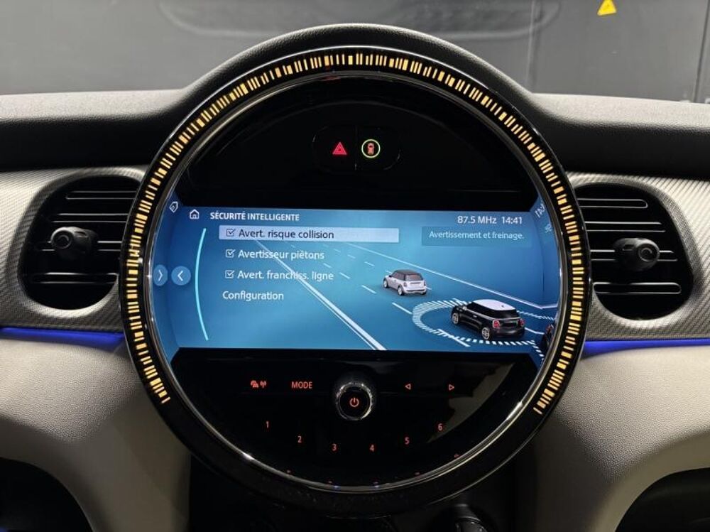 Accès Confort,Accoudoir central avant,Aides à la conduite Driving Assistant,Appel d'Urgence Intelligent,Apple CarPlay (durée illimitée),Autoradio MINI Visual Boost,Avertisseur sonore pour piétons,Bandes décoratives de capot noires,Câble de recharge Professionnel Mode 3 (T2-T2) 22 kW pour la recharge publique,Câble de recharge standard Mode 2 pour prise domestique,Caméra de recul,Charge rapide courant alternatif (AC) triphasé 11 kW,Charge rapide en courant continu (CC),Clignotants blancs Individual,Climatisation automatique bi-zone,Connectivité avancée sans fil avec recharge par induction,Détecteur de pluie et allumage automatique des projecteurs,Eclairage d'ambiance,Ecrous antivol de roues,Edition Premium,Feux anti-brouillard arriere,Fixation ISOFIX à l'avant avec désactivation de l'airbag passager,Flexible CarSharing Preparation,Fonctions "Ma MINI à distance",Information Trafic en Temps Réel RTTI (3ans),Instrumentation digitale avancée,Island Blue métallisé,Jantes 16" Victory Spoke Black,Kit de mobilité,Kit éclairage,Kit rangement